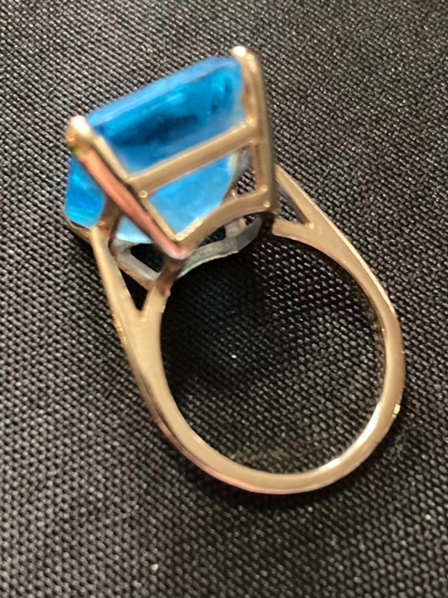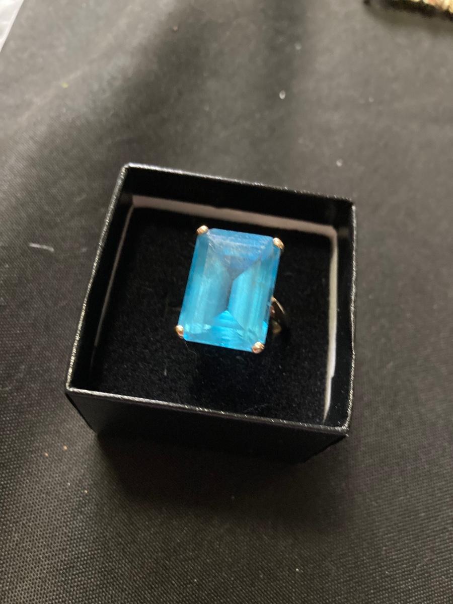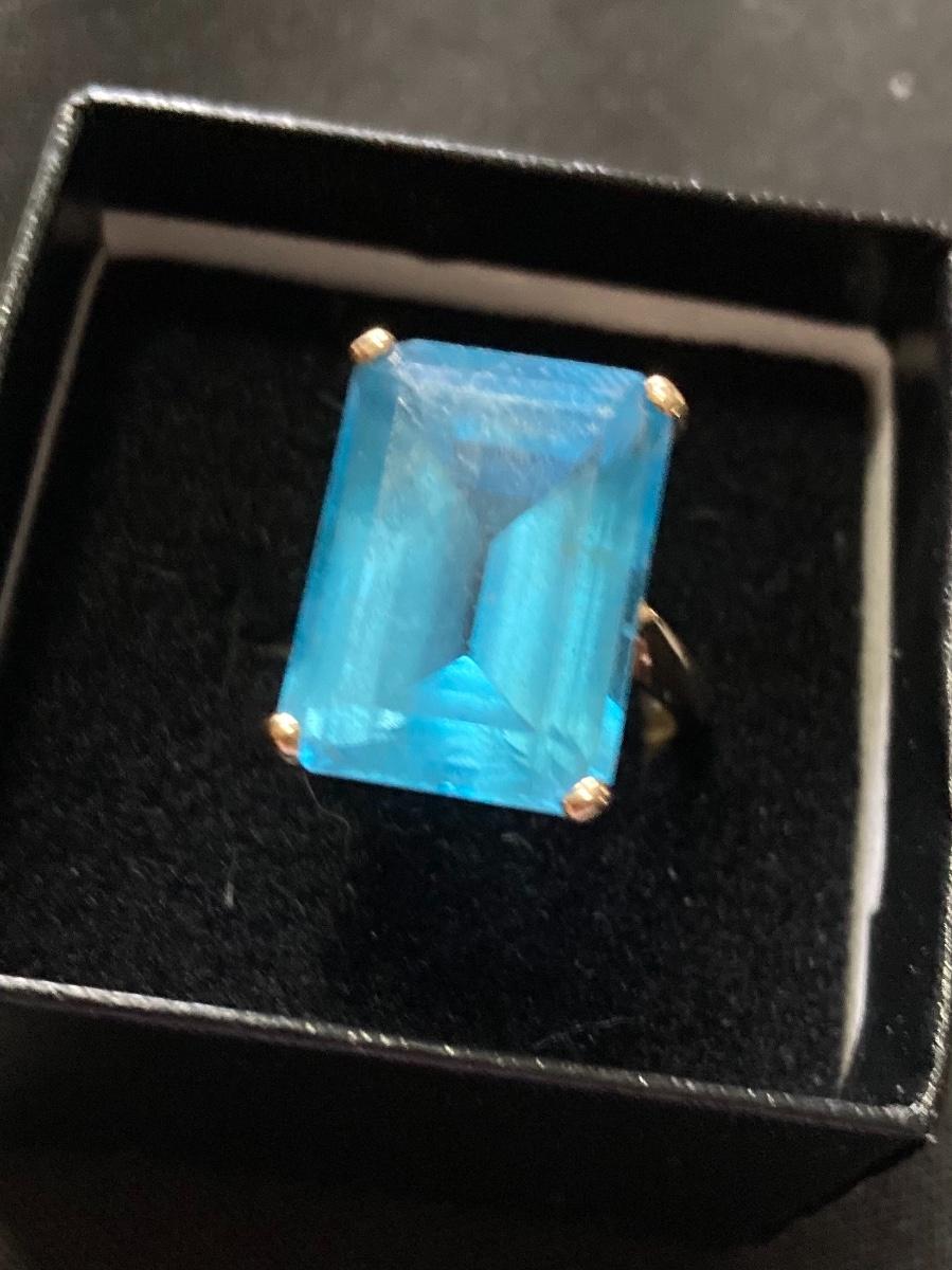 Large Blue Topaz 14k Gold Ring Size 6 with 1/2” x 3/4” Stone