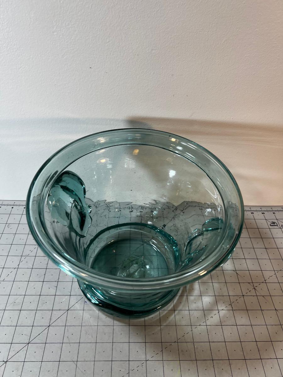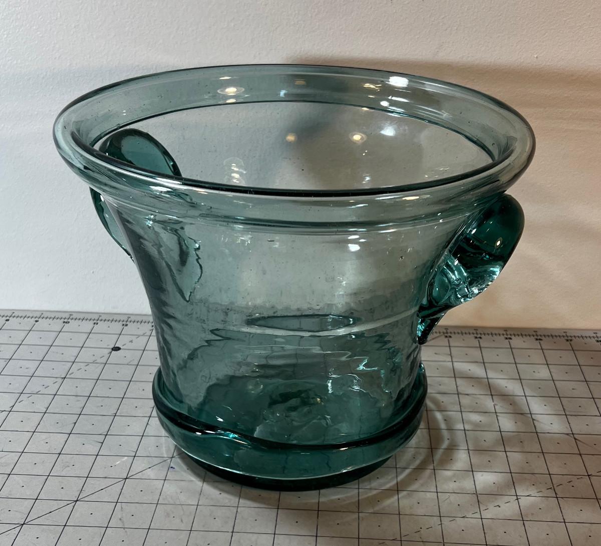 Large Blueish Hand Blown Planter OR Ice Bucket