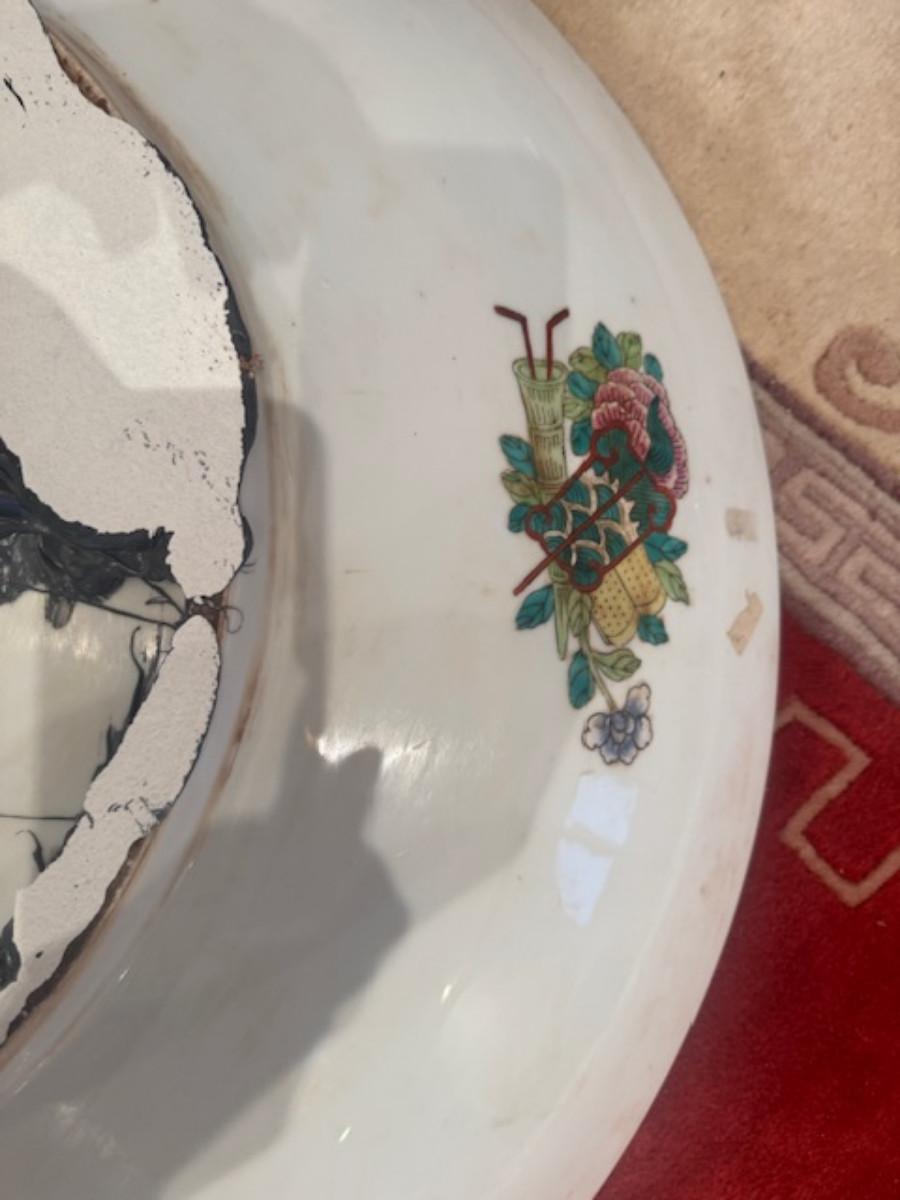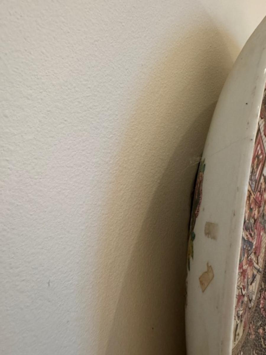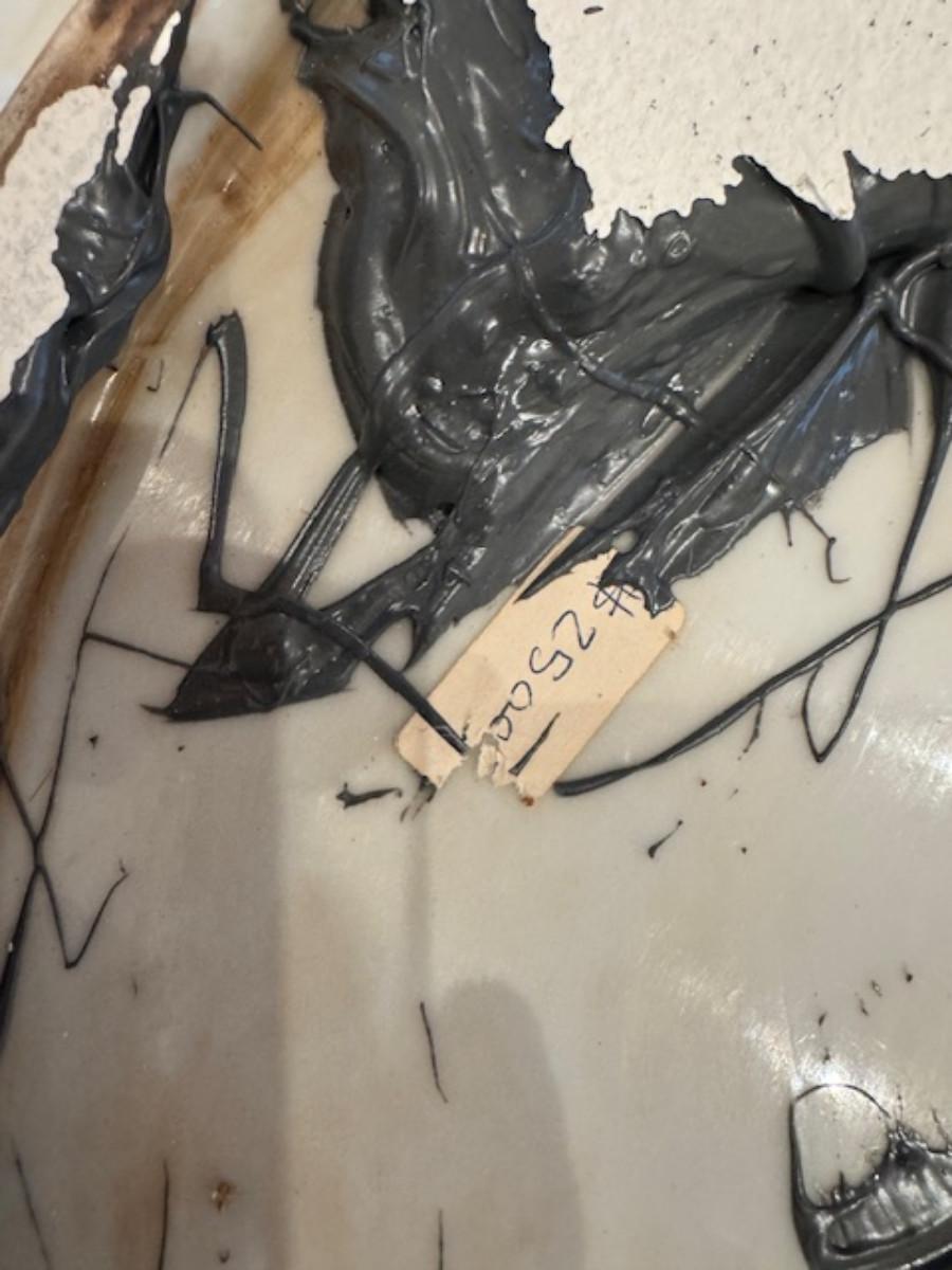 as found hard cement like adhesive on the back seems permanent and like it was glued to a wall at one point. Doesn't seem like the adhesive on the back can be removed.