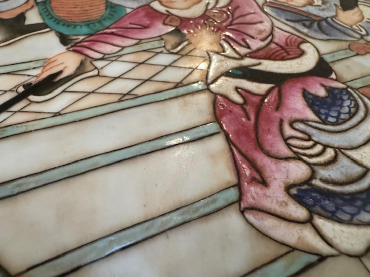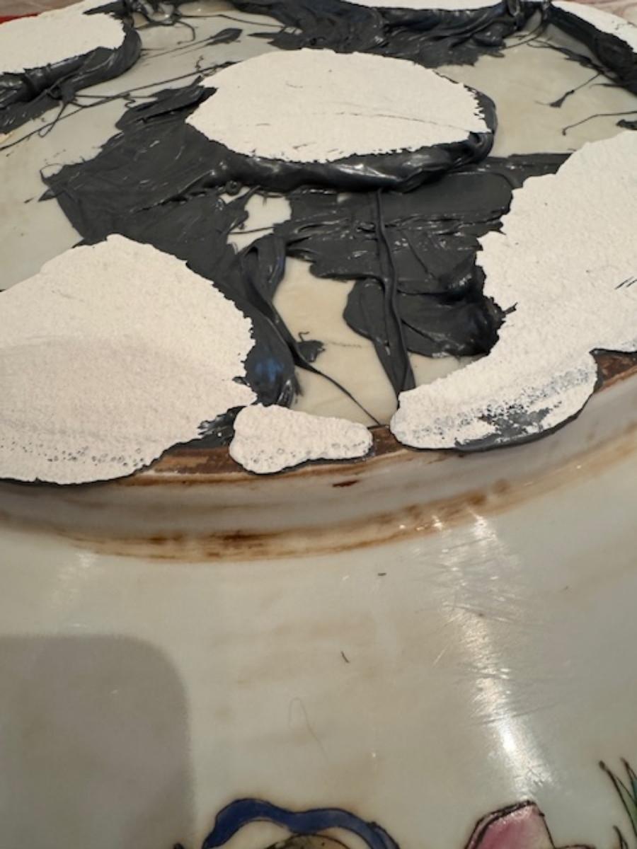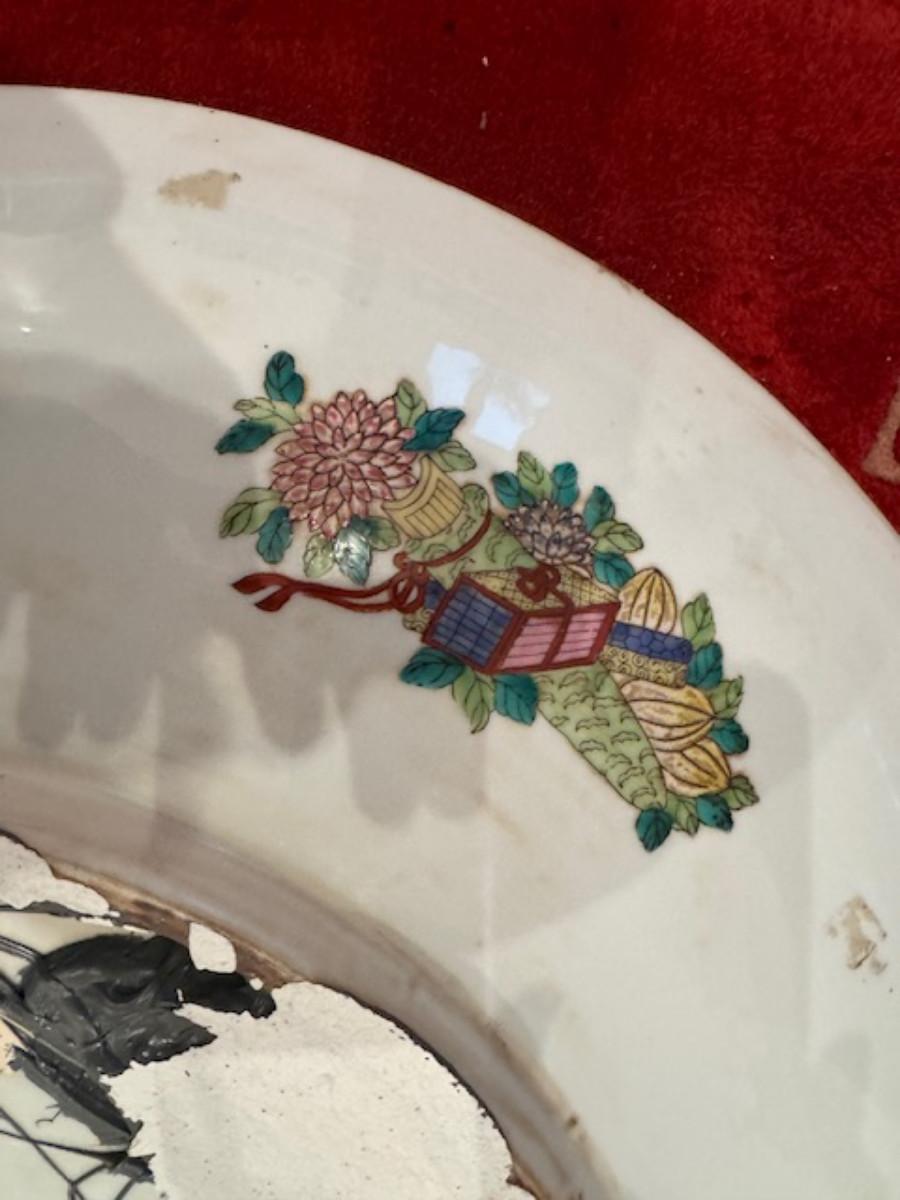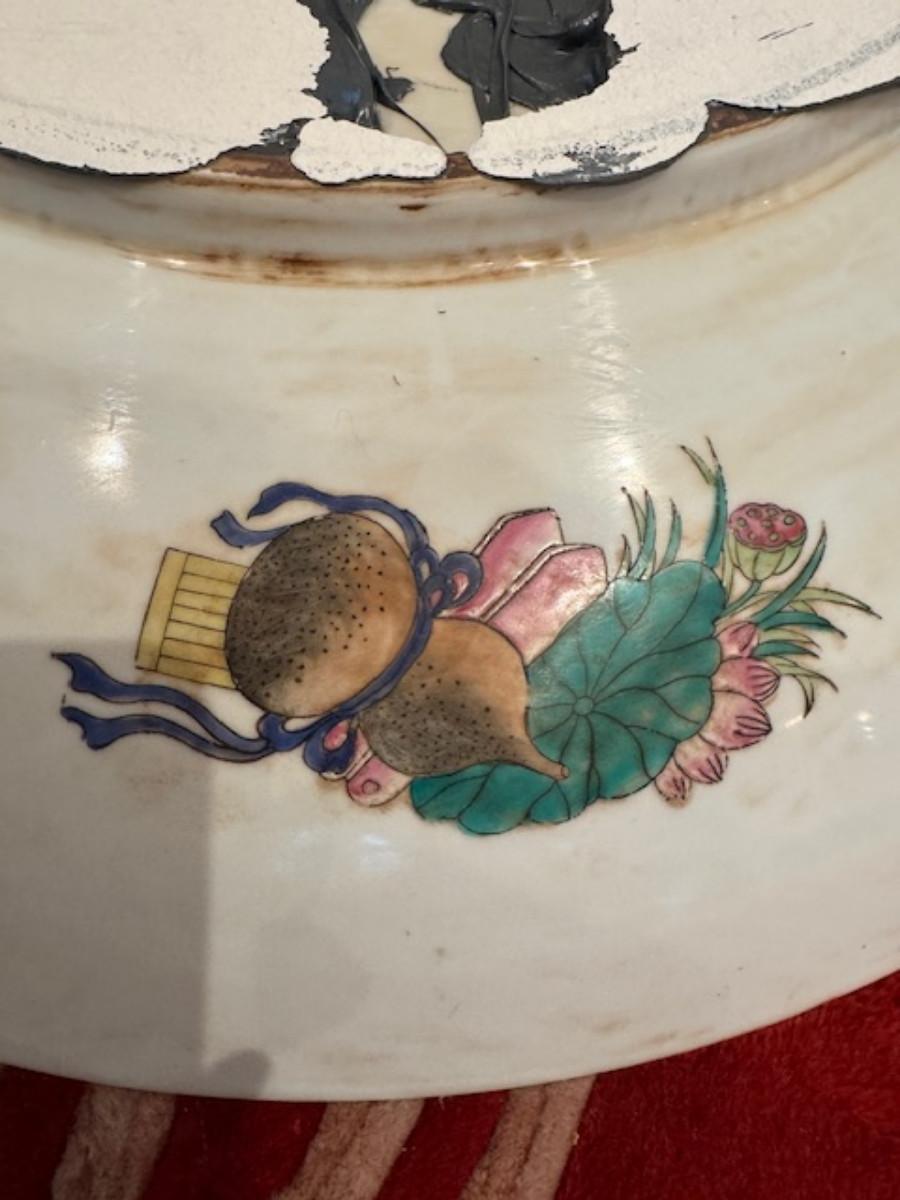 as found hard cement like adhesive on the back seems permanent and like it was glued to a wall at one point. Doesn't seem like the adhesive on the back can be removed.