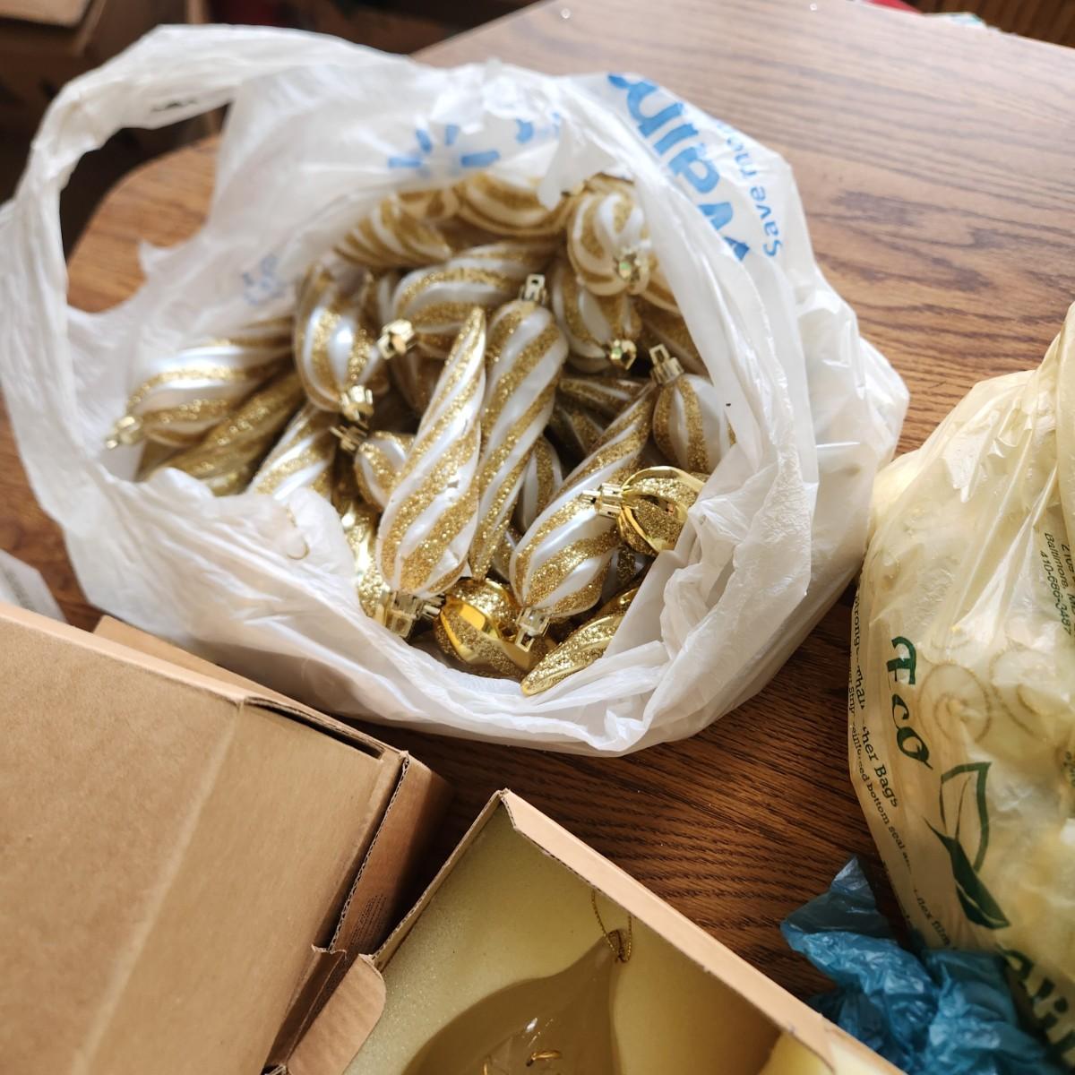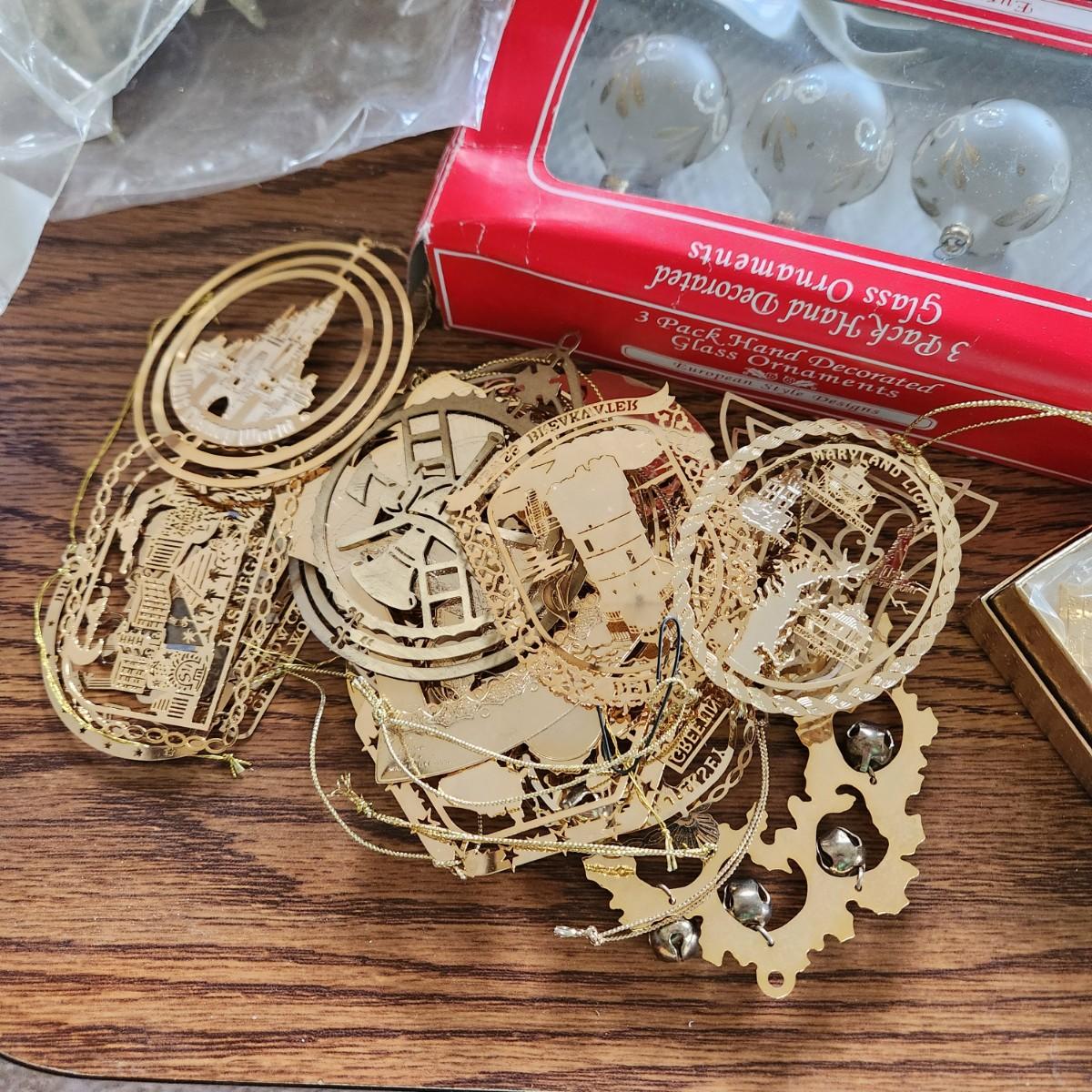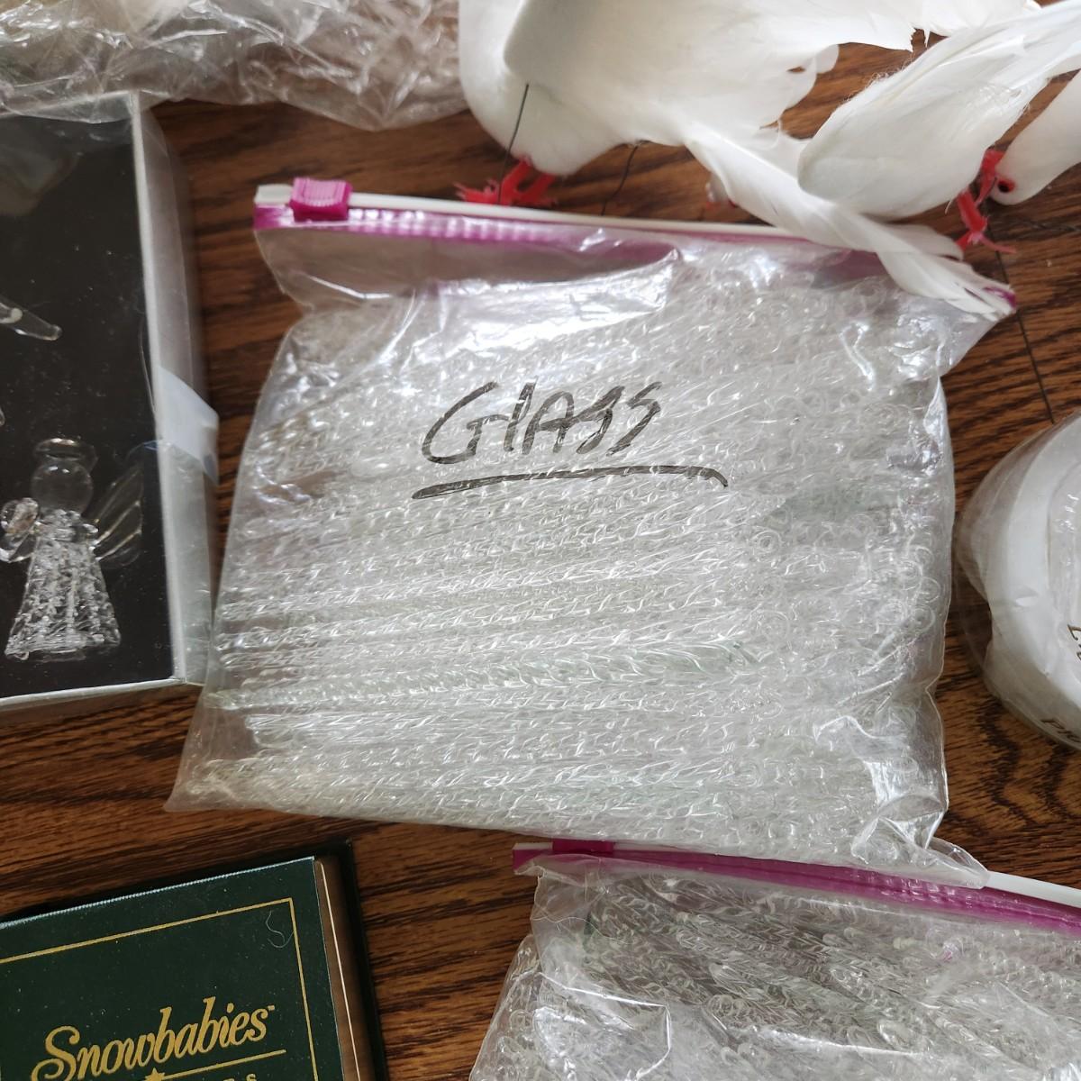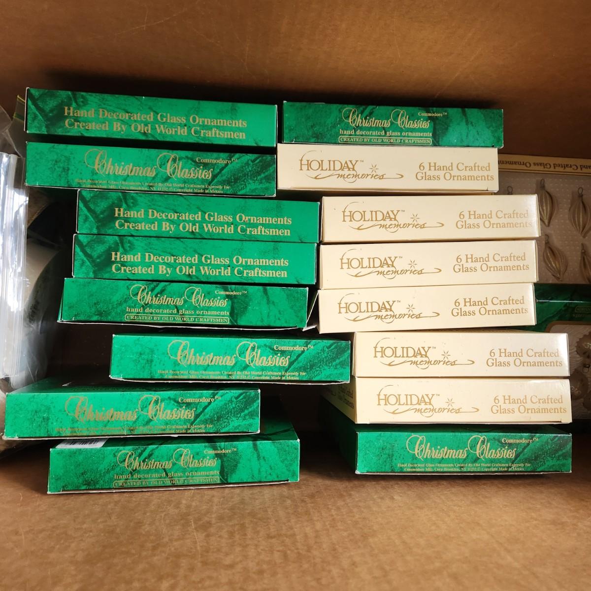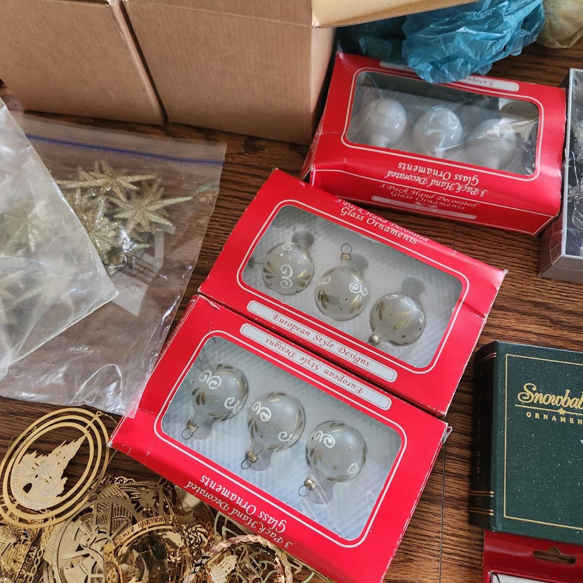 Large Box Filled w Christmas Ornaments & Decor Snowbabies, Glass Icicles ,