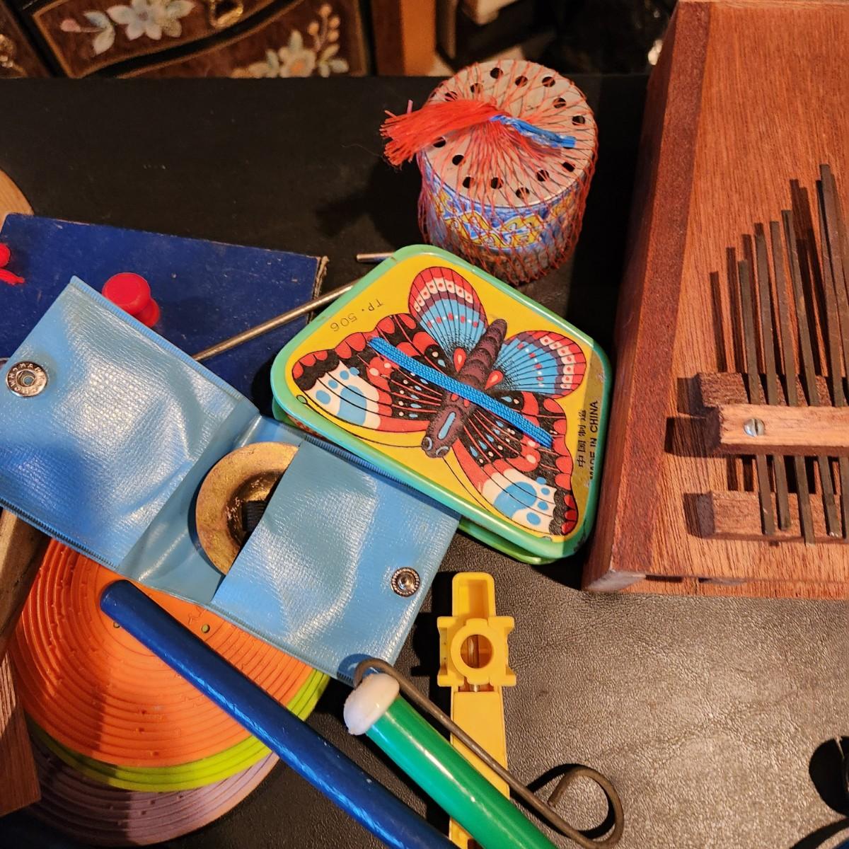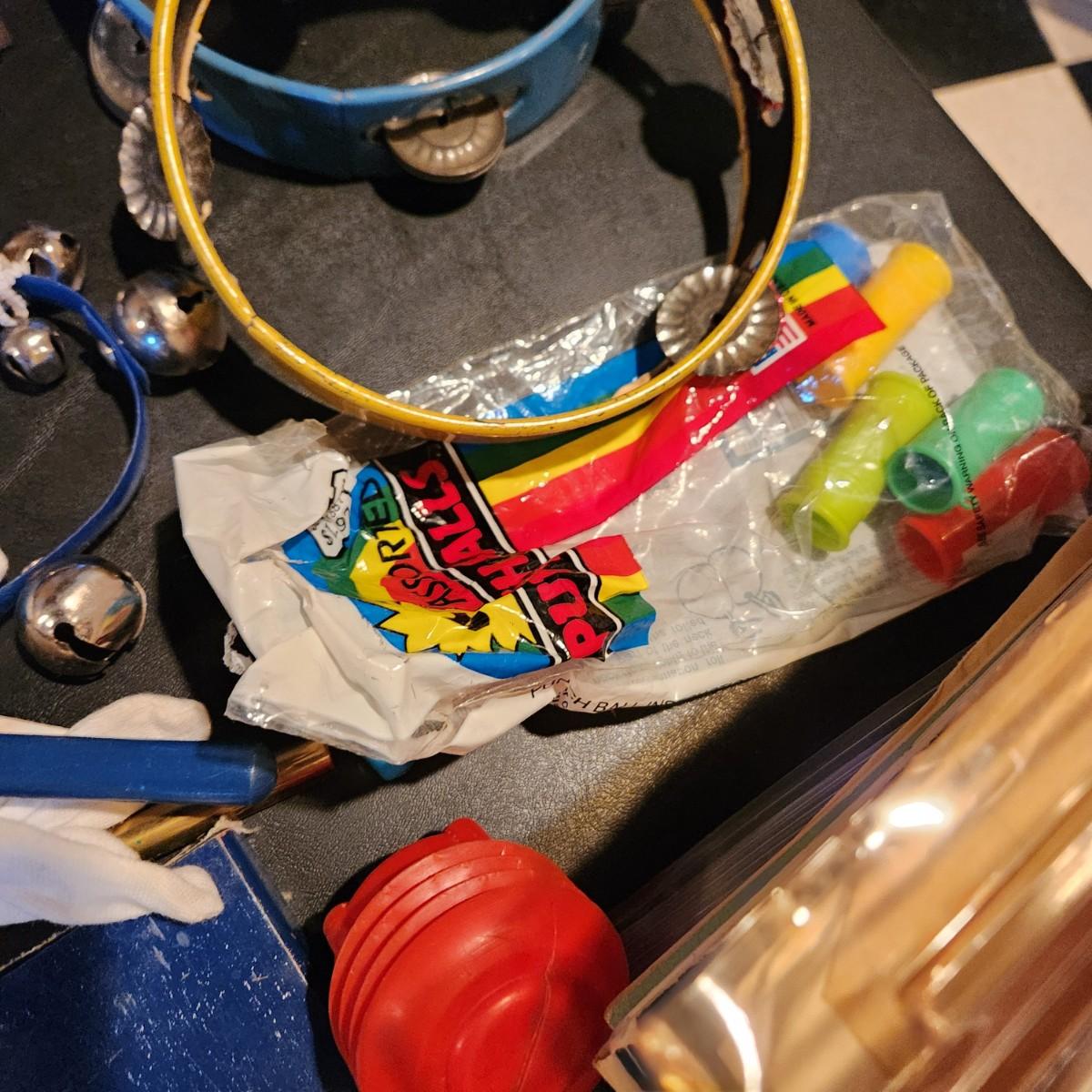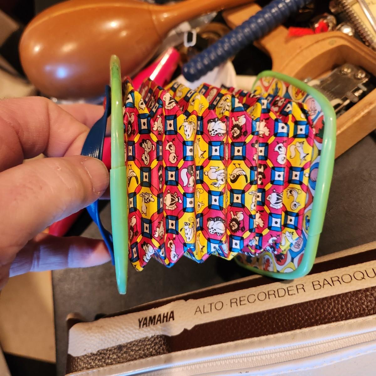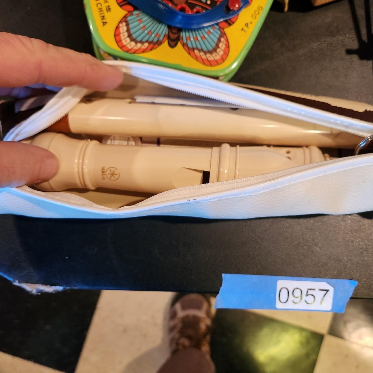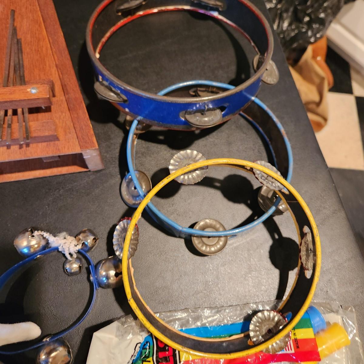 Large Box filled with Assorted Instruments & Music Books Yamaha Recorder , Harmonicas , Symbols, and many others
