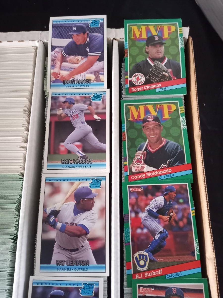LARGE BOX OF 92 BASEBALL TRADING CARDS