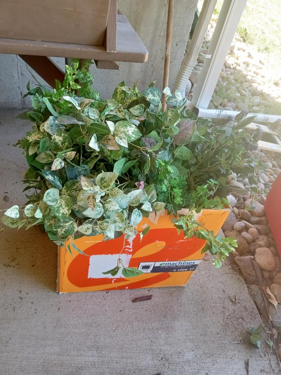 LARGE BOX OF ASSORTED FAUX GREENERY