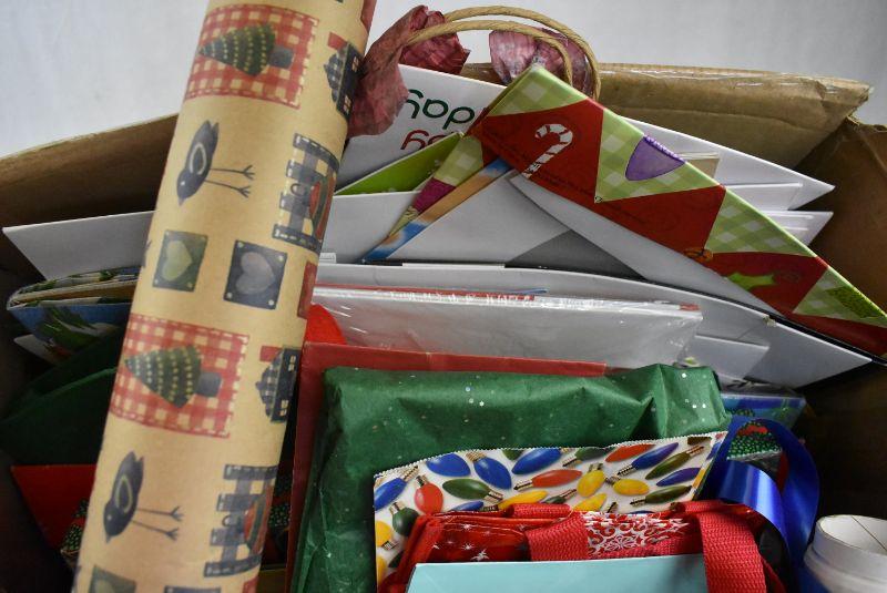 Large Box of Gift Wrapping Supplies" Bags, Paper, Ribbon, Boxes