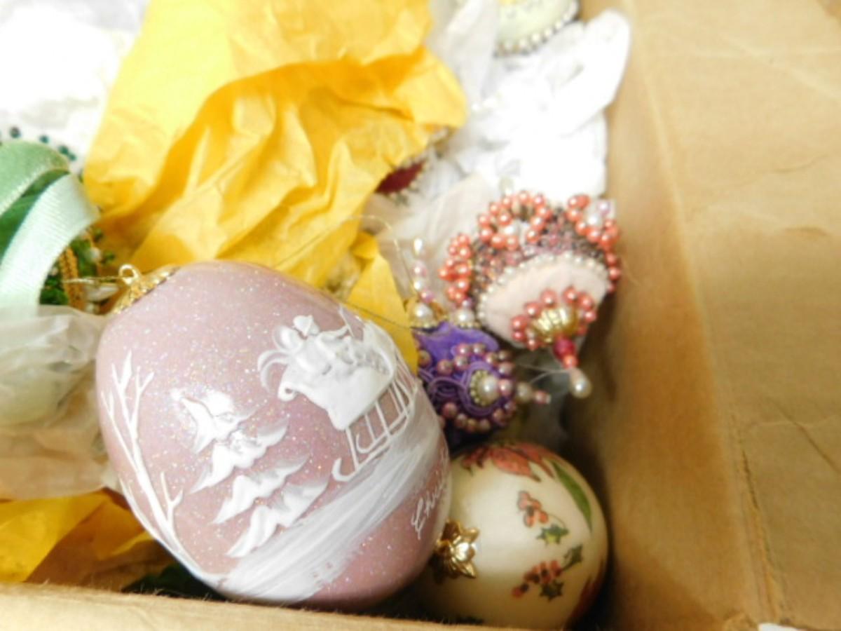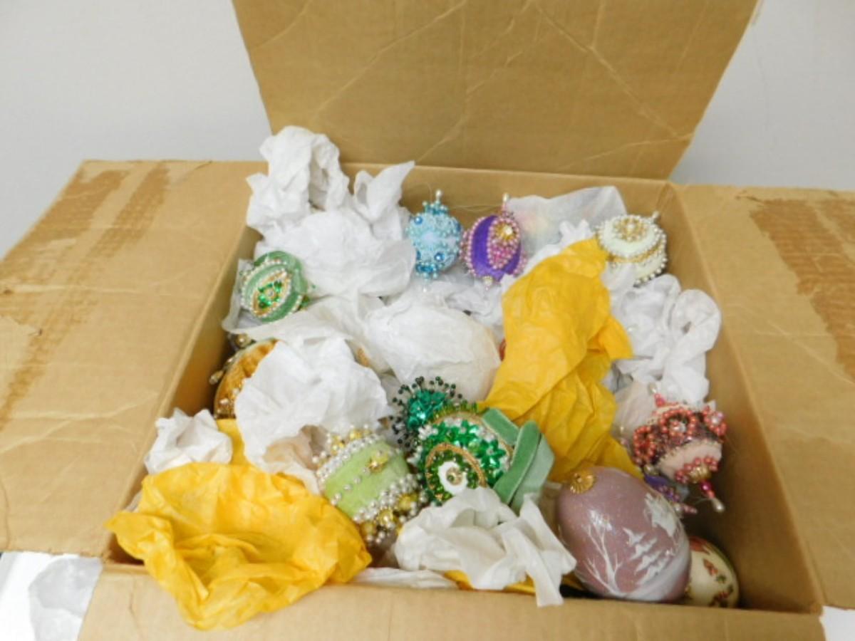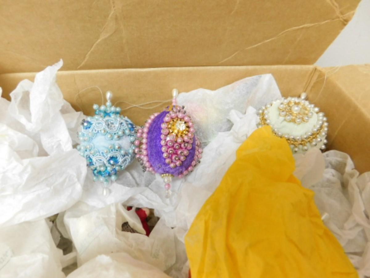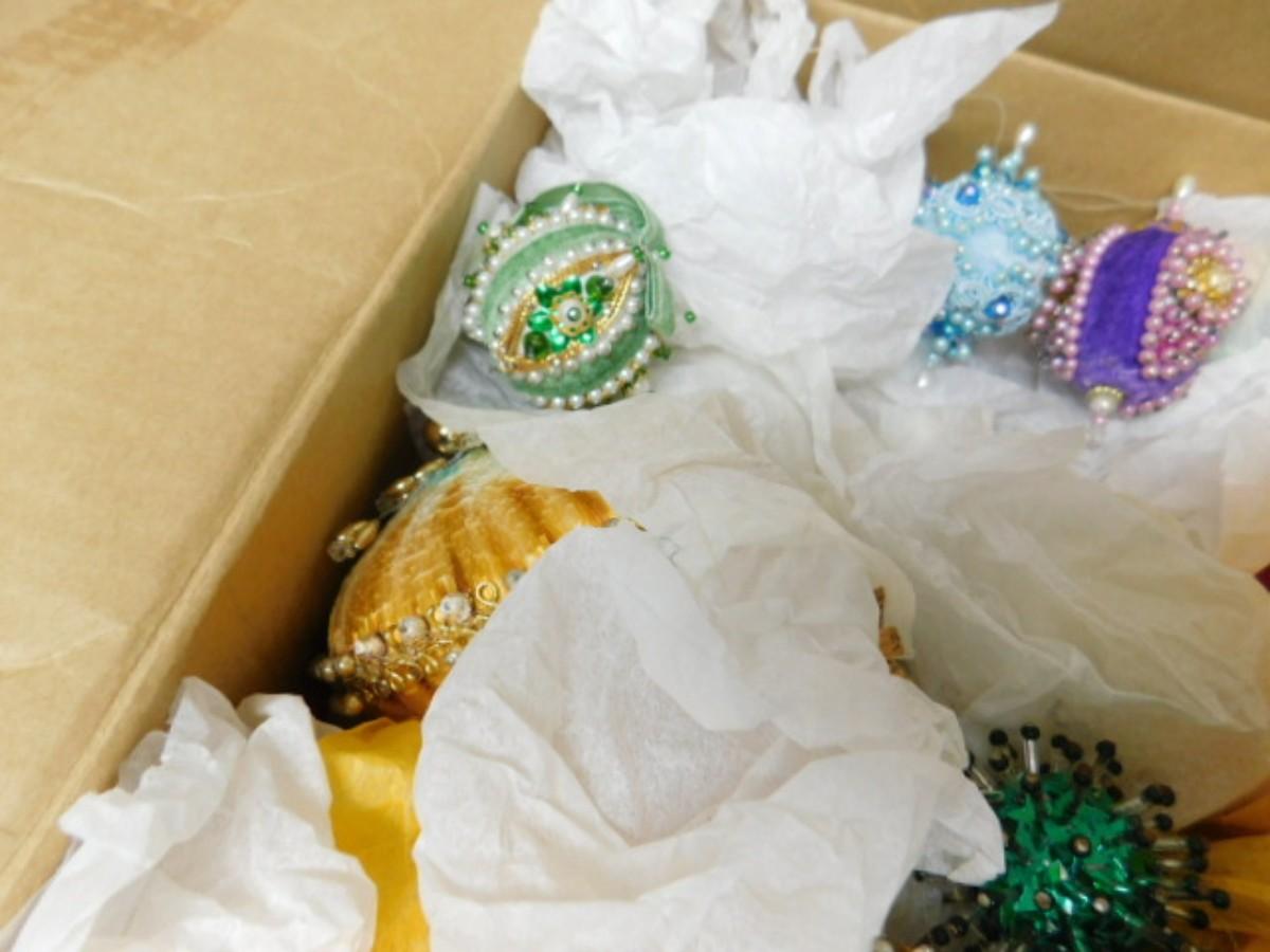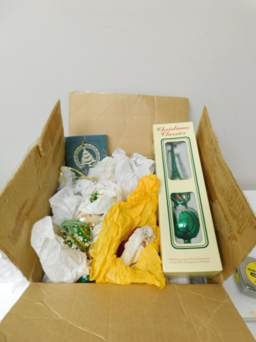 Large Box of Hand Crafted and Vintage Holiday Ornaments