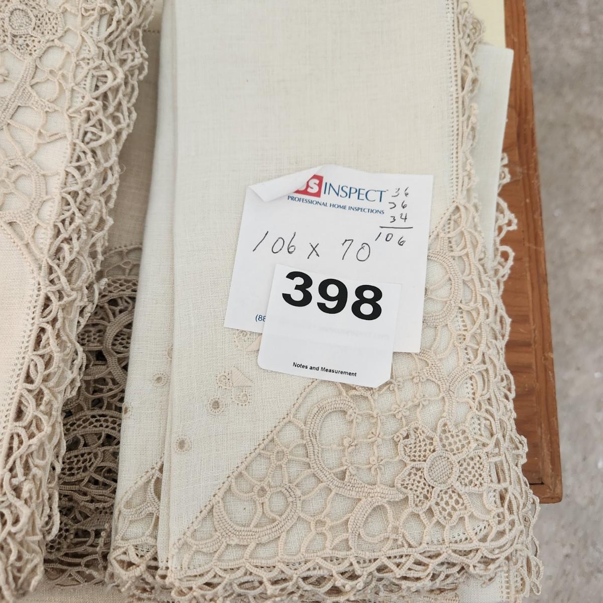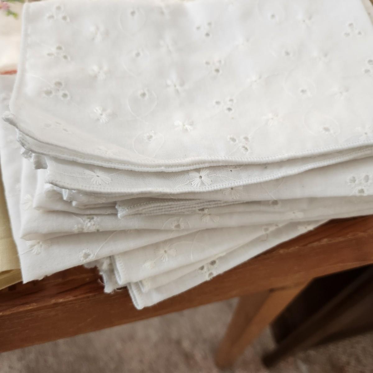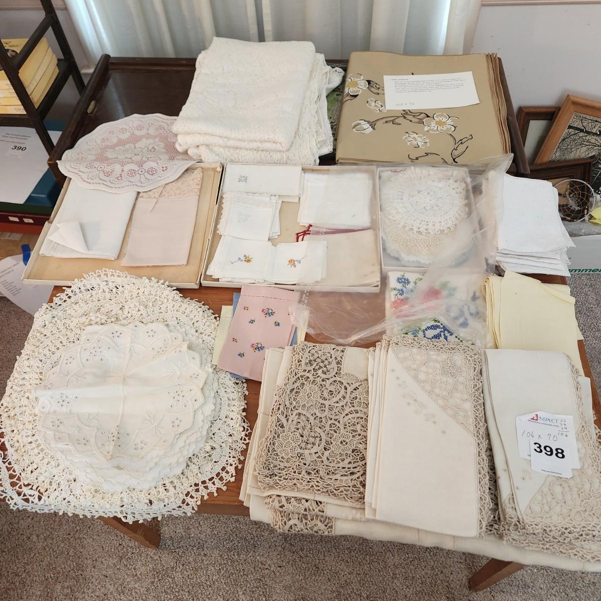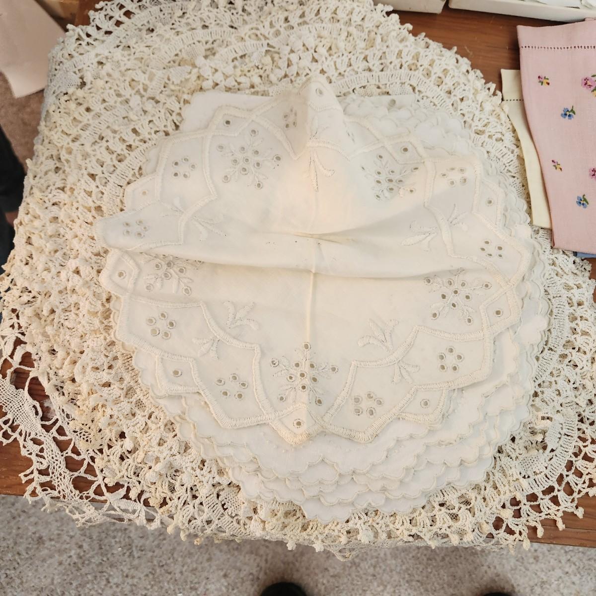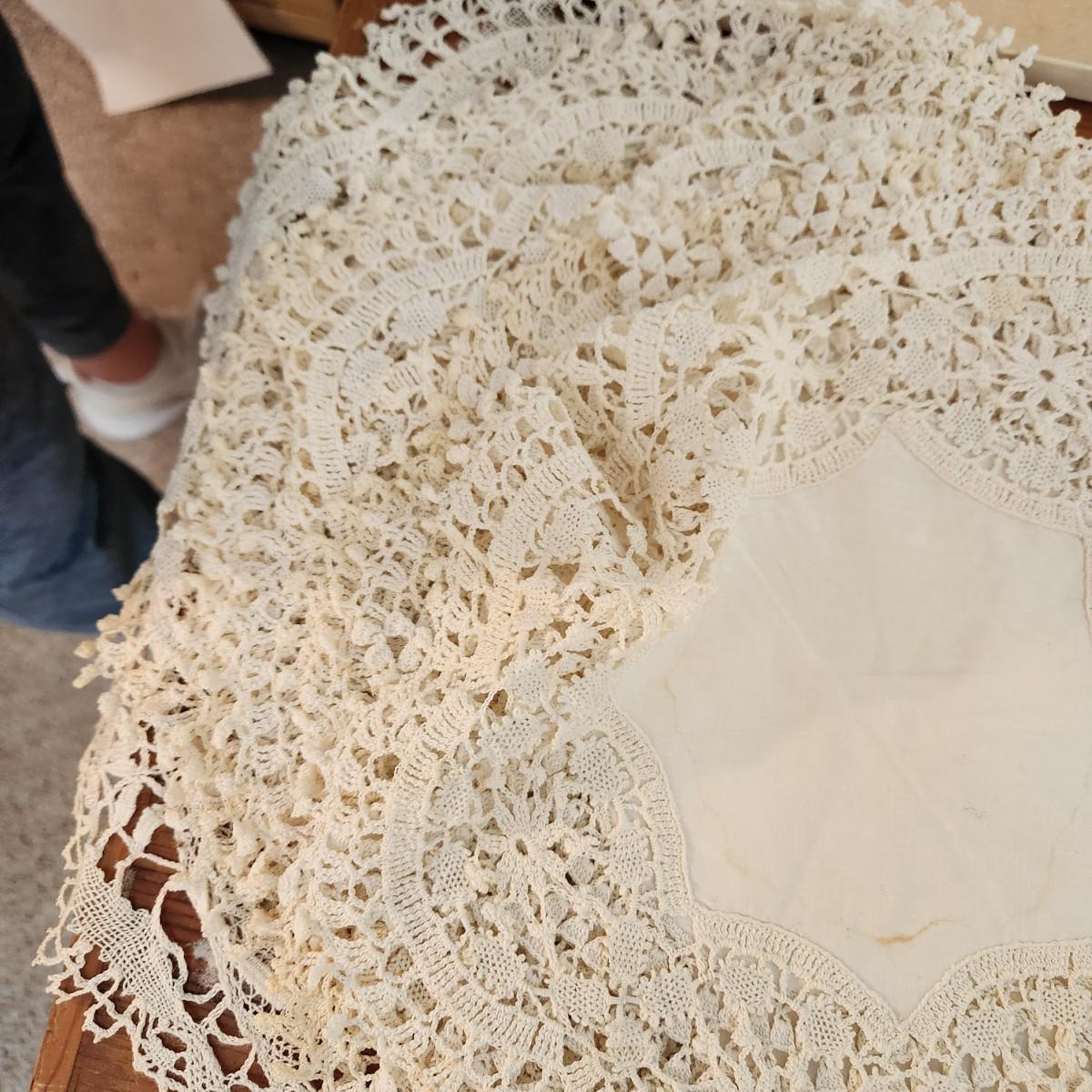 Large Box of Vintage Linens  Lace, Table Cover, Cocktail napkins