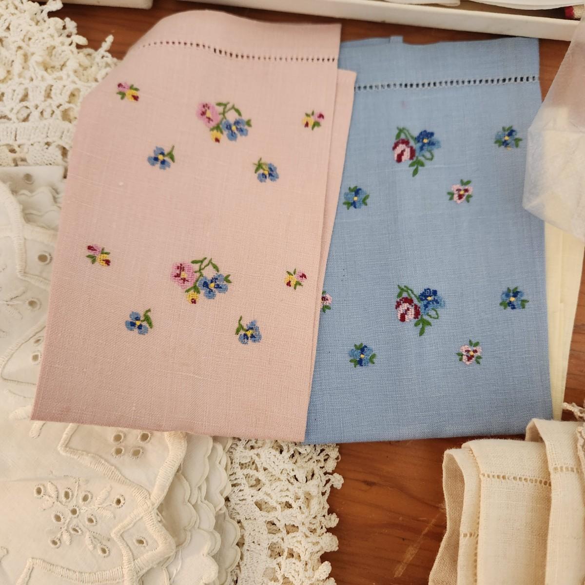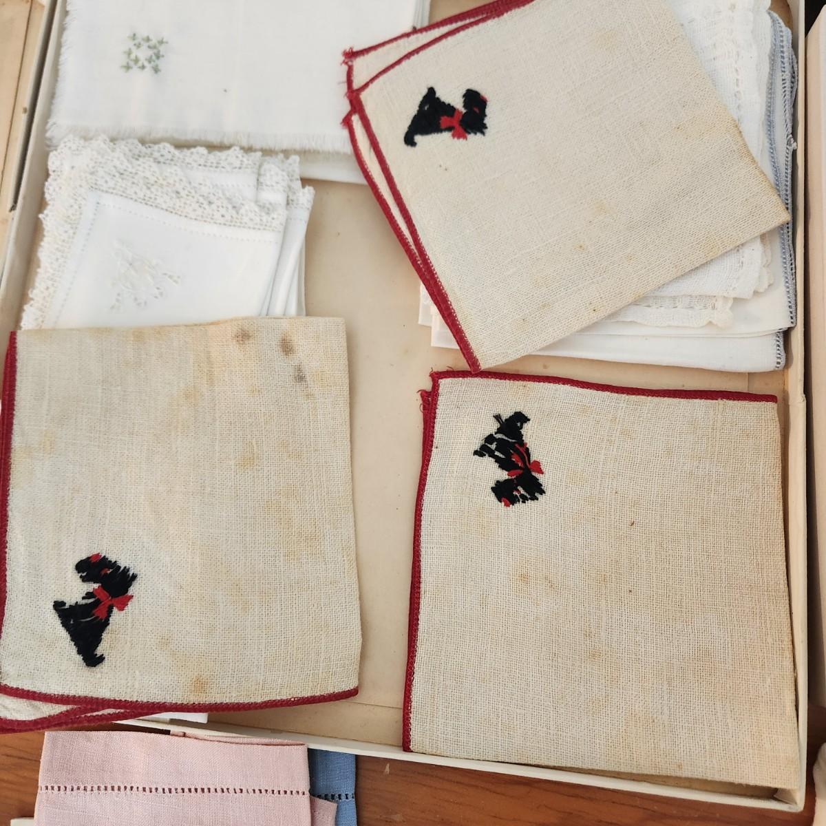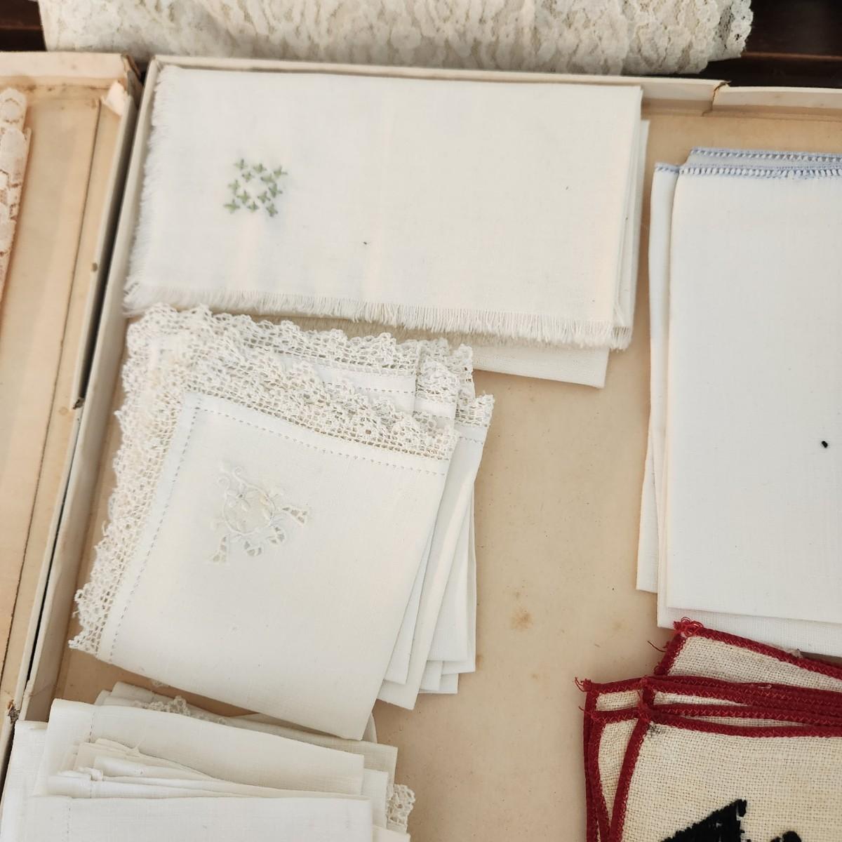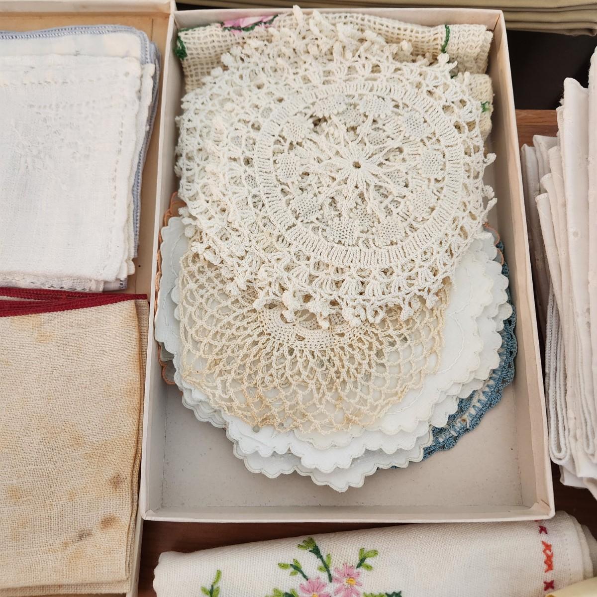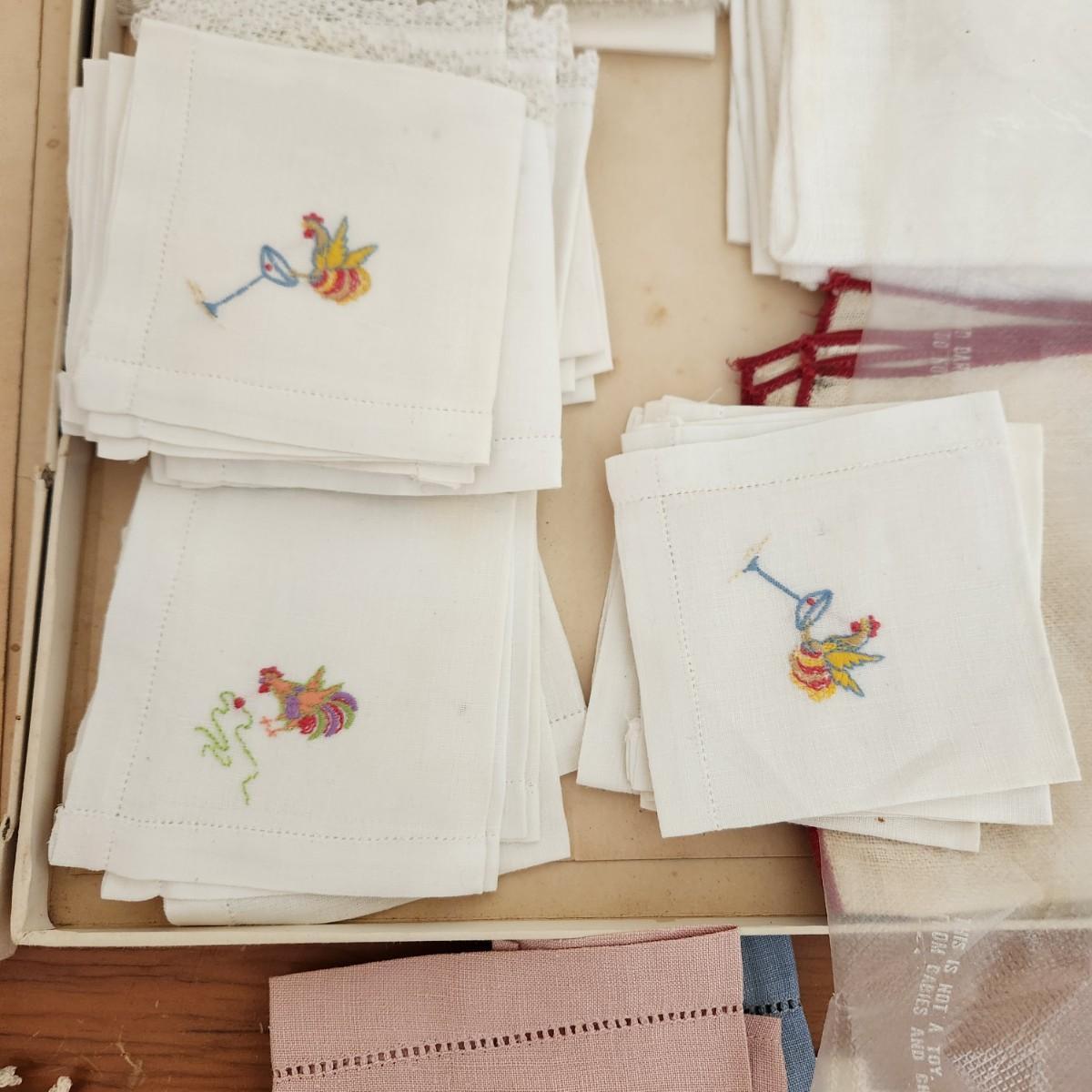 Large Box of Vintage Linens Lace, Table Cover, Cocktail napkins