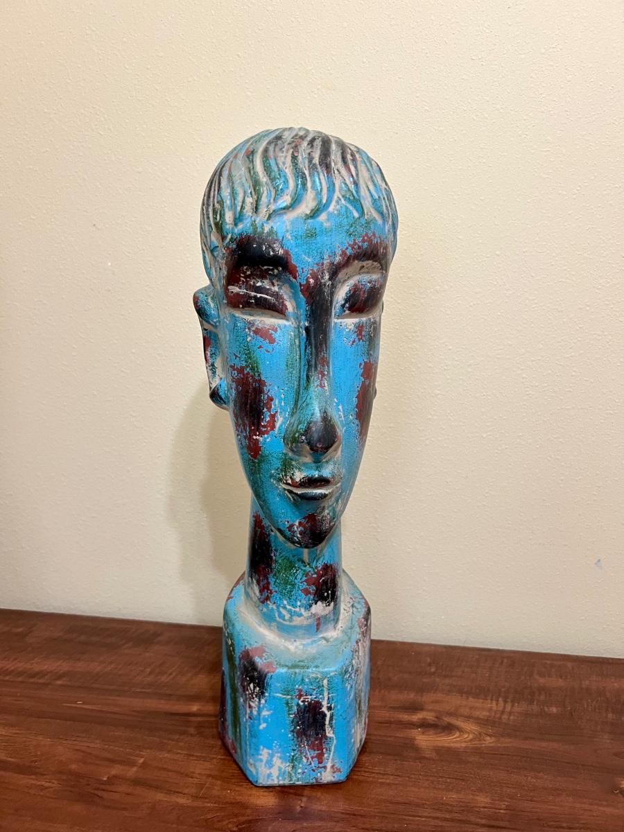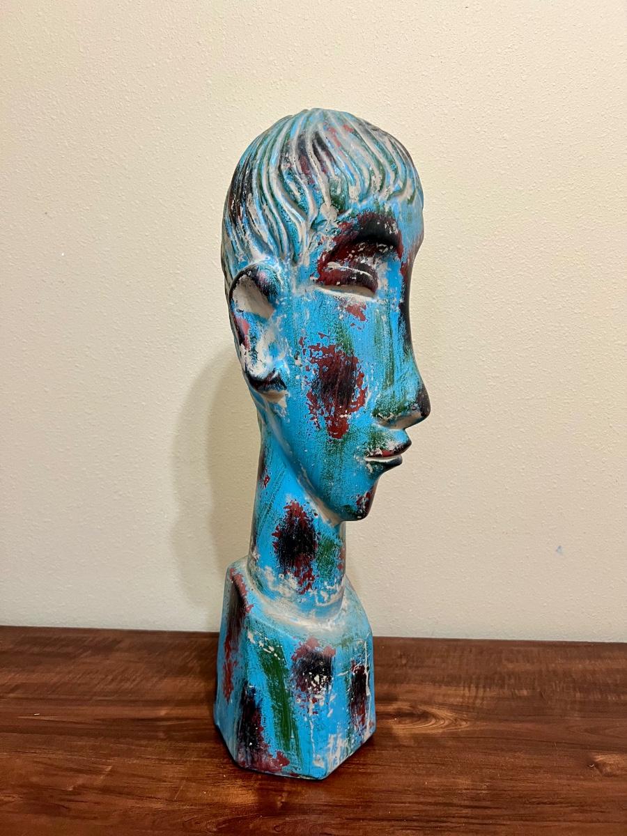 This is larger than it appears. Large Boy Head Sculpture. Measures 21 inches tall