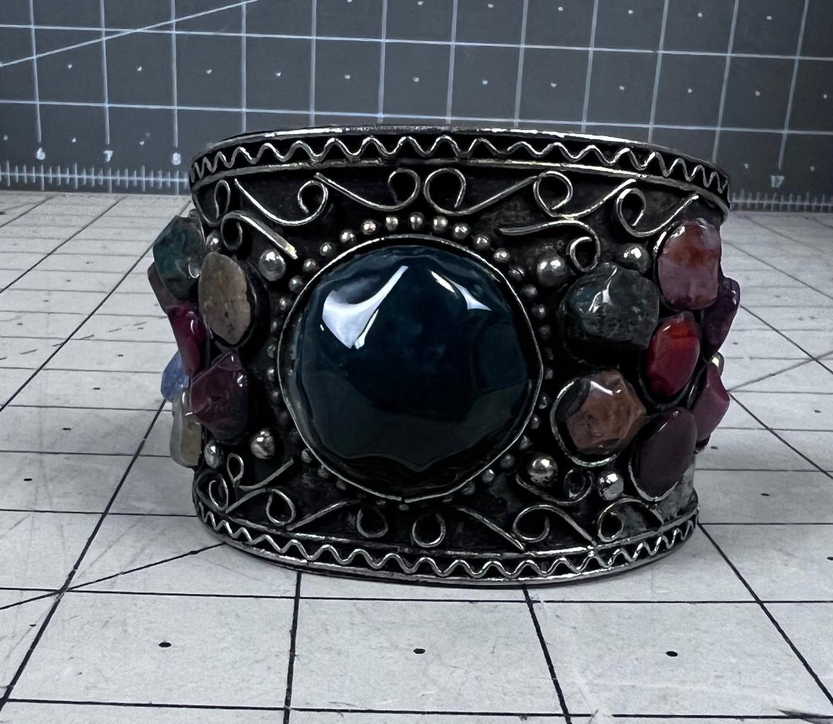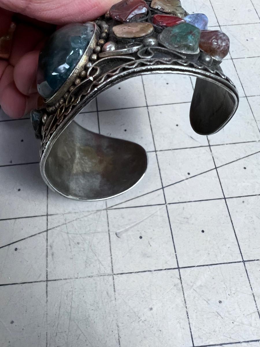 Large Bracelet: Palithera of Chakra Stones and Probably Plated Silver