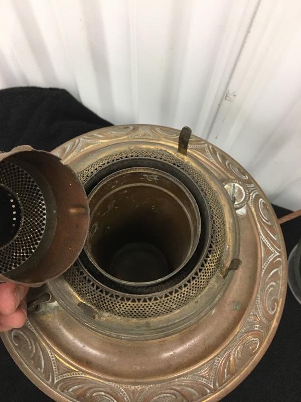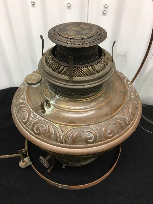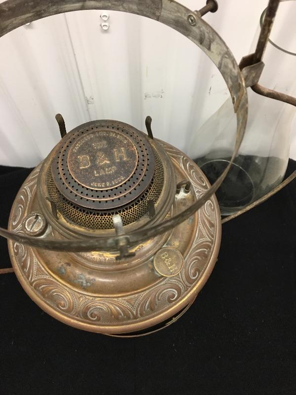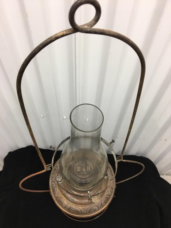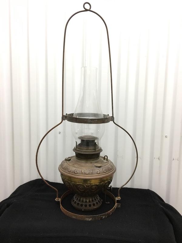 Includes glass chimney! Measures 16” wide x 22” h. Lantern alone measures 9x12. Packaging and shipping services available. Please contact us for a quote before bidding.