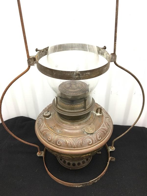 c. 1890 Large BRADLEY & HUBBARD Porch Handing Oil Lamp 16x22