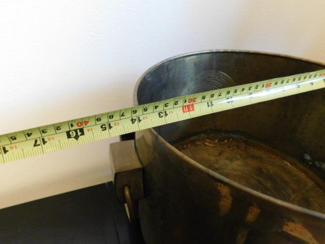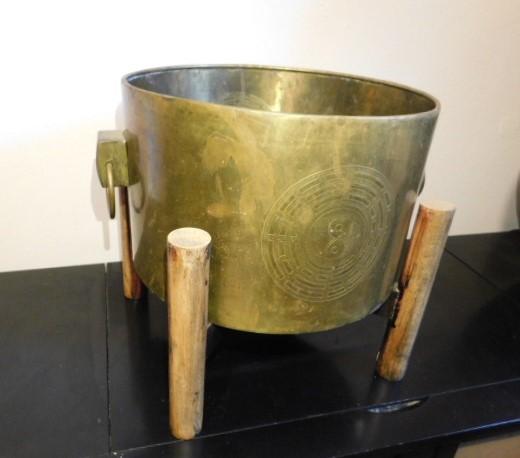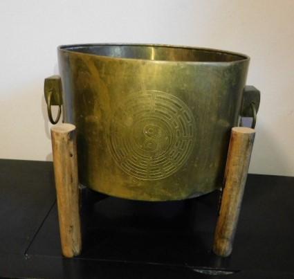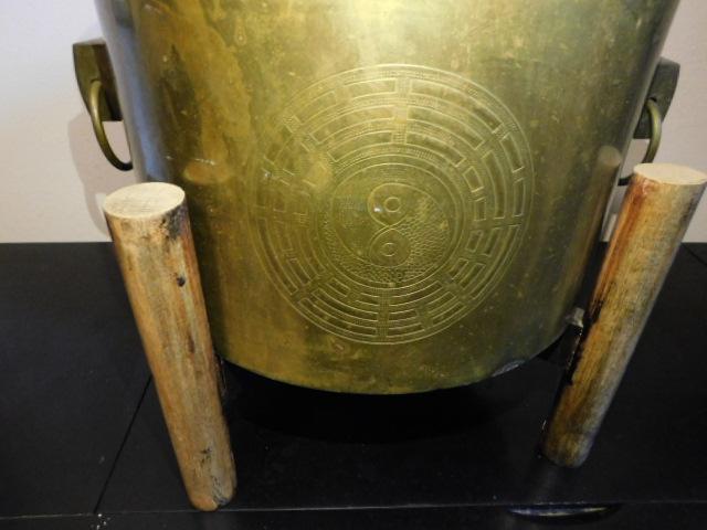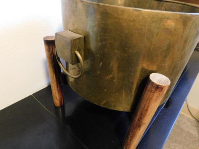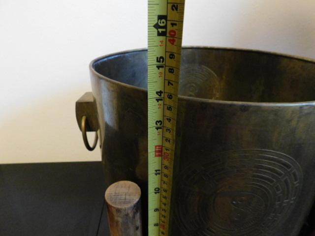 Large Brass Bucket or Planter on Teak Wood Stand 15"x14"