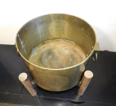 Large Brass Bucket or Planter on Teak Wood Stand