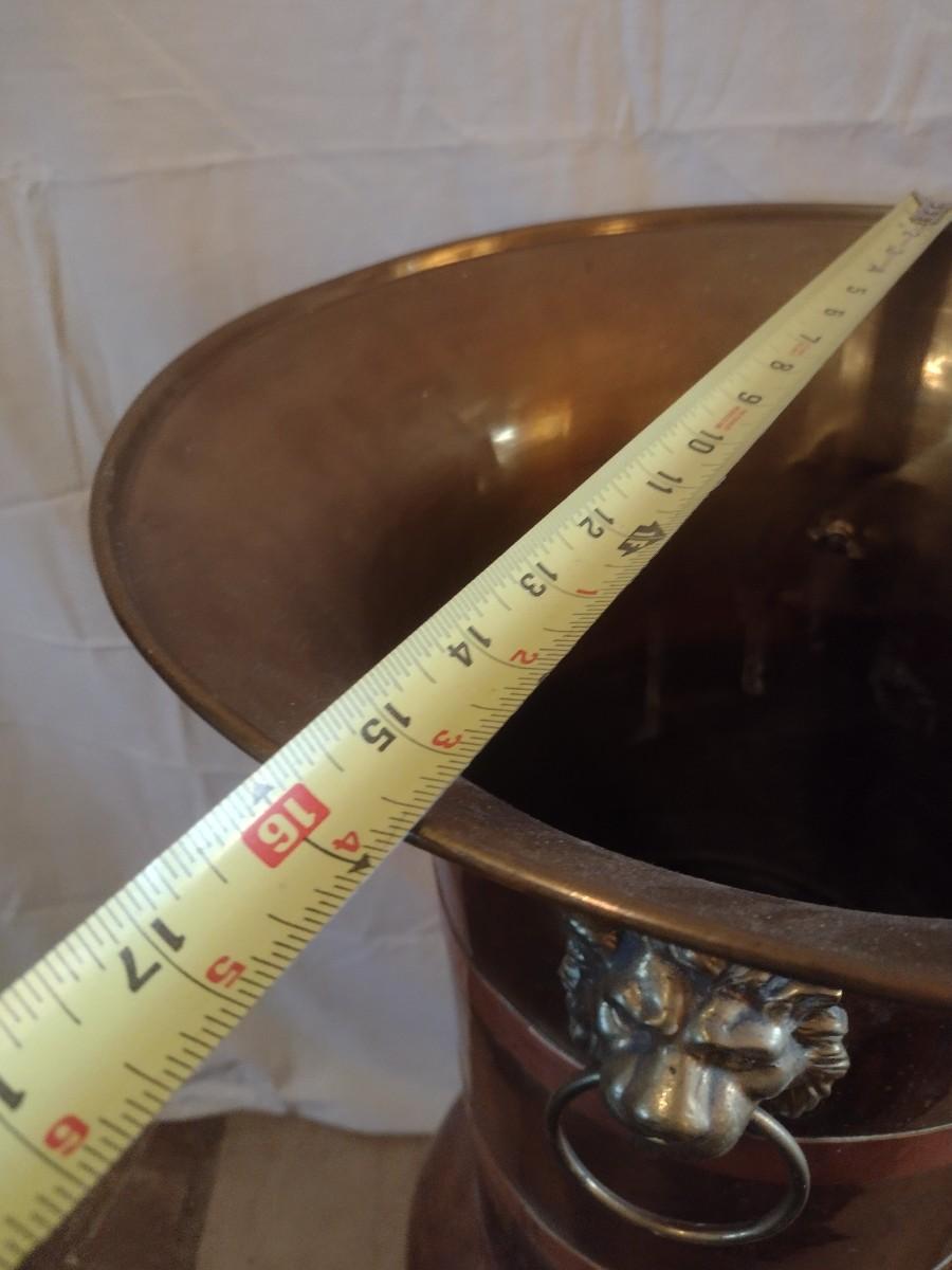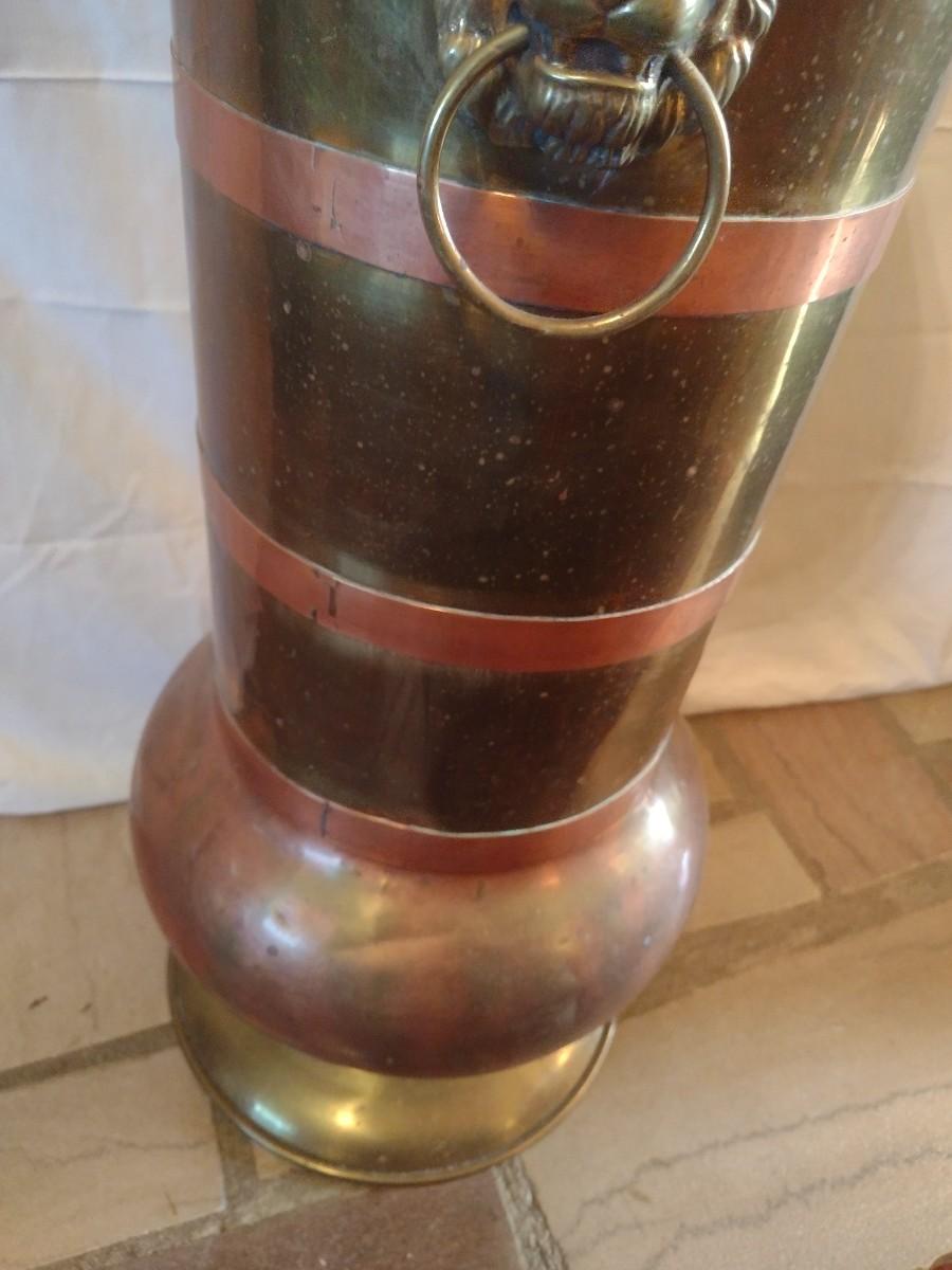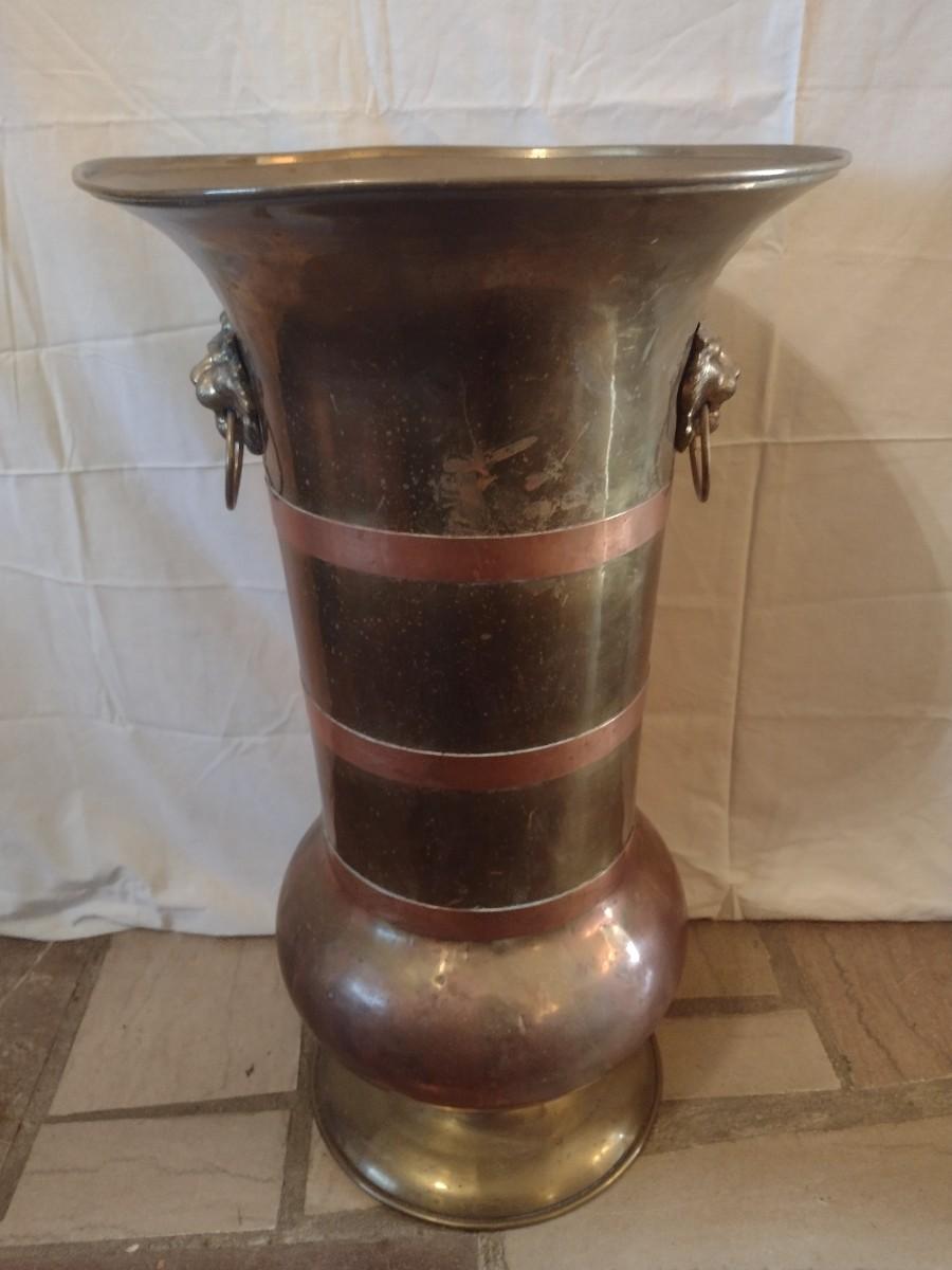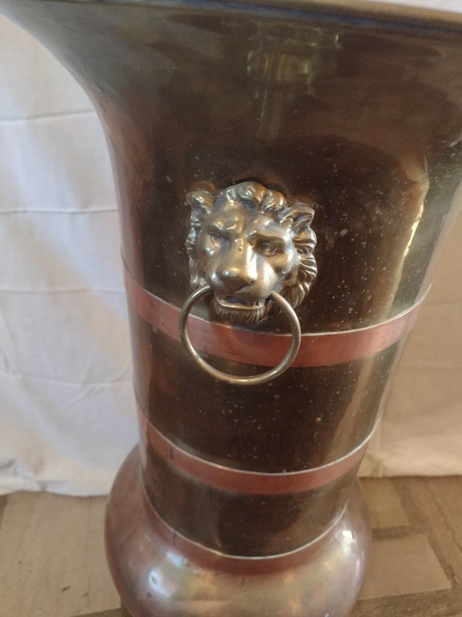 Large Brass Floor Vase with Lion Head Handles