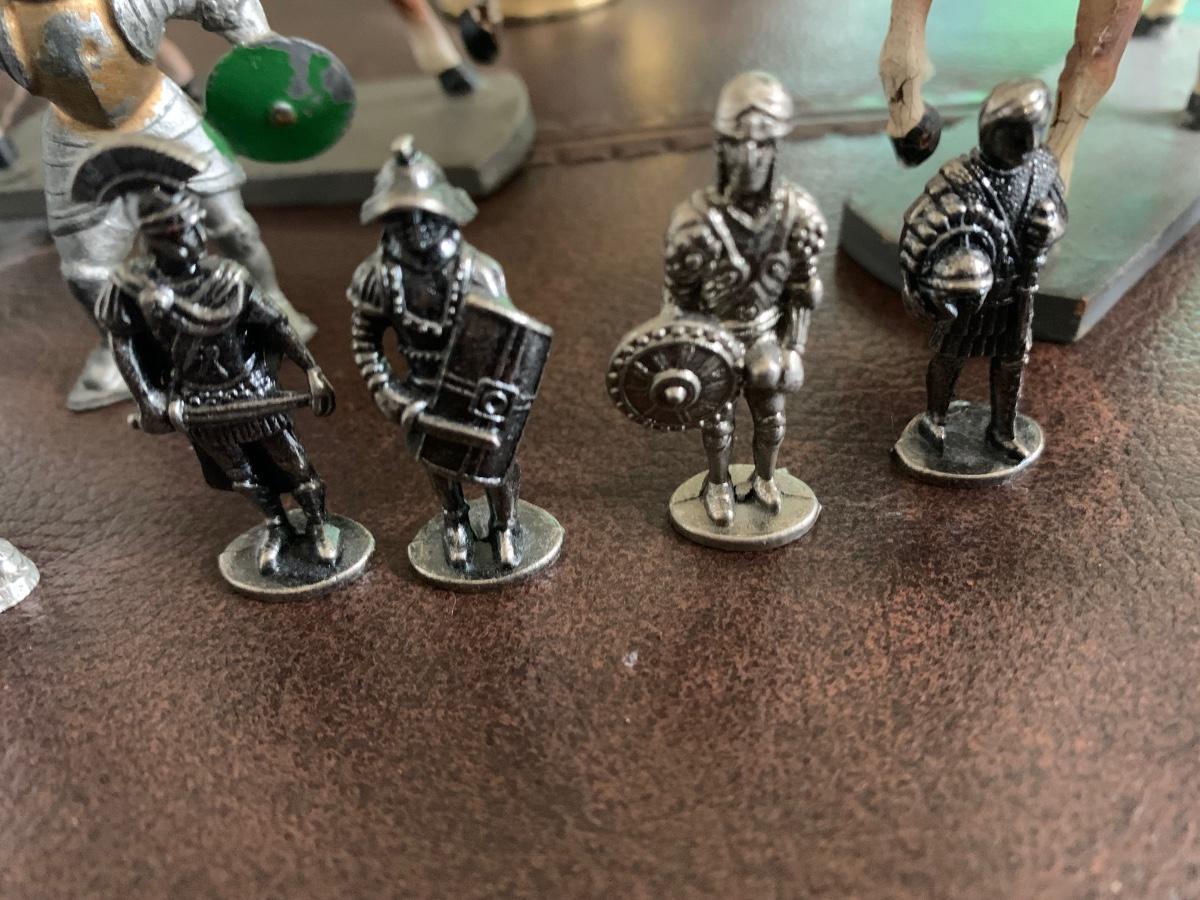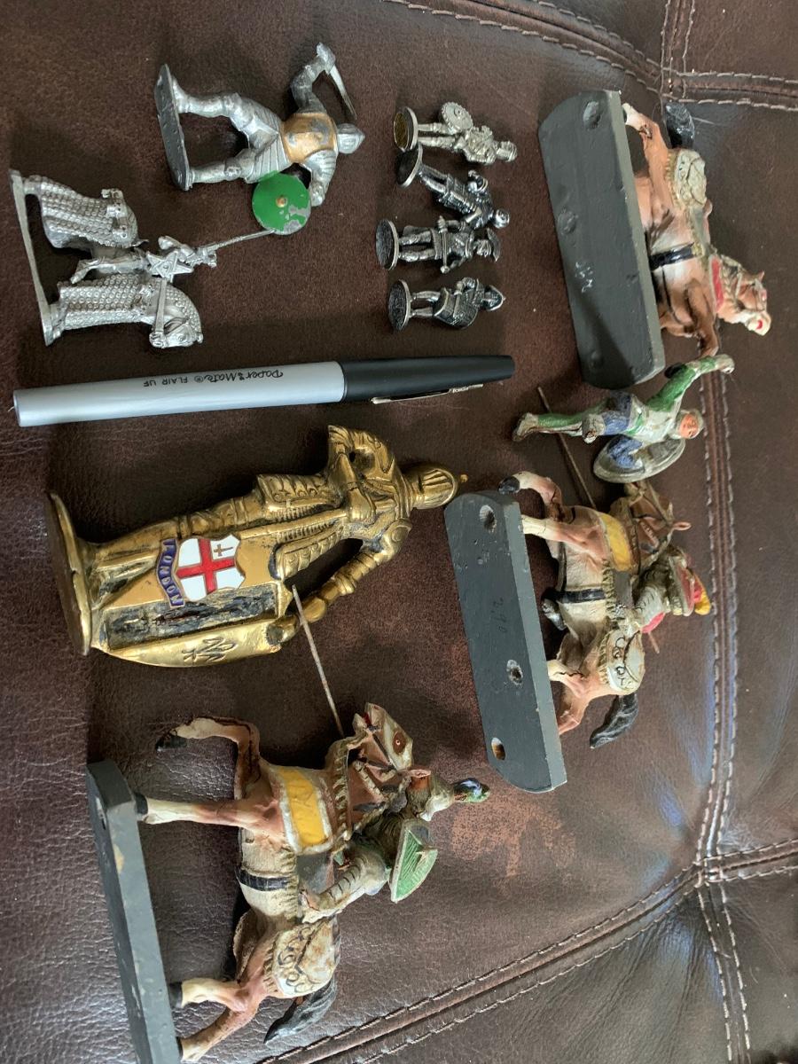 Largest one is brass, larger horses appear to be a light composite, the rest cast metal. Selling as is, as found in this wonderful estate. See many photos for content, condition, and dimensions. NEVER a Buyer's Premium added to your final bid. All “lots” start at just $10 and sell to the highest bidder with No Reserve. Good luck bidding!