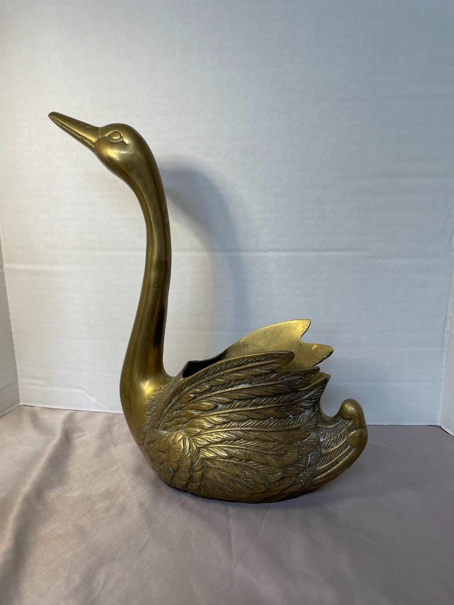 Large Brass Swan Planter