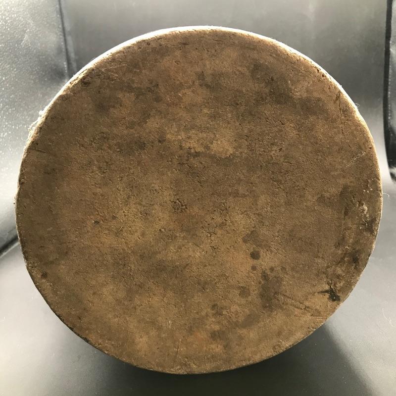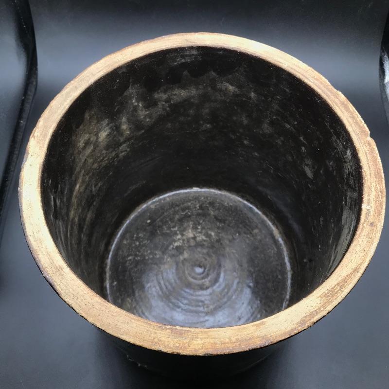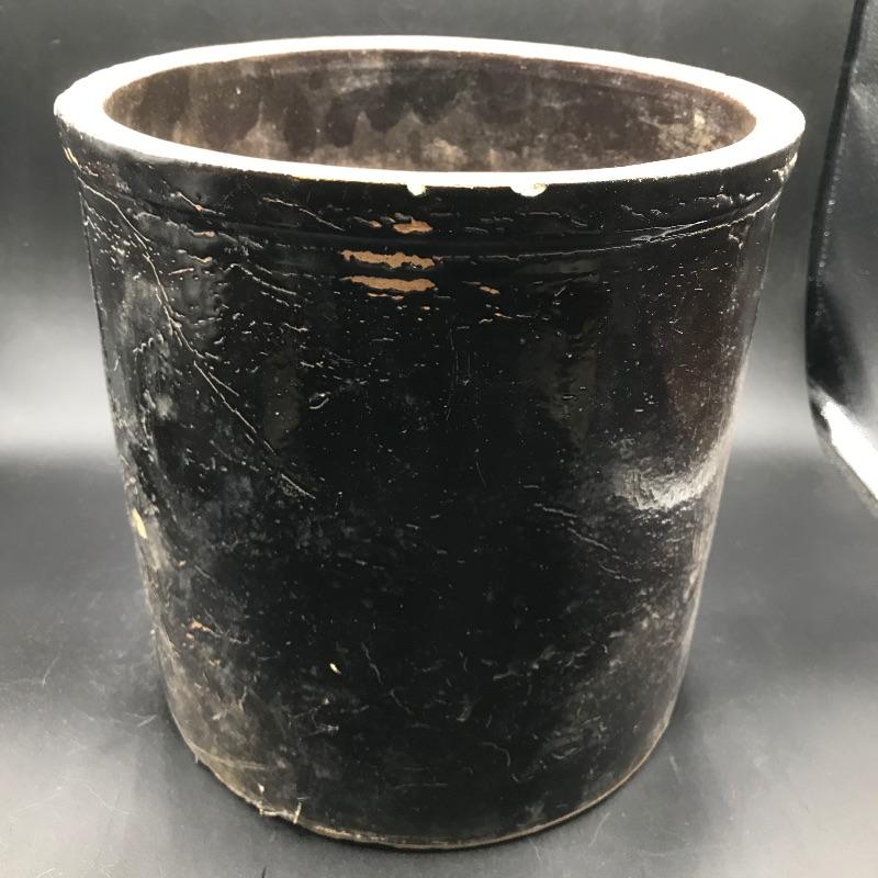 This planter exhibit all the normal wear associated with being an outdoor planter e.g.. Scuffs, scratches, and gouges. Planter measures 9 3/4“ in diameter and stands 9 1/2“ tall.