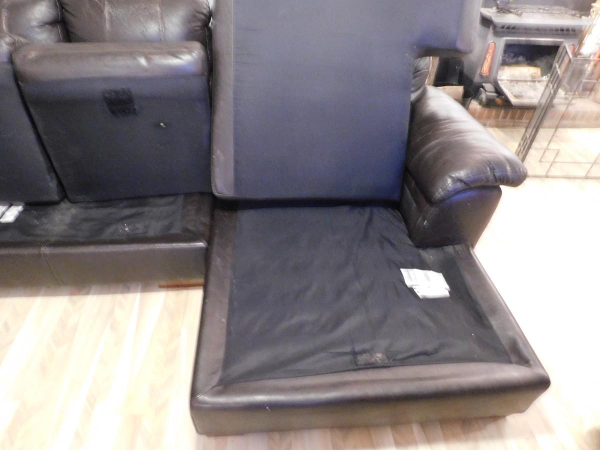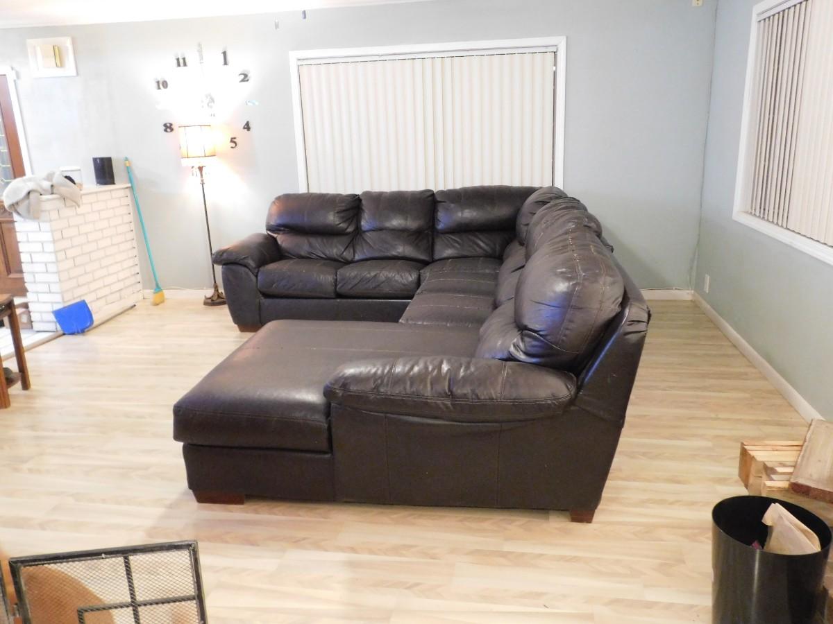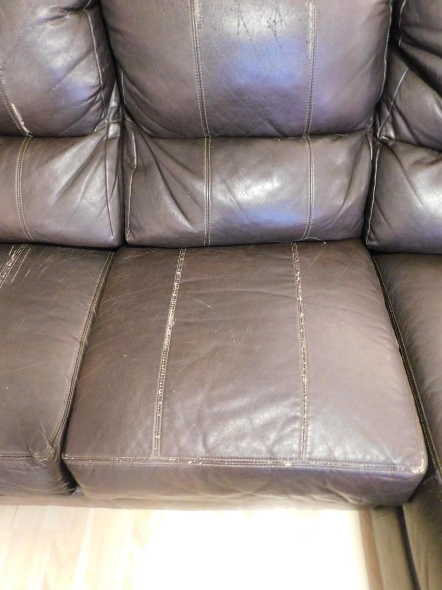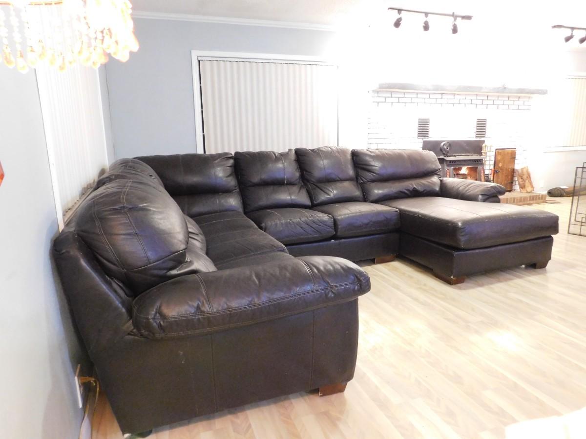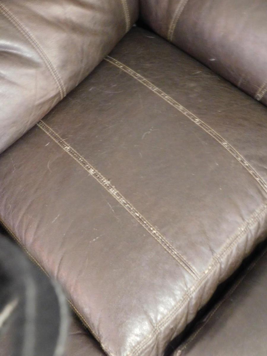 BIG COMFY COUCH, BROWN VINYL EXTERIOR. THERE IS SOME WEAR ON THE COUCH (AS PICTURED) BUT THERE IS STILL A LOT OF MILES LEFT ON THIS ONE. MEASURES ??