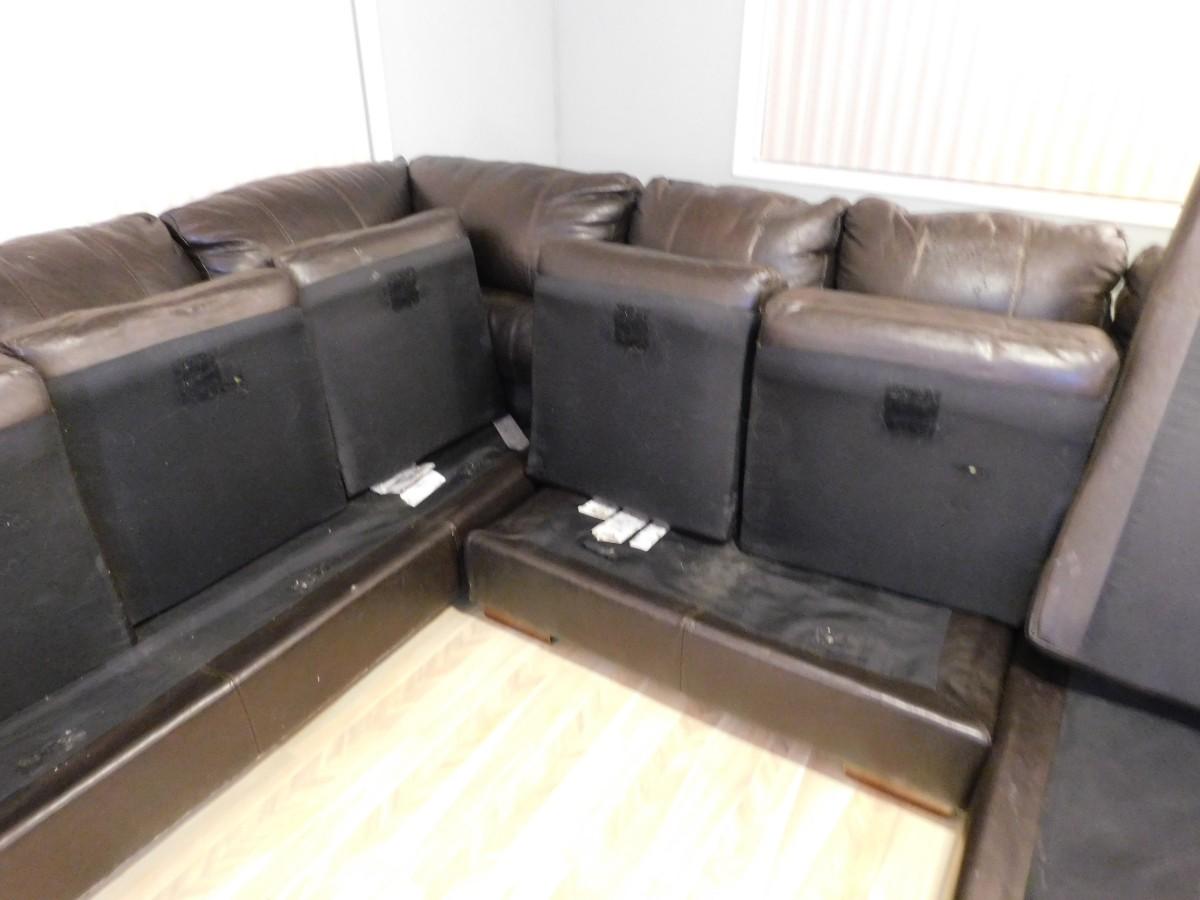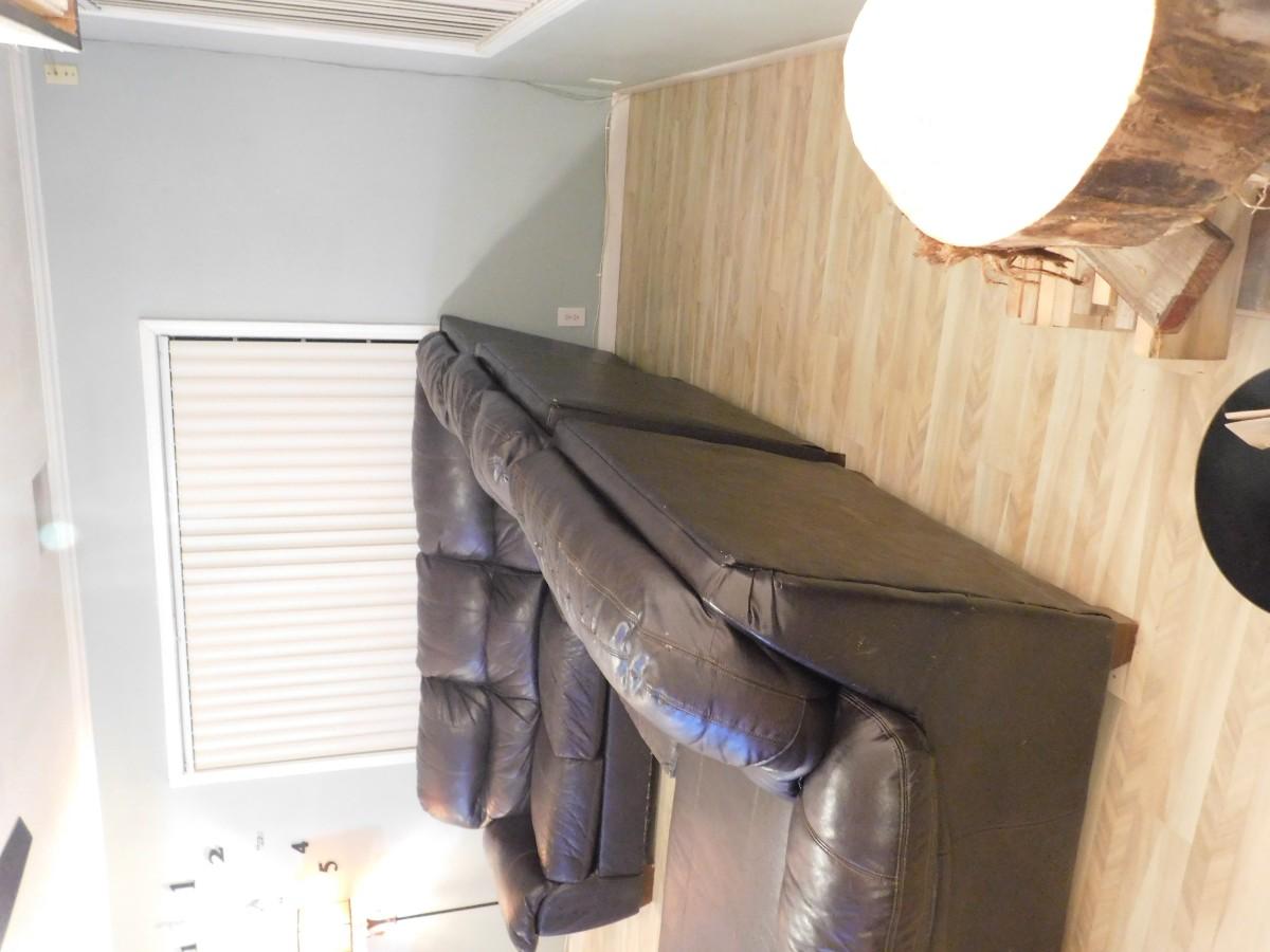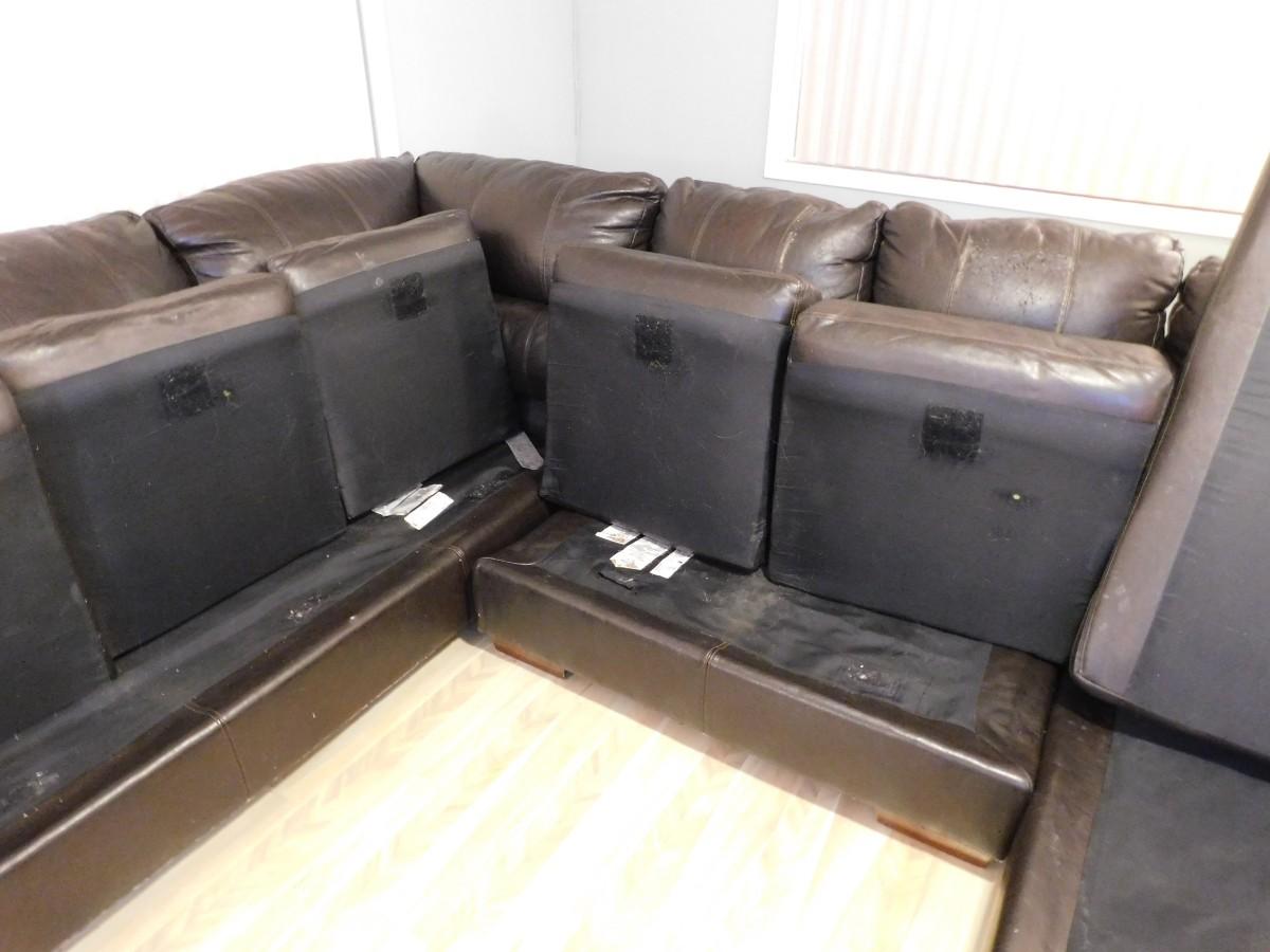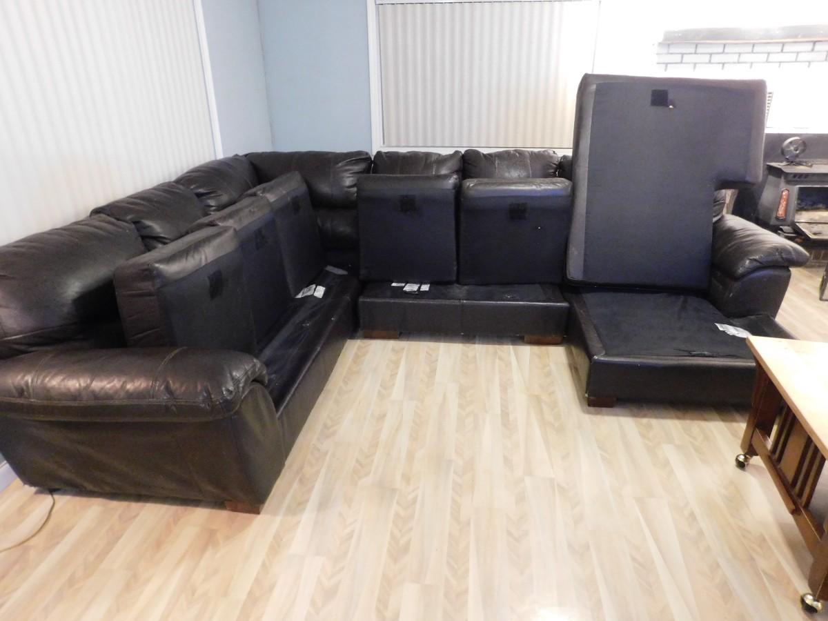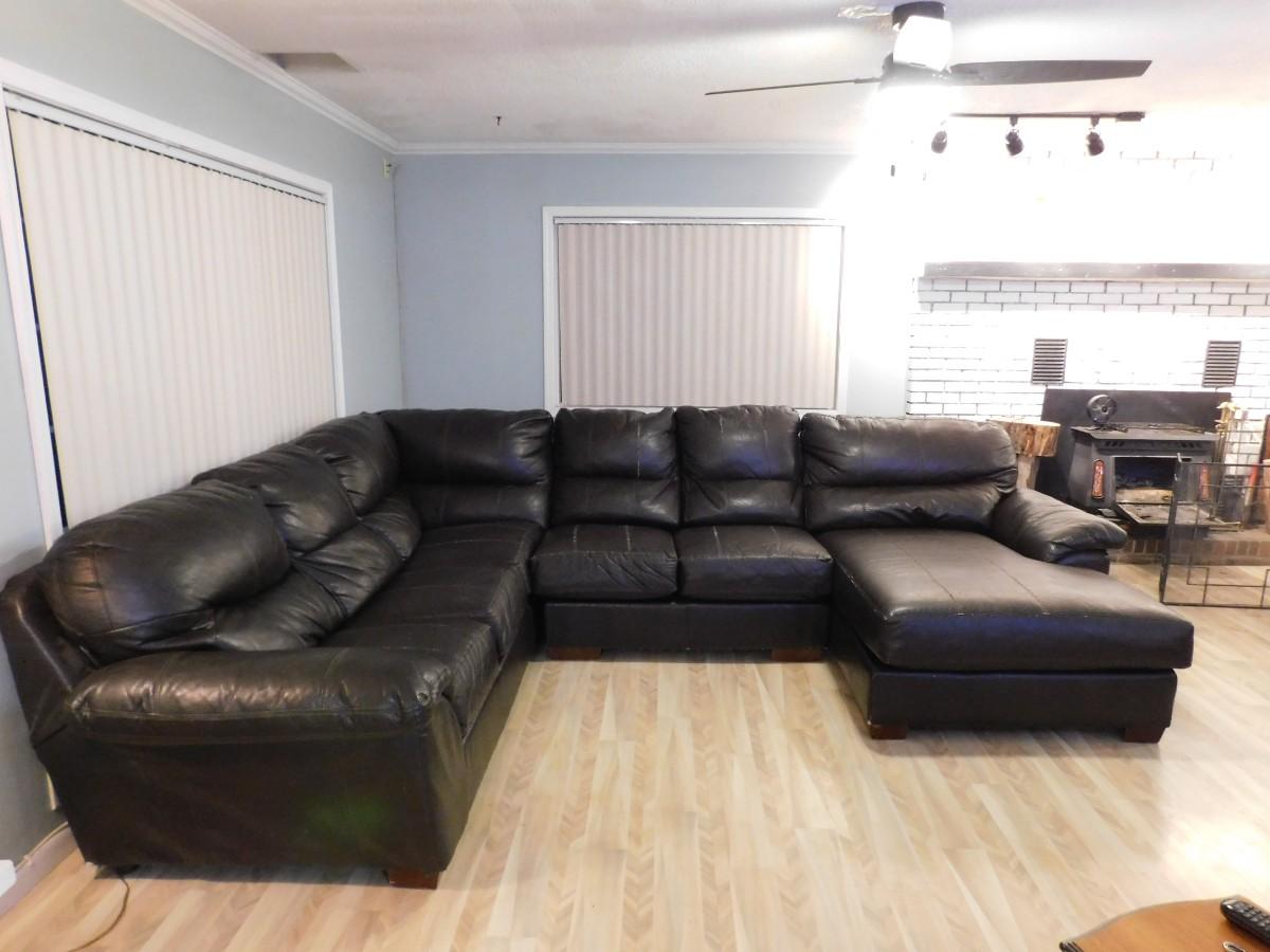 BIG COMFY COUCH, BROWN VINYL EXTERIOR. THERE IS SOME WEAR ON THE COUCH (AS PICTURED) BUT THERE IS STILL A LOT OF MILES LEFT ON THIS ONE. MEASURES ??