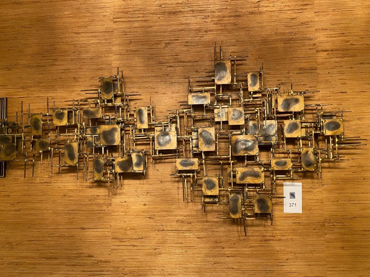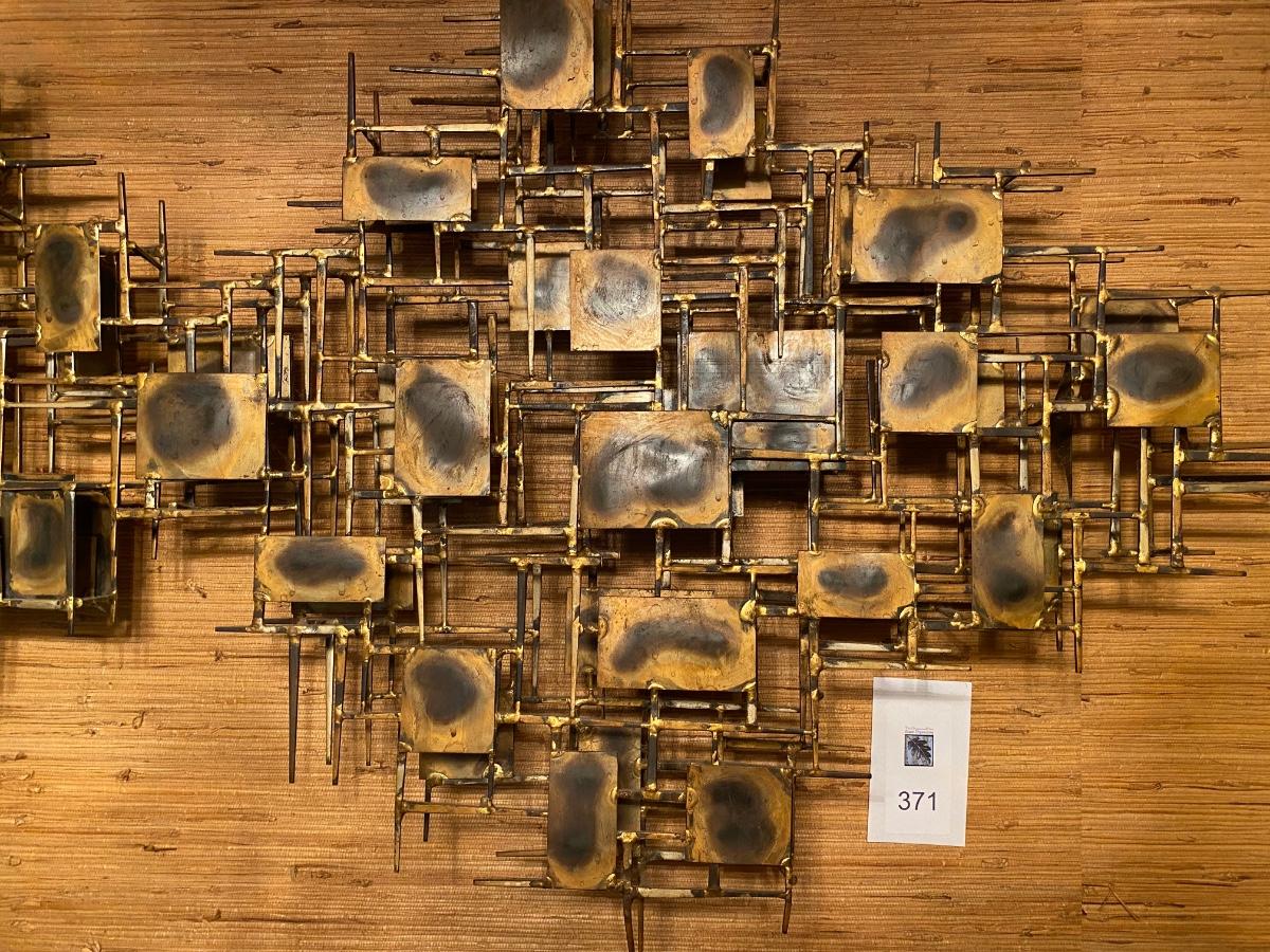 Large Brutalist Metal wall mural. No makers mark, attributed to artist Marc Weinstein. Appears to be 34" x 25".
