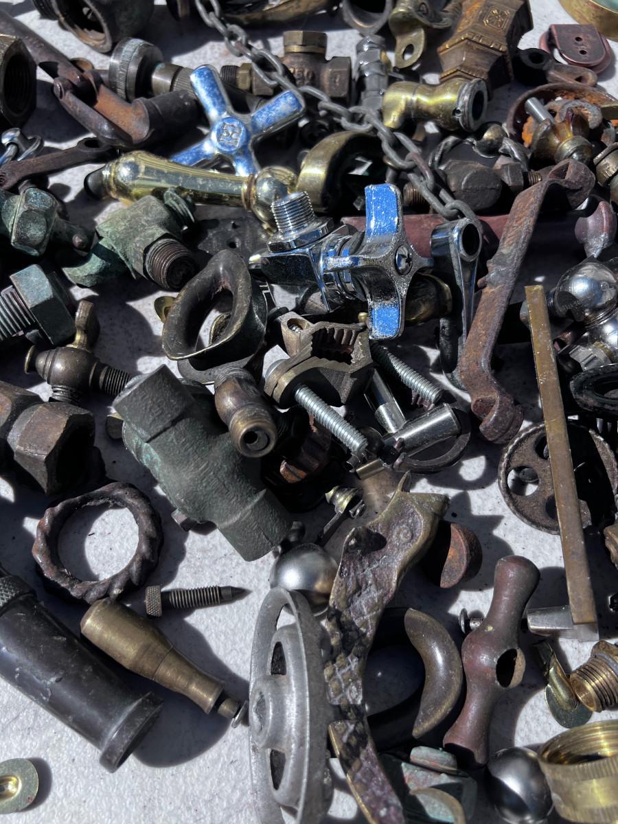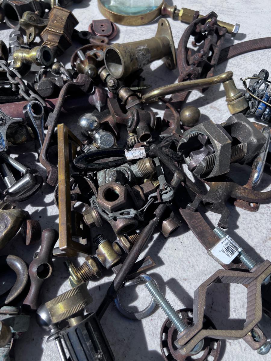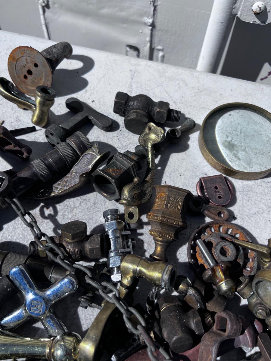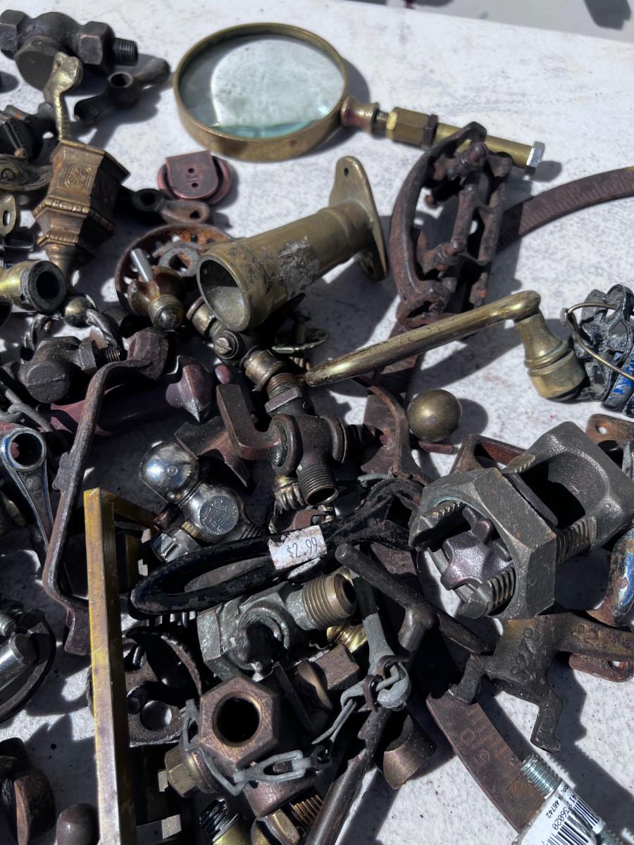 Large Bucket of Brass and antique items.