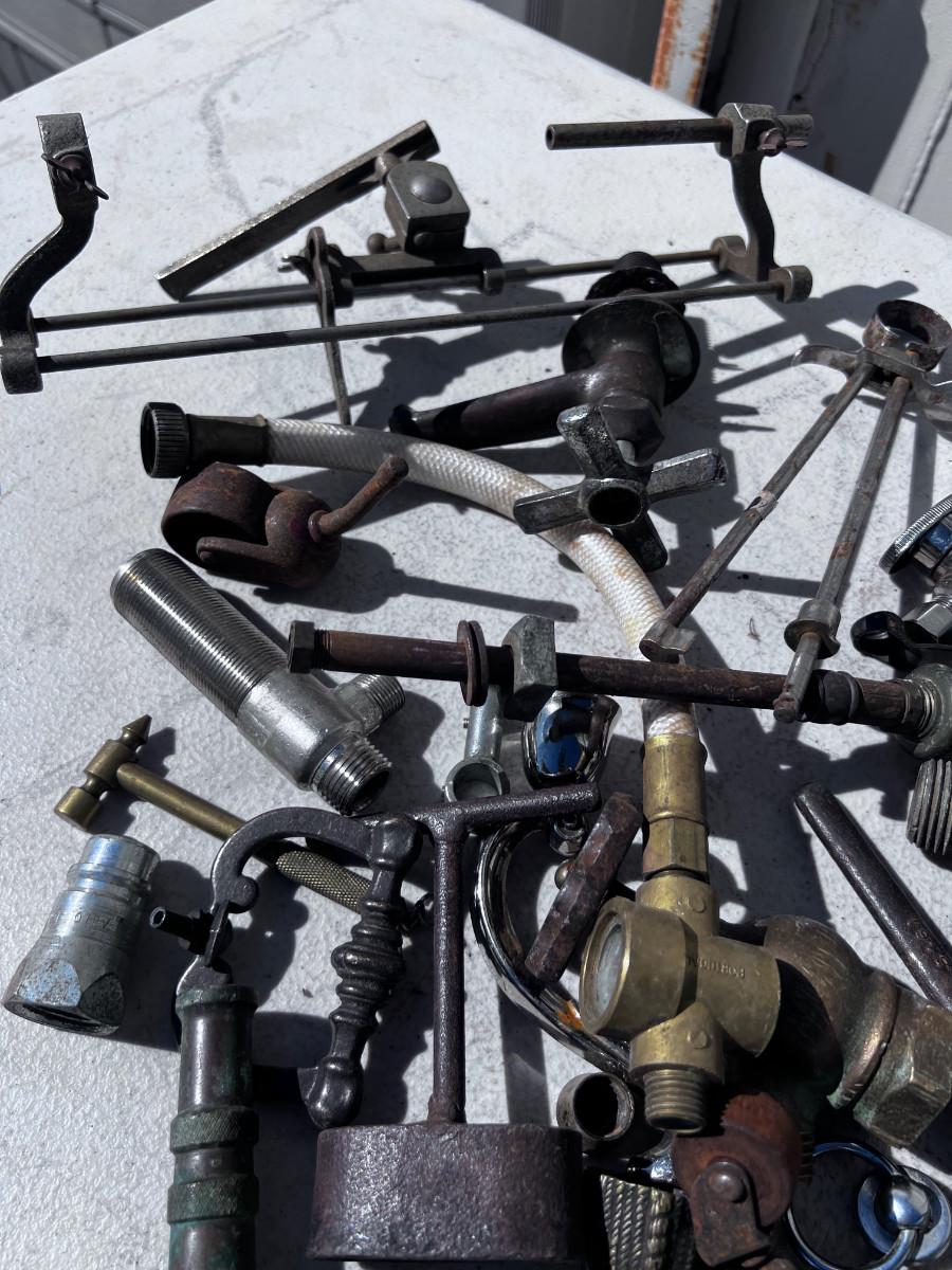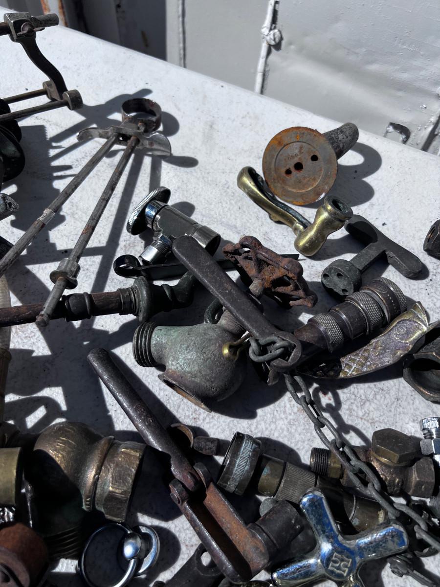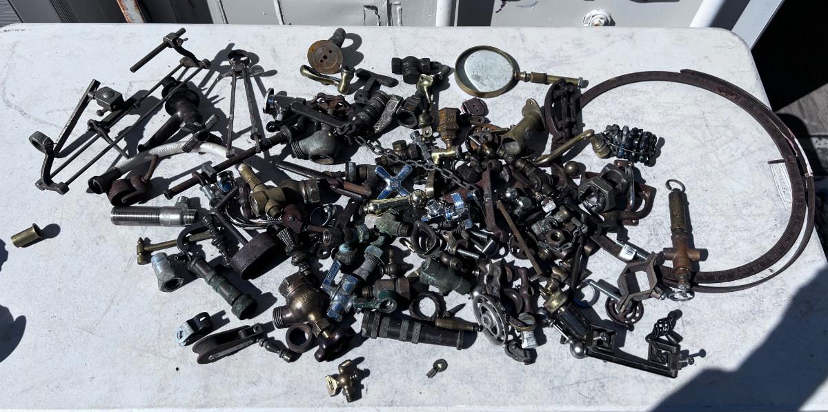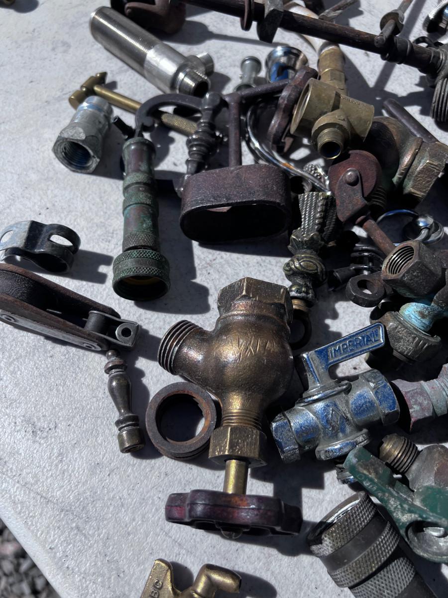 Large Bucket of Brass and antique items.