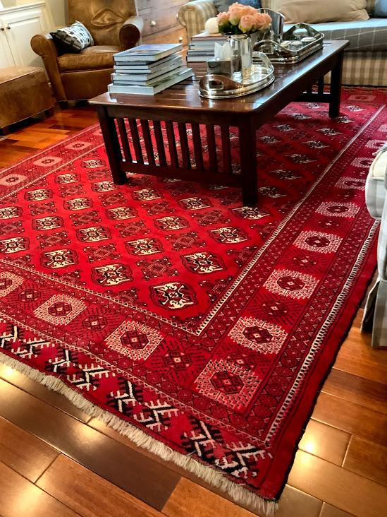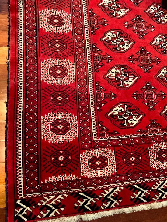 Very large Hand knotted and hand woven rug with storing reds to offset these beautiful geometrical designs.