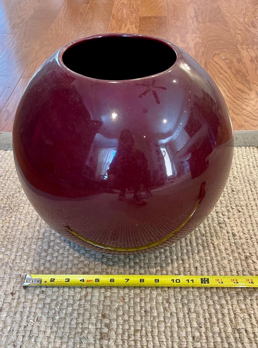 Large burgundy orb vase