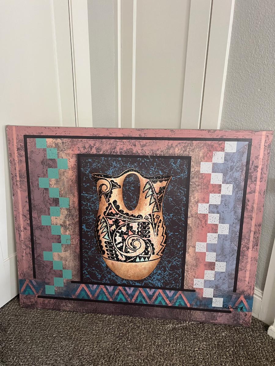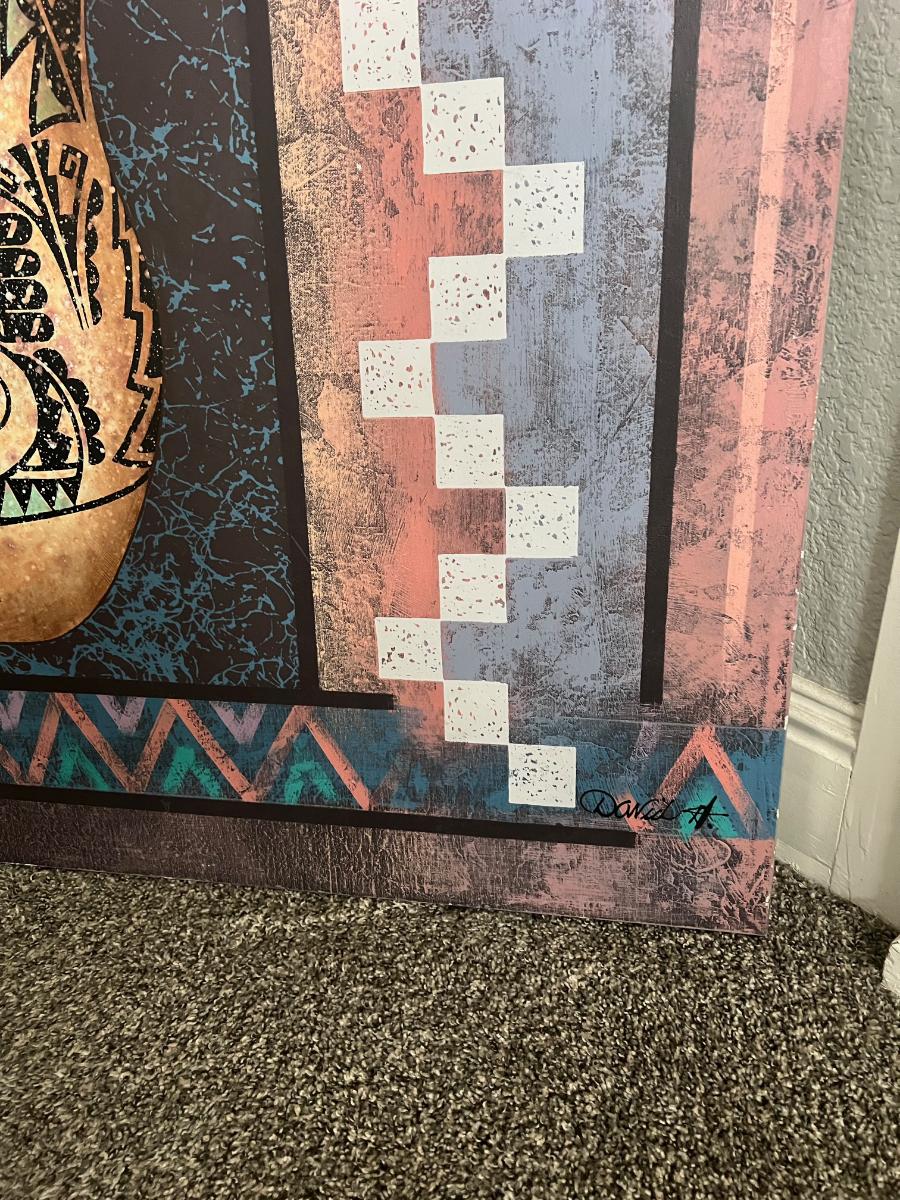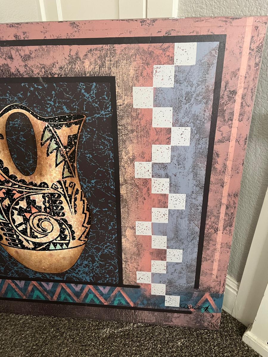 Large canvas painting by David H Native American style art. 40” x 50”