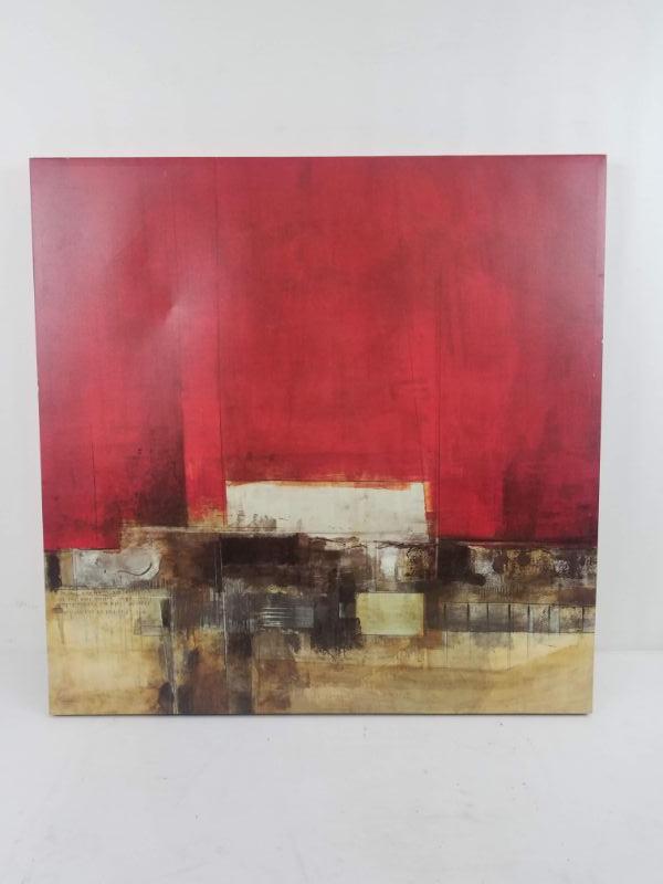 Large Canvas Print on a wood frame. Red/Brown/Tan Abstract 30" x 30"