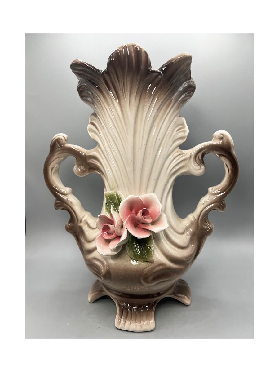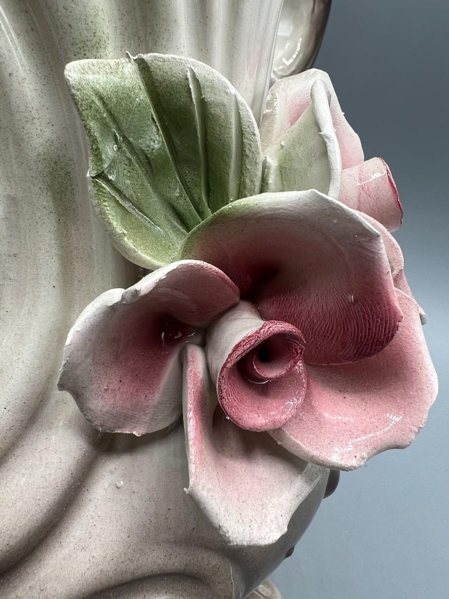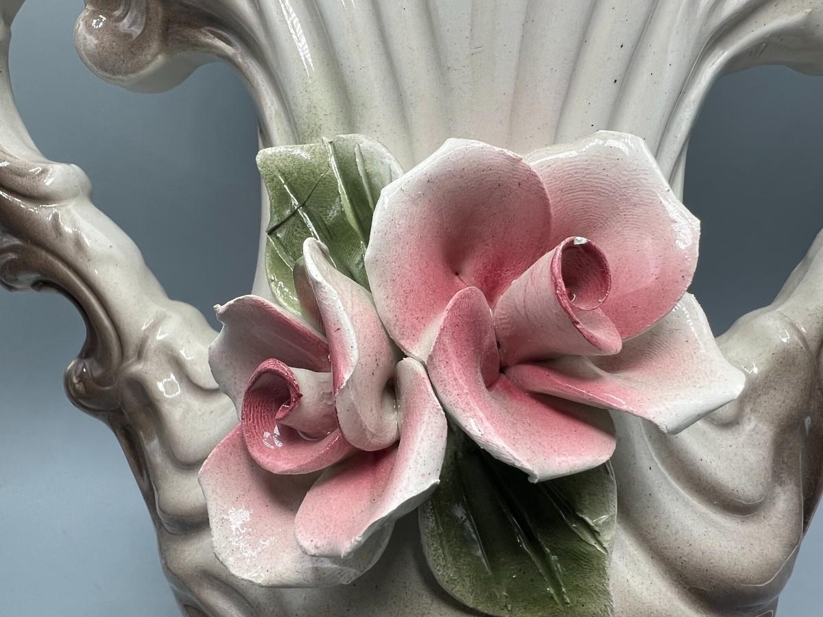 Large Capodimonte Double Handle Vase Urn with Pink Roses