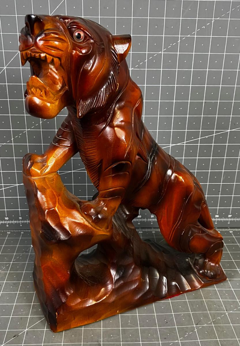 Here is a large carved wooden TIGER that I believe is made of boxwood and comes from Thailand or possibly China...Very good condition...Nice finish. Felt bottom...Approx. 15" high..11.25" wide by 4.5" deep...As shown...from the Chinese Zodiac..