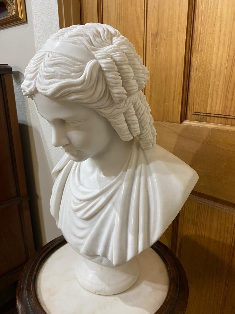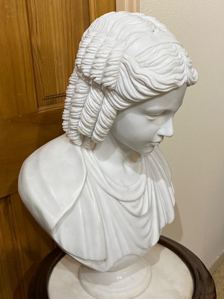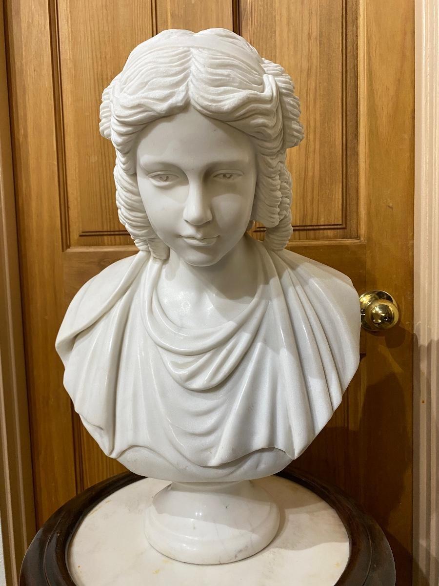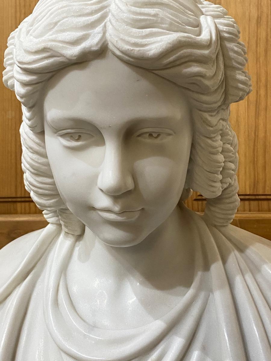 Large Carved Carrara Marble Bust of a Woman Statue Girl with Ringlets