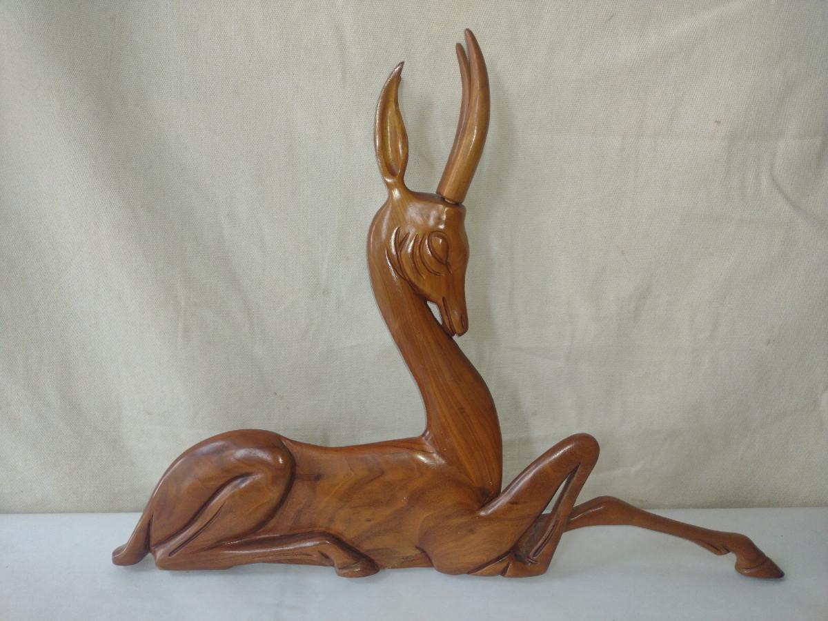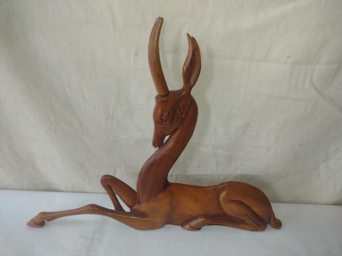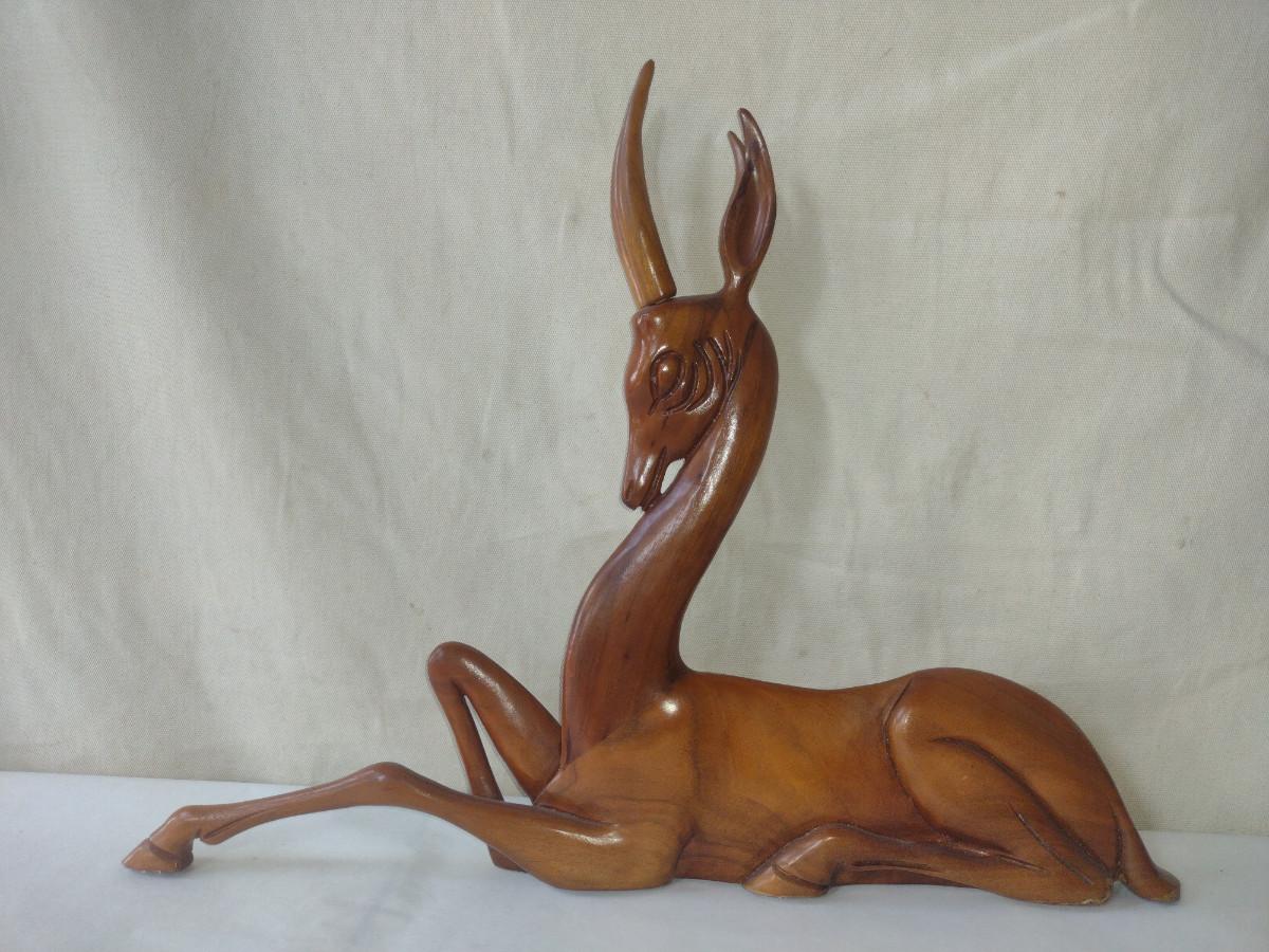 Large, Carved Wooden Figurine- Gazelle- Approx 18" Tall, 23" Long