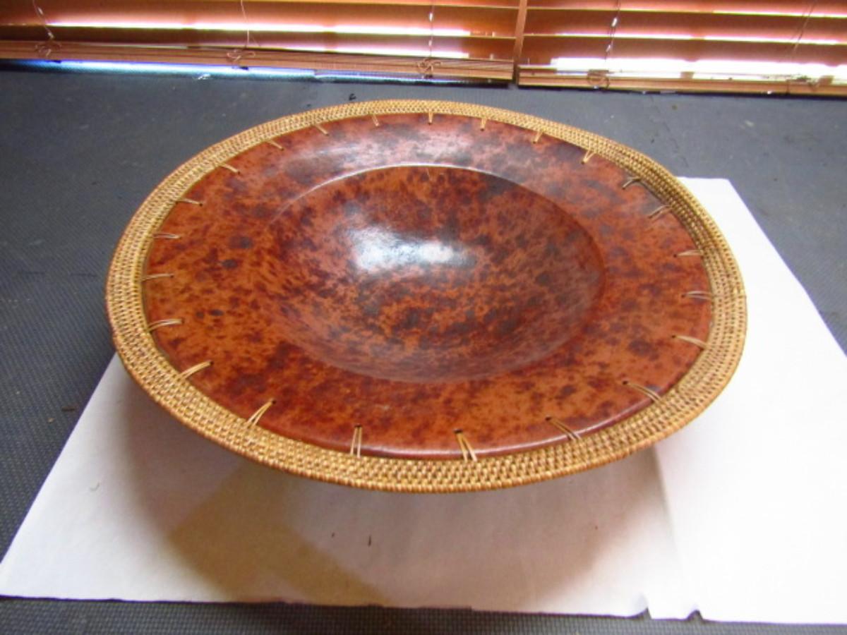 Large Centerpiece Bowl Pottery with Wicker Border (G)
