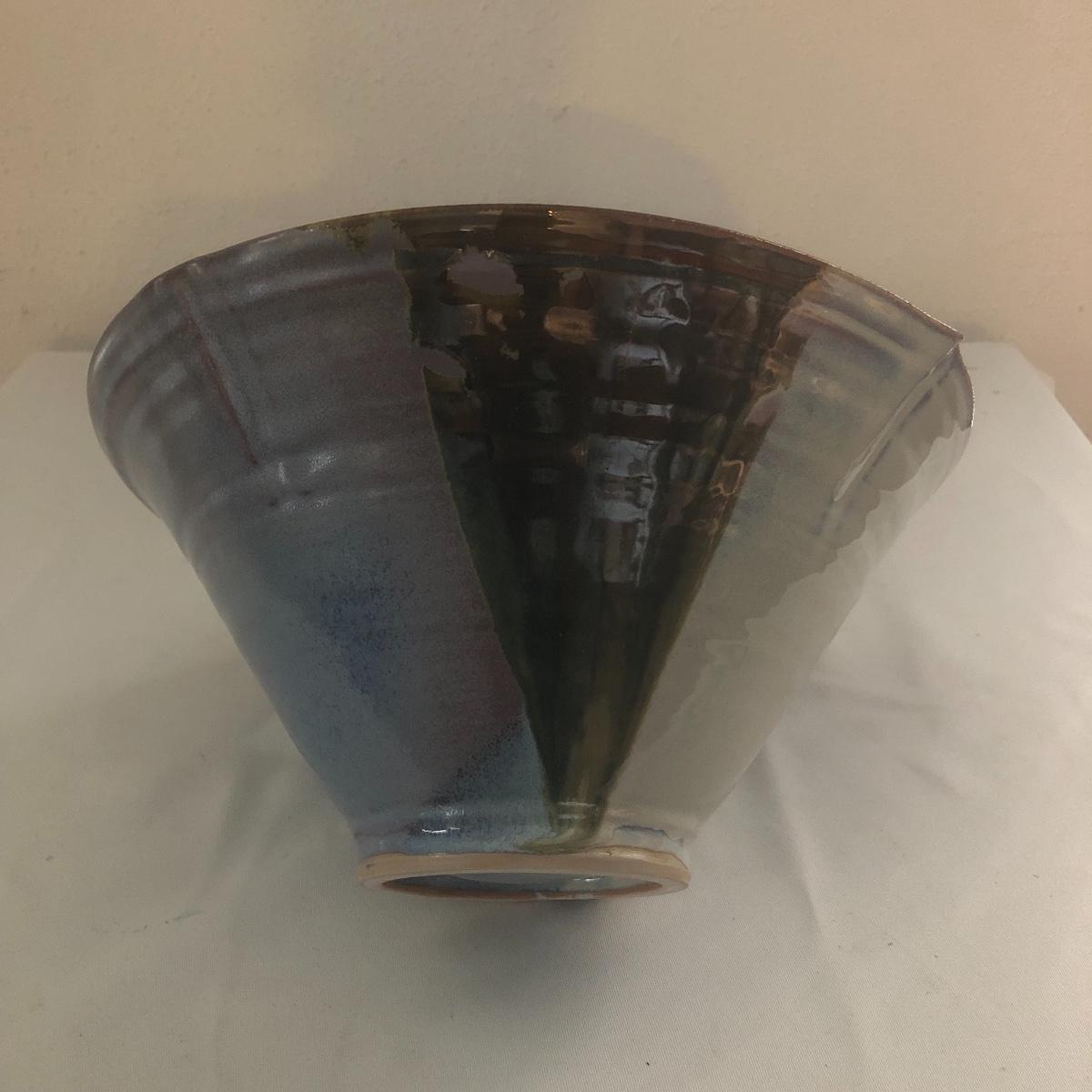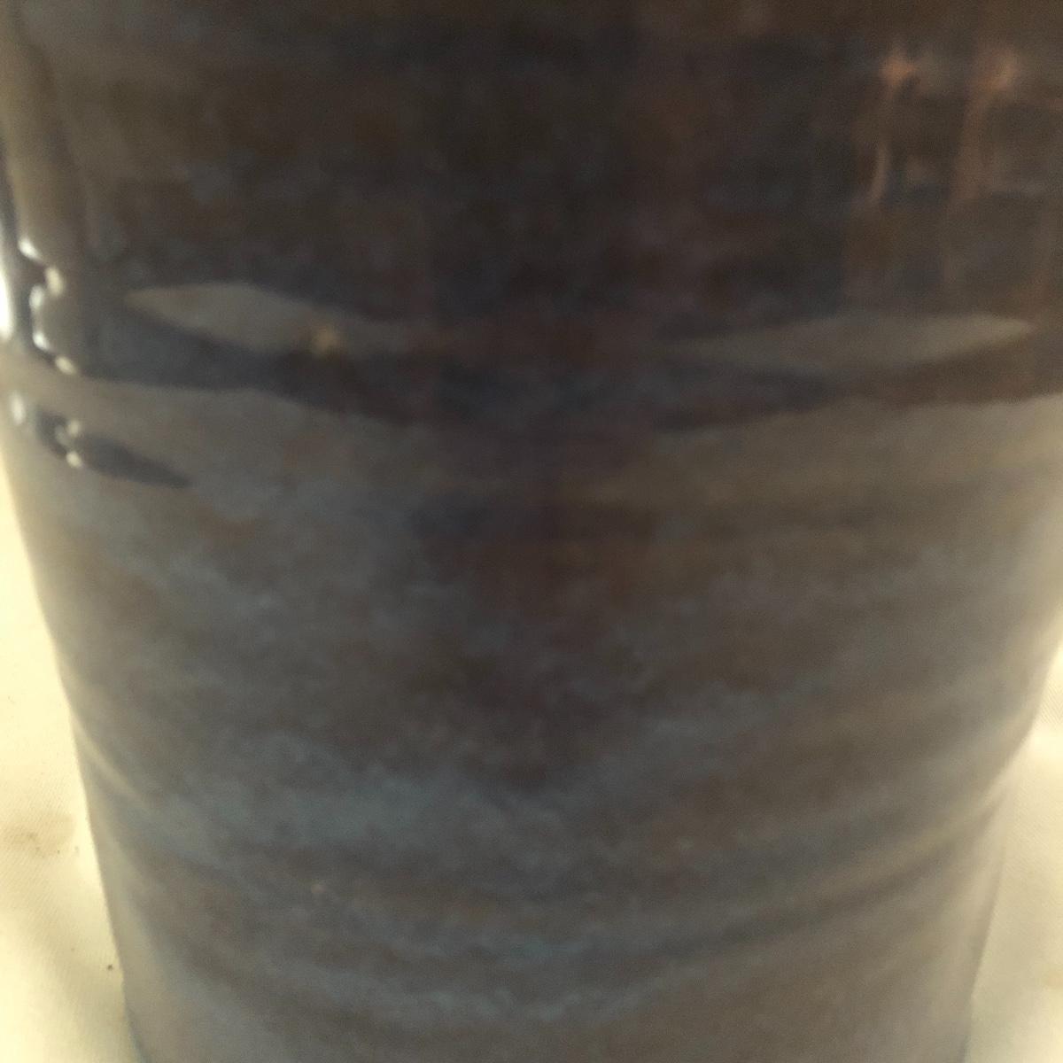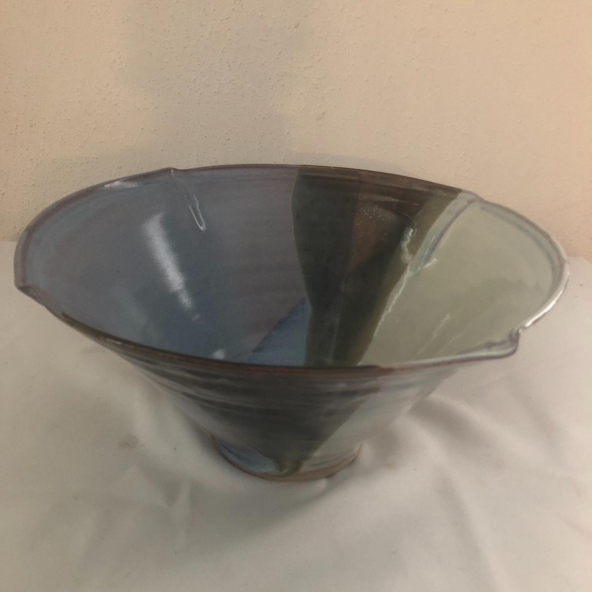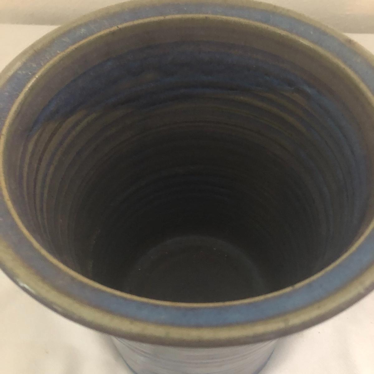 This beautiful duo includes a large stunningly glazed bowl that measures 13.5” d x 7” tall and a tall signed ceramic container that would make a great utensil holder measuring 7.5” x 9.5”.