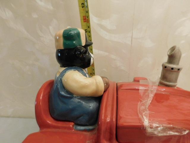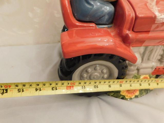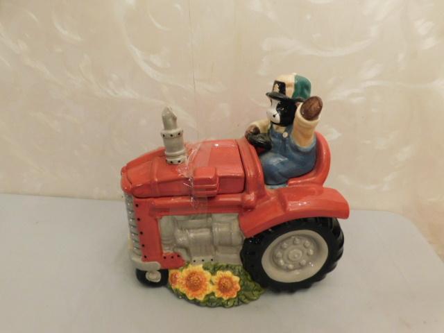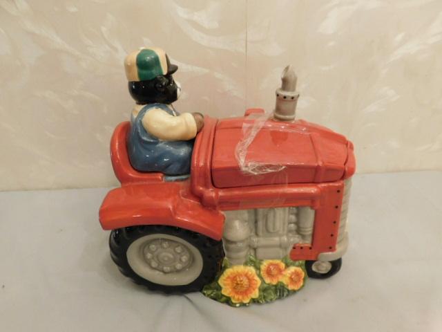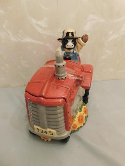 Large Ceramic Cow on Tractor Cookie Jar 13"x12"