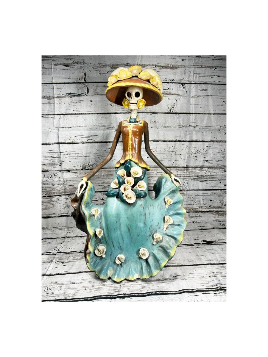 Large Ceramic Day of the Dead Dia de Los Muertos Skeleton Lady Figurine