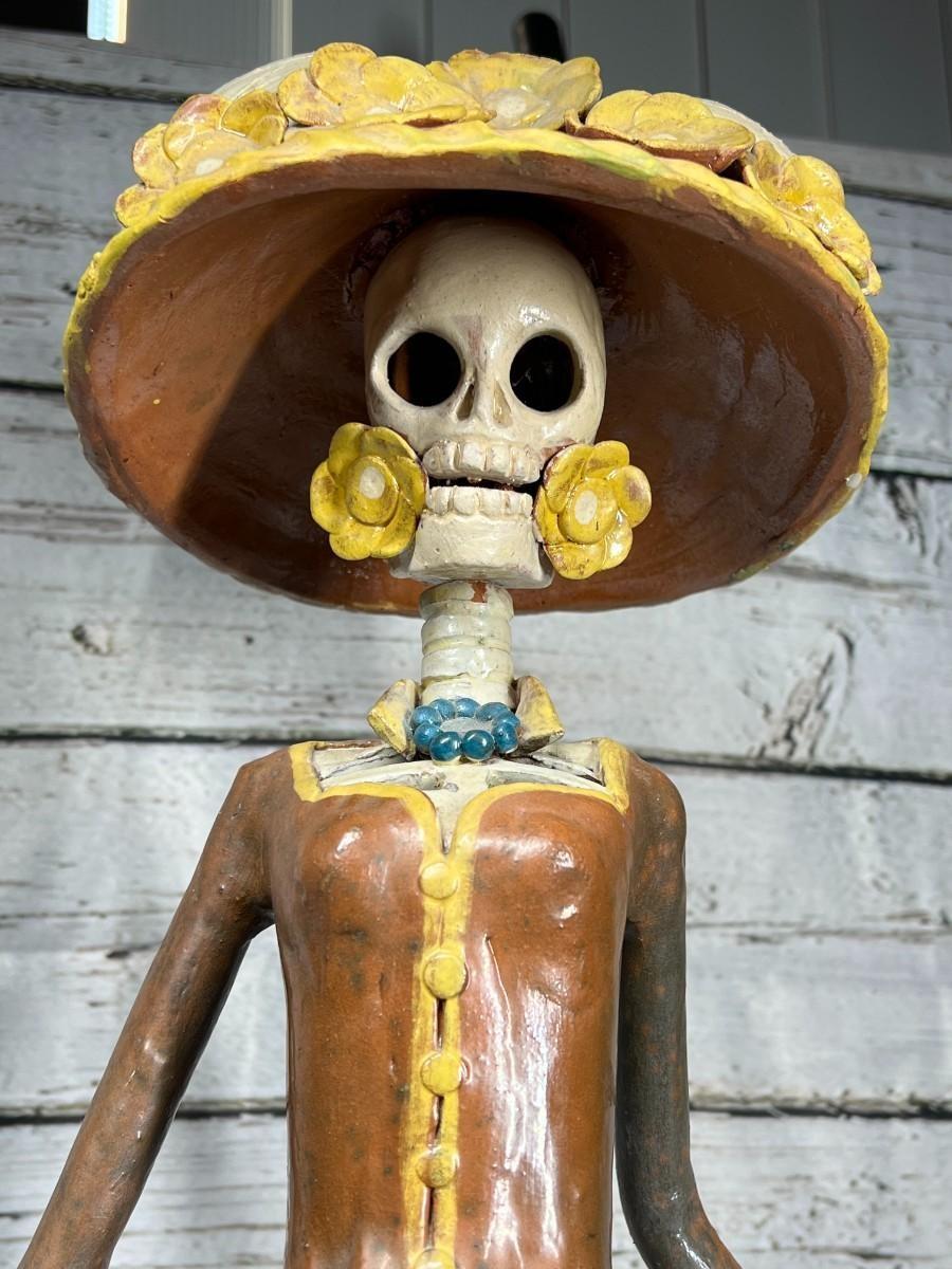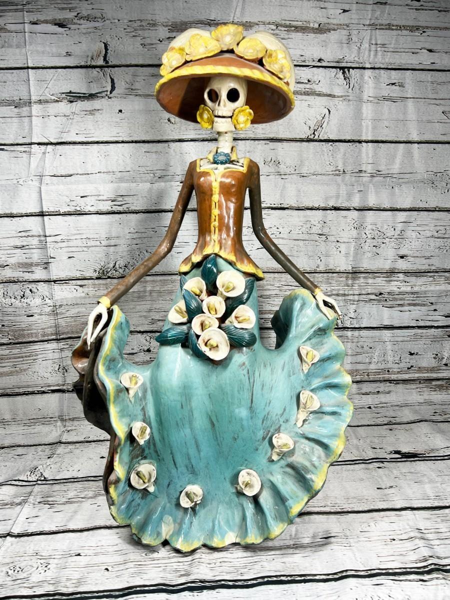 Large Ceramic Day of the Dead Dia de Los Muertos Skeleton Lady Figurine