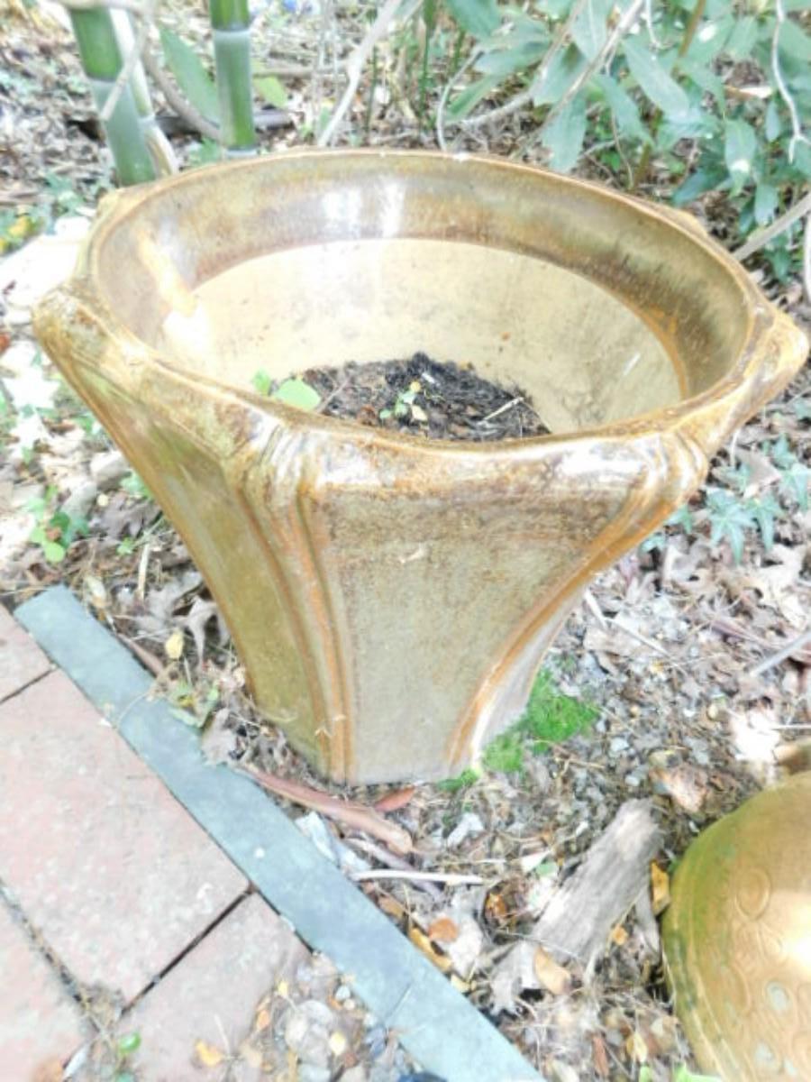 Large Ceramic Decorative Garden Planter May need to bring help removing from yard. Expect weathering and color fade.