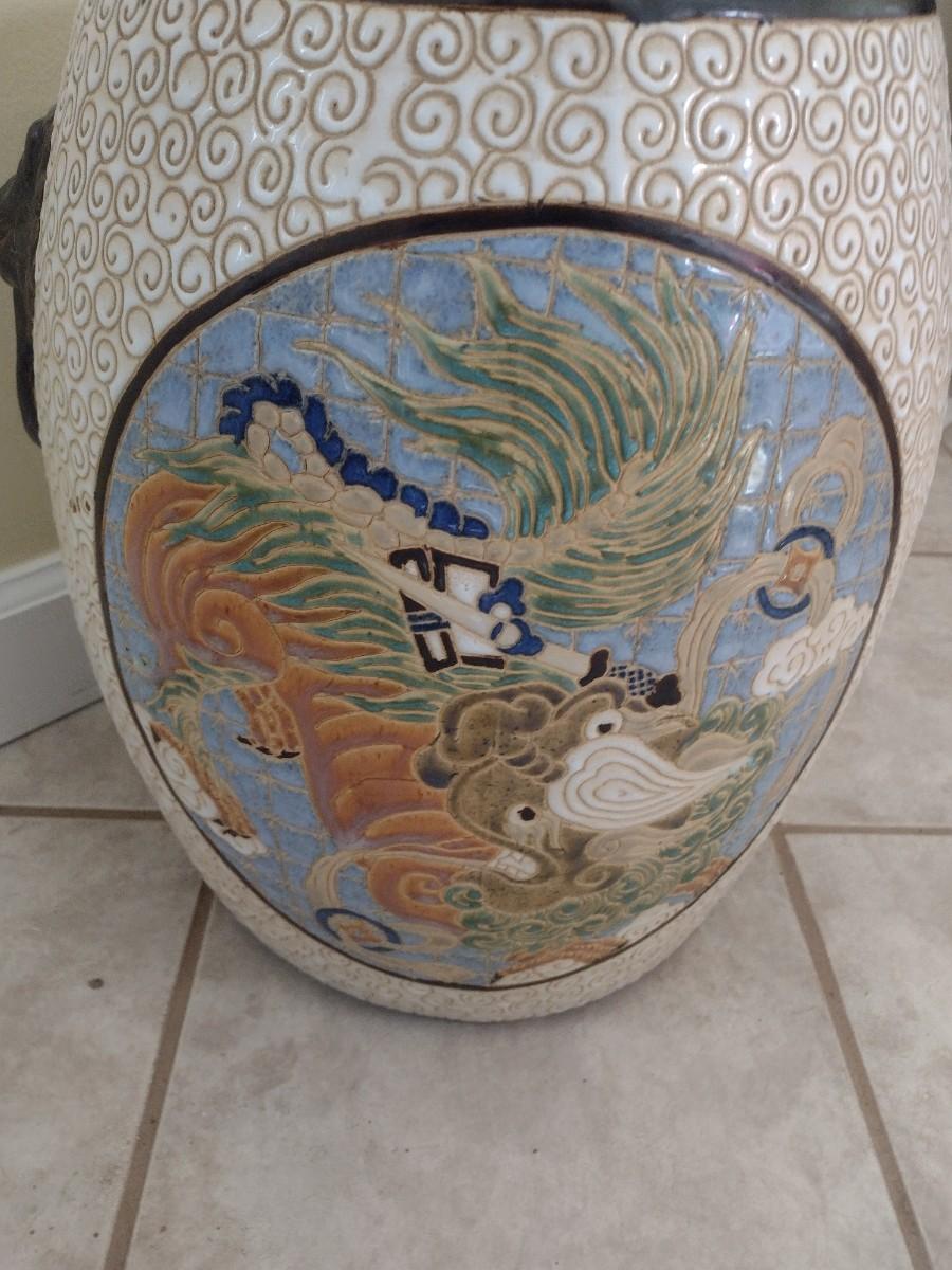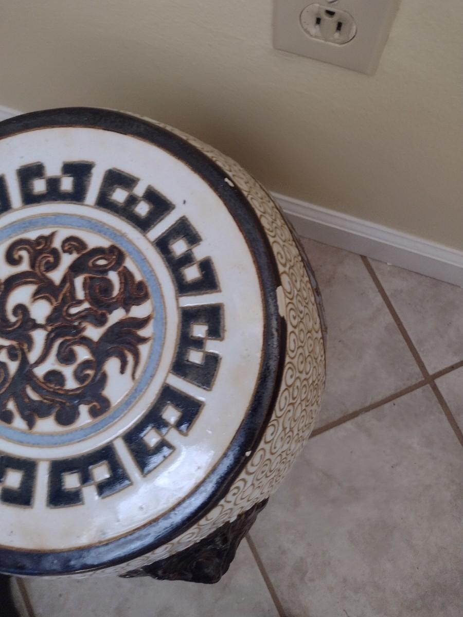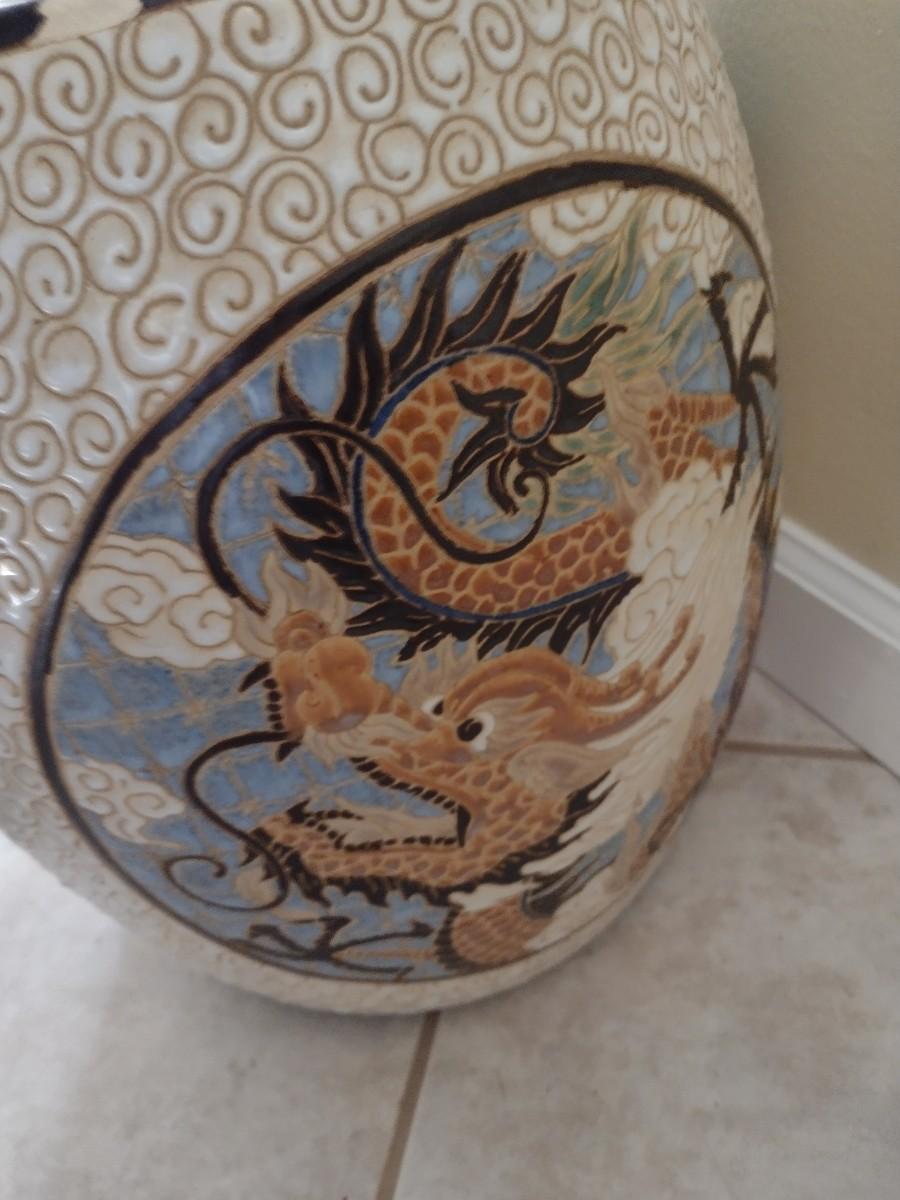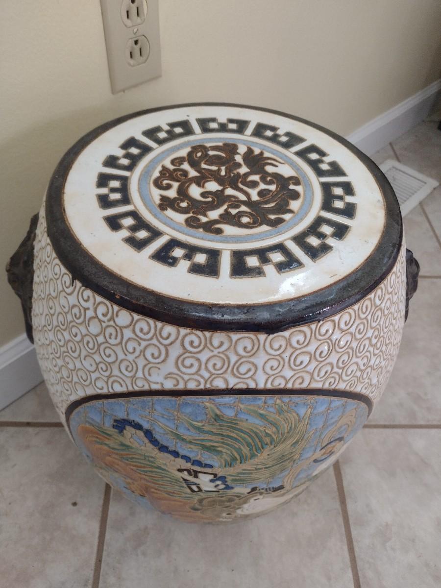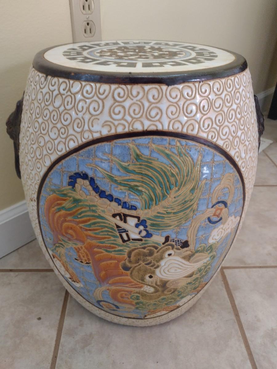 Large Ceramic Garden Stool with Dragon Themed Designs