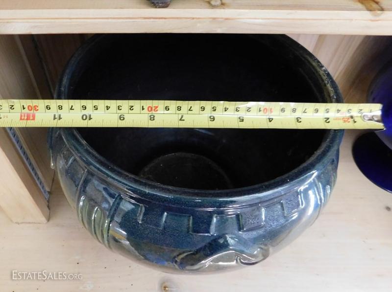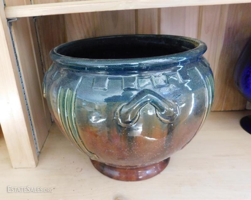 Large Ceramic Planter Pot with nice colors and glaze. Heavy.