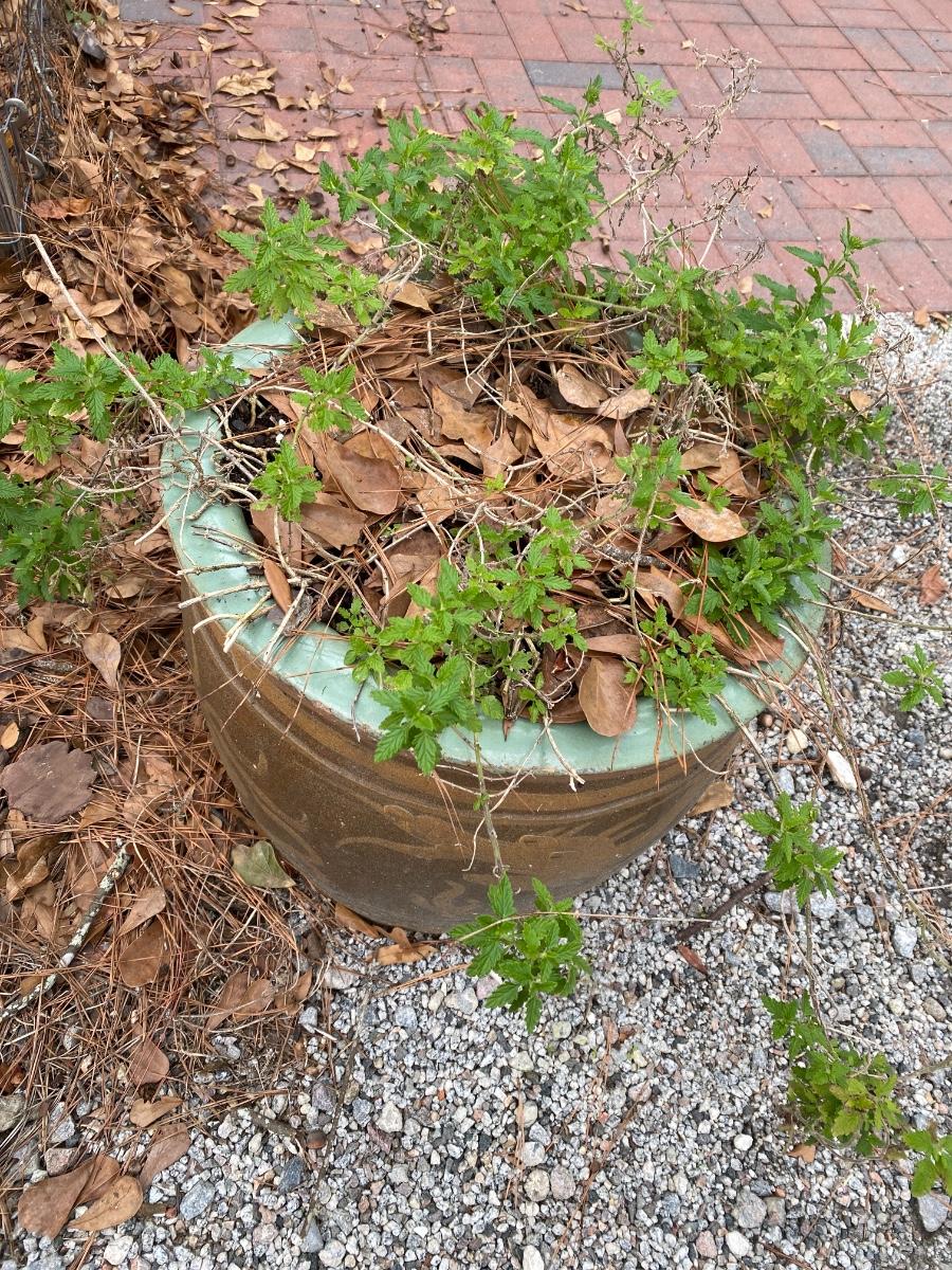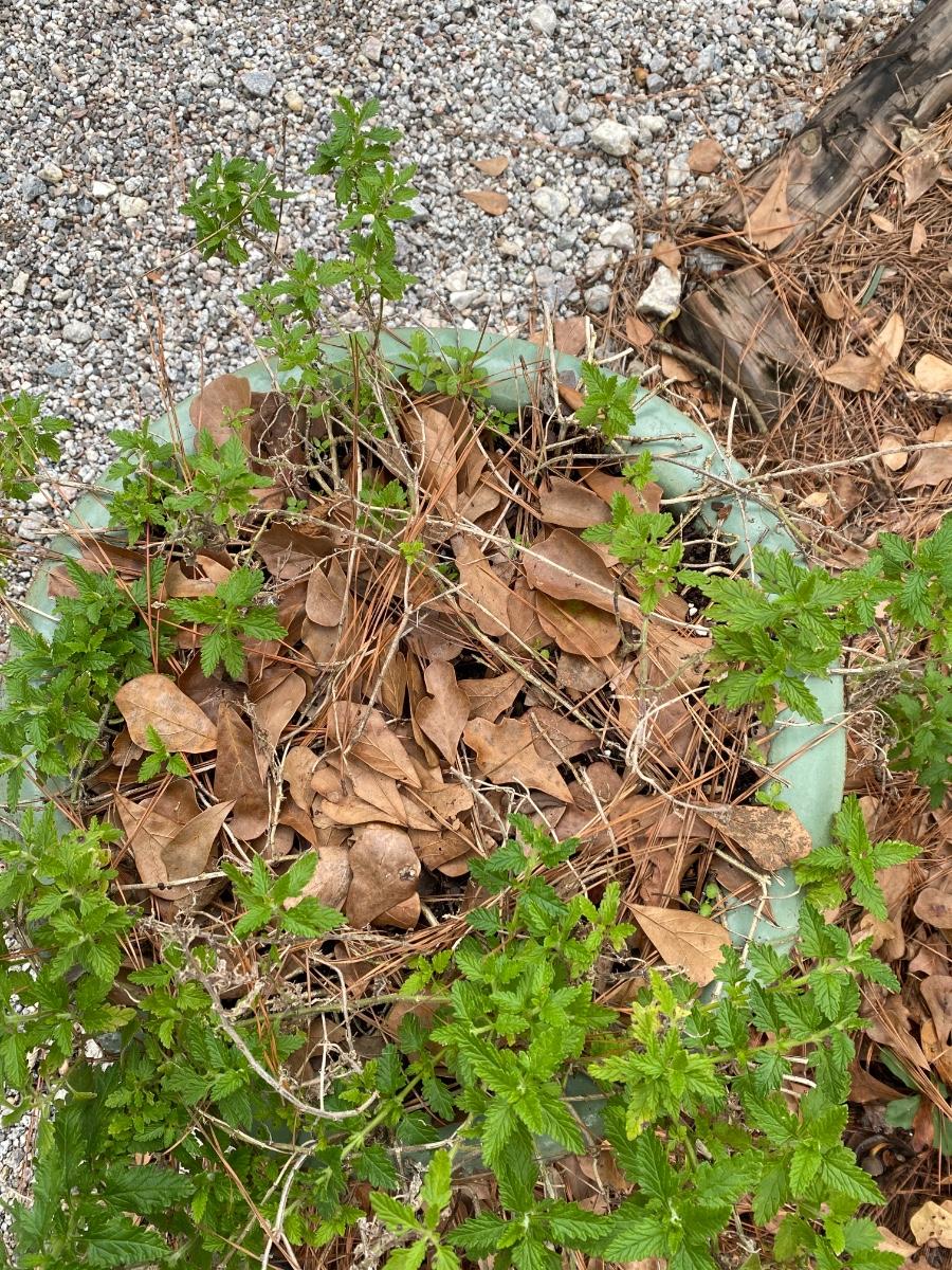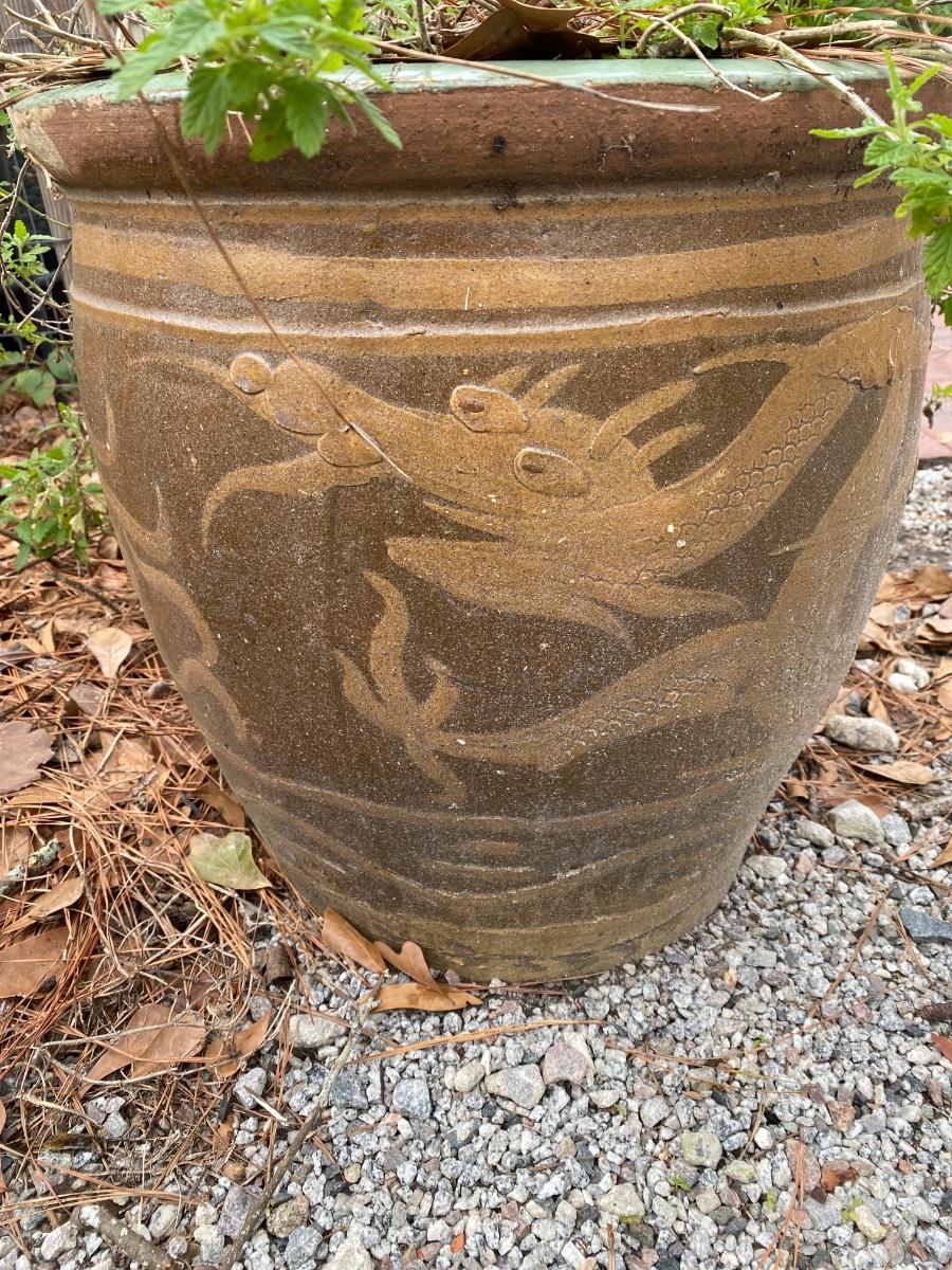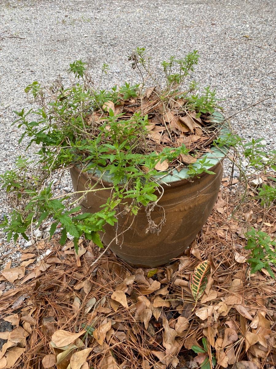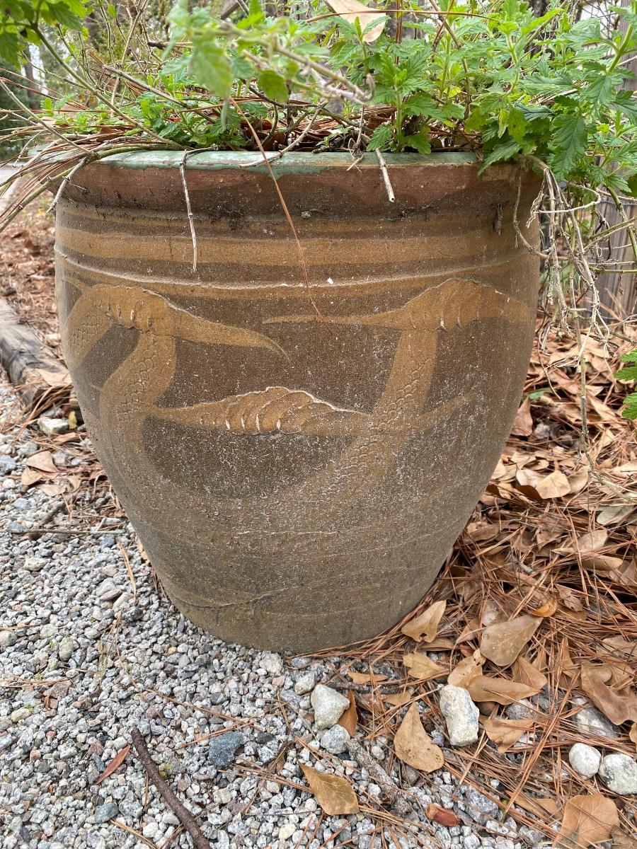 Includes plant. Measures 17 inches high and 18 inches wide. On the corner of patio and driveway