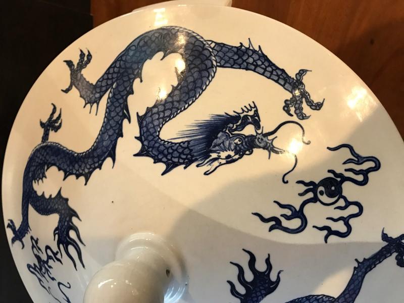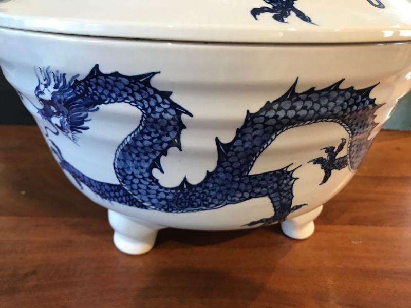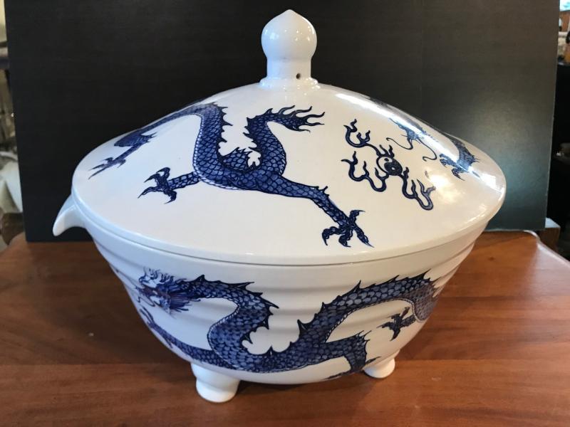 Large Ceramic Soup Tureen w/ Dragon Design [2035]