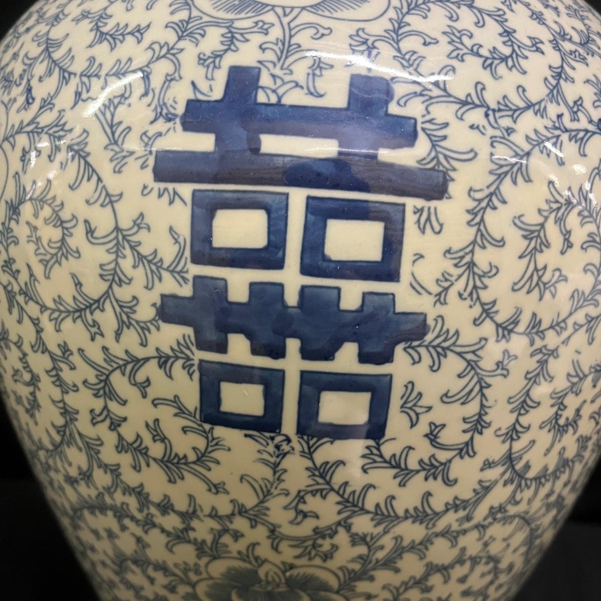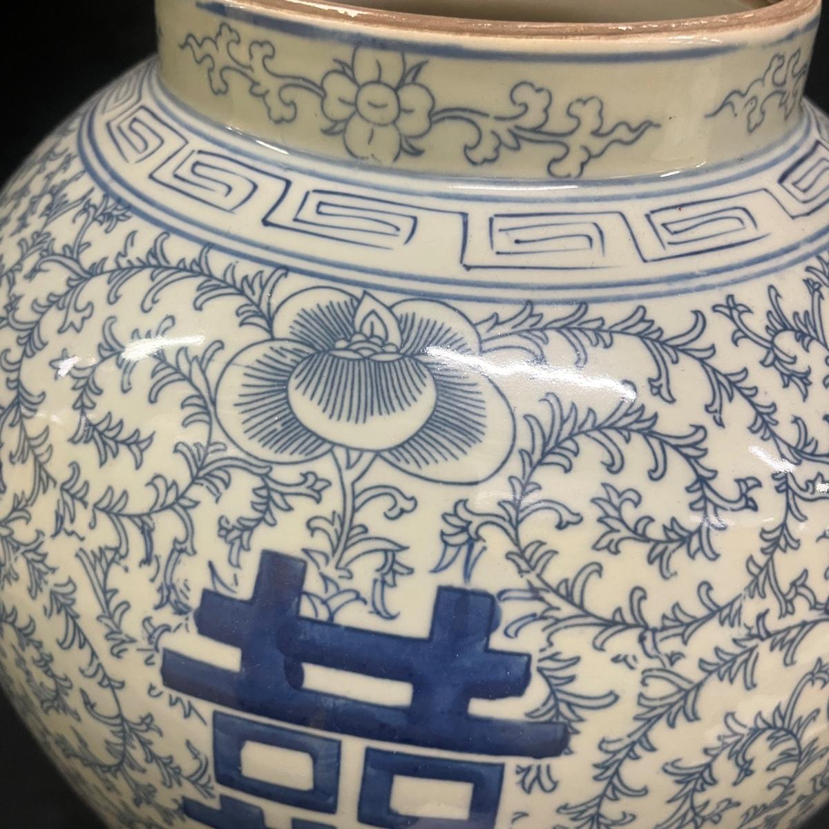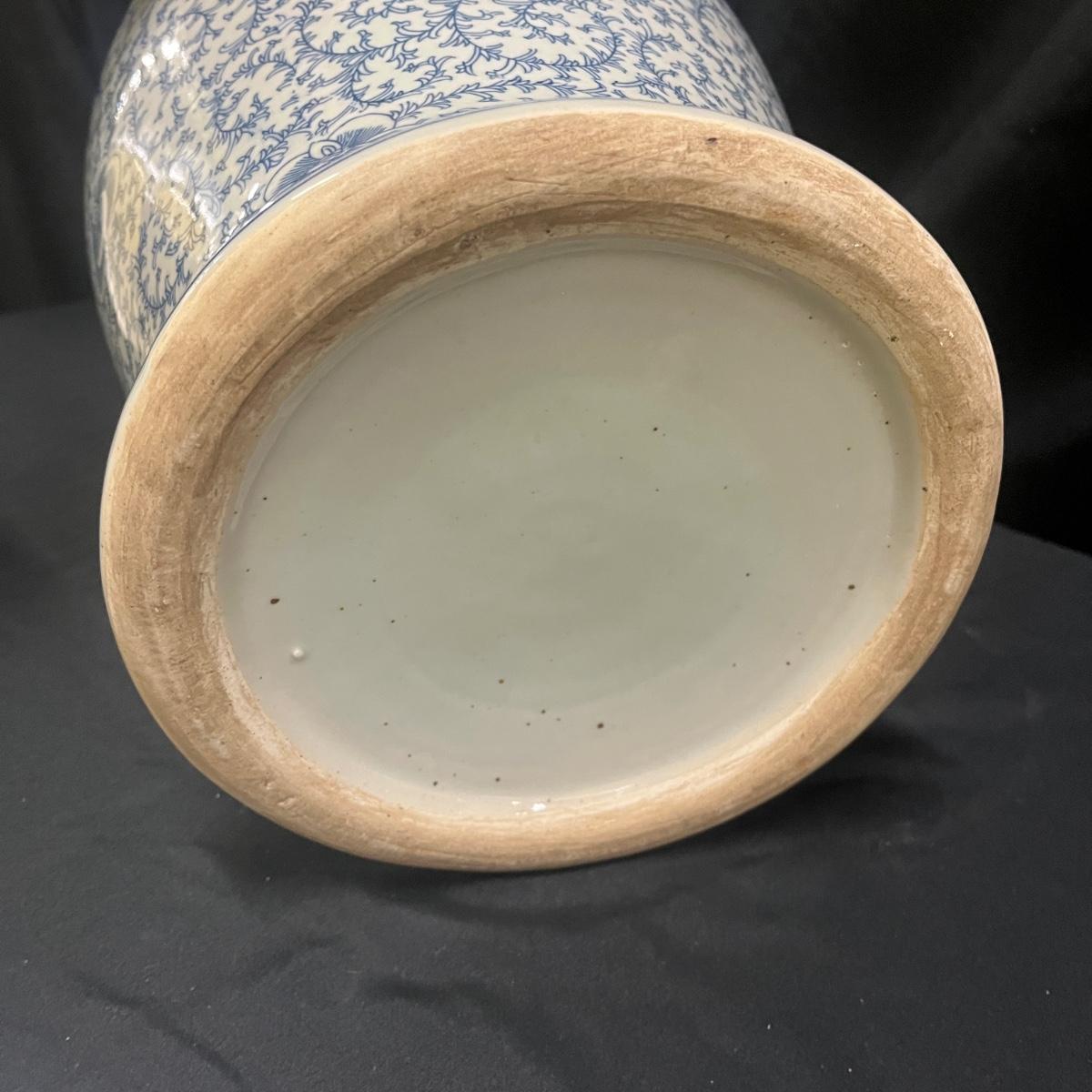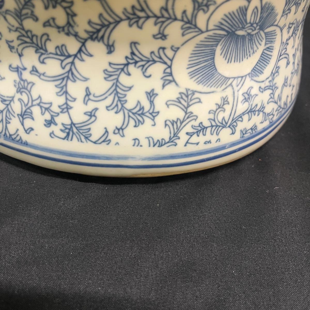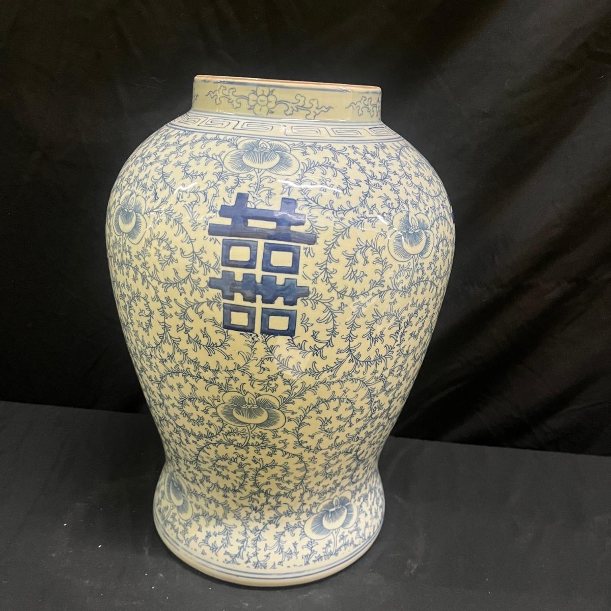 This large Asian style ceramic urn is unmarked and measures 10”D x 16”H. Urn has two spots towards bottom where glaze is worn, see pictures.