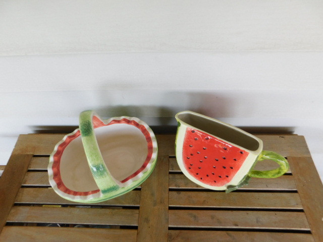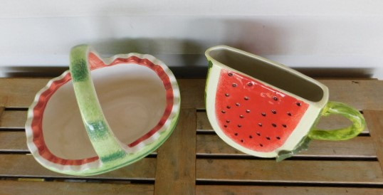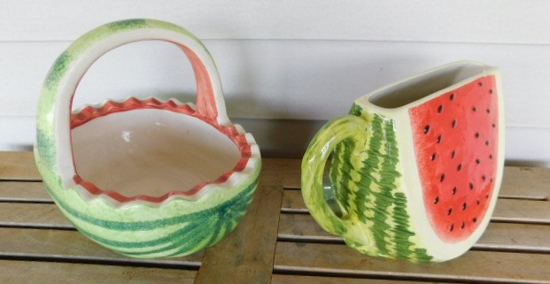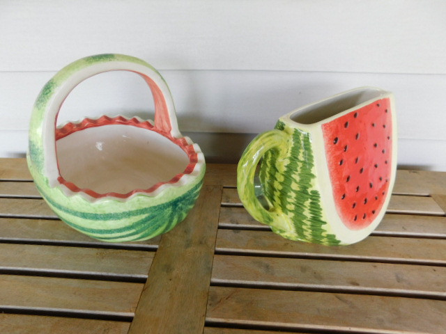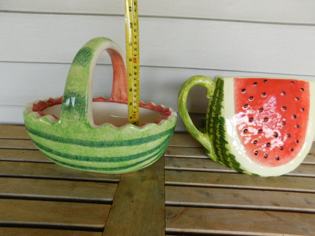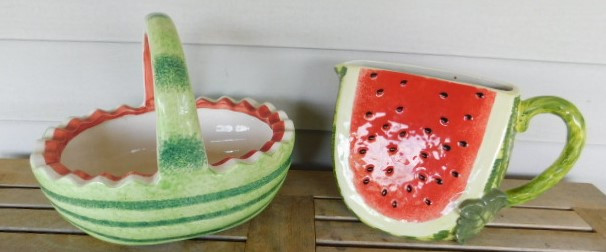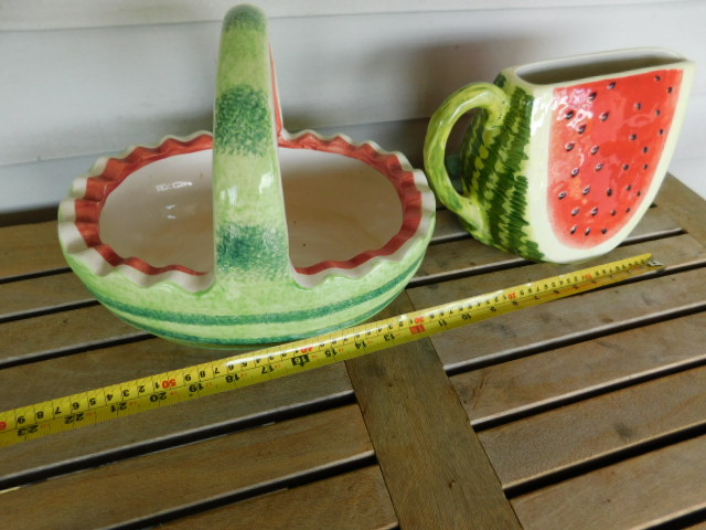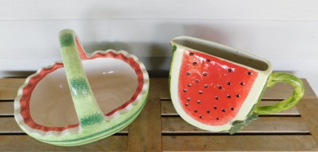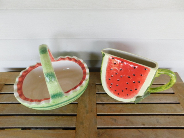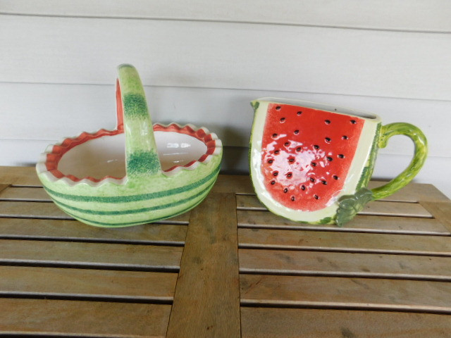 Large Ceramic Watermellon Basket and Pitcher Serving Pieces