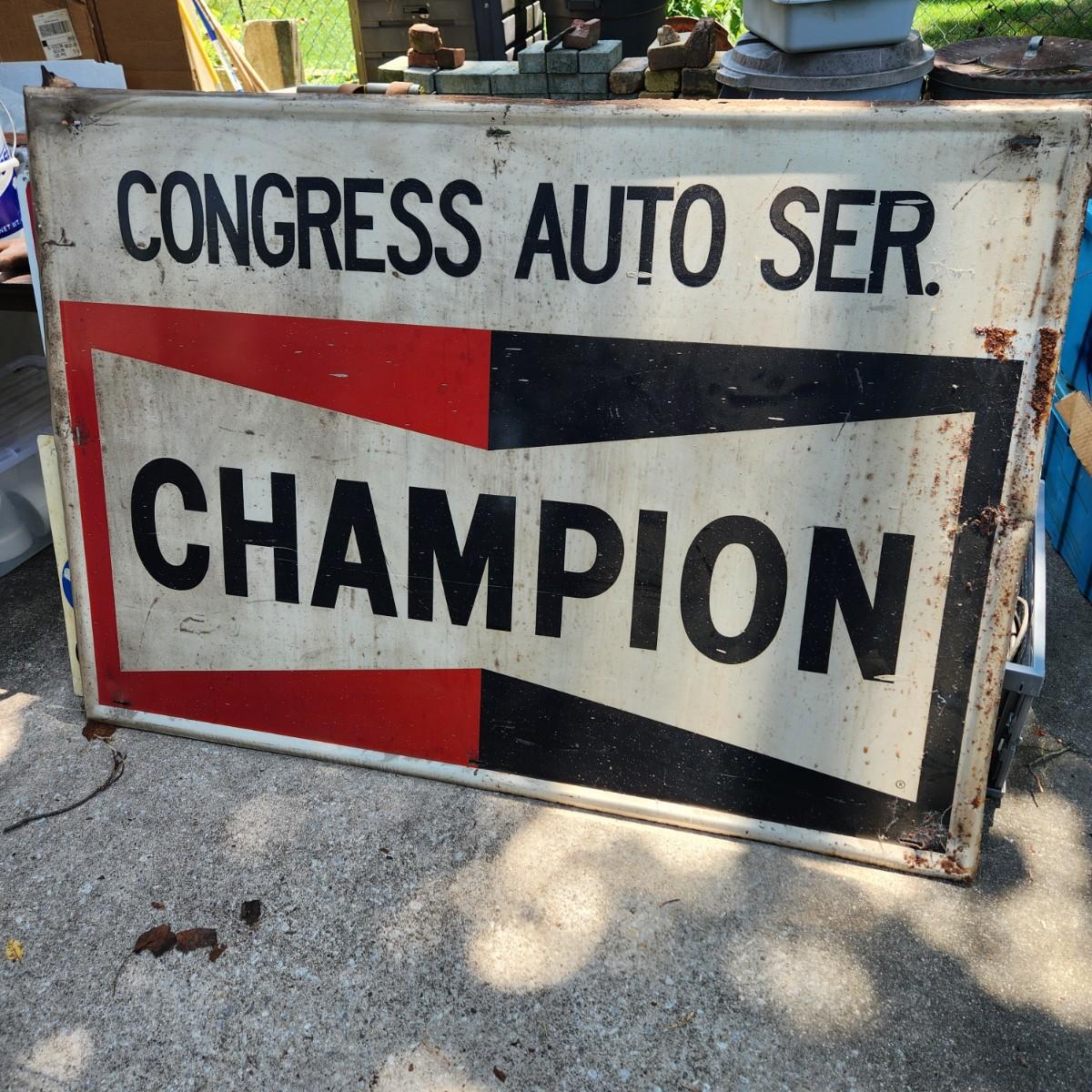 Large Champion Metal Sign Congress Auto Service 59x42 Garage Man Cave