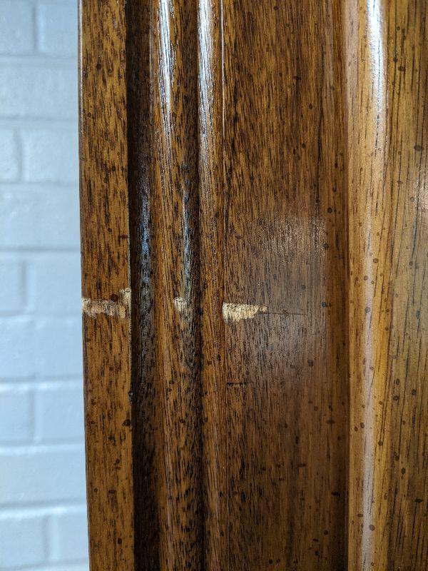 This is a nice piece and matches the buffet we have. There is one nic in it and there is a picture showing the damage.