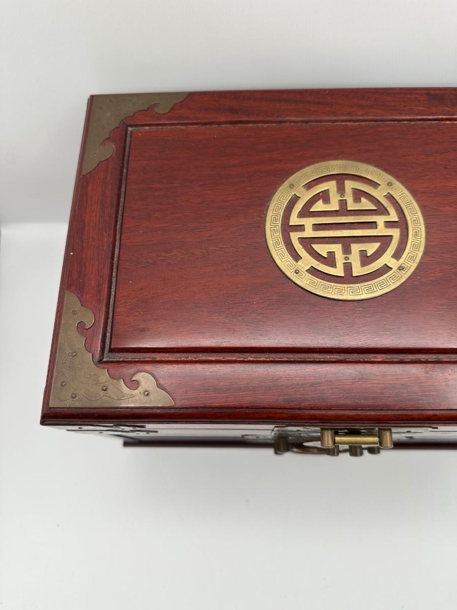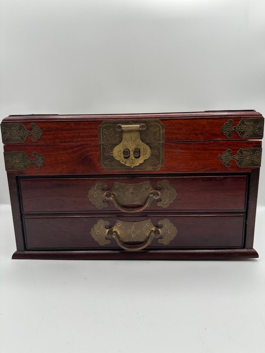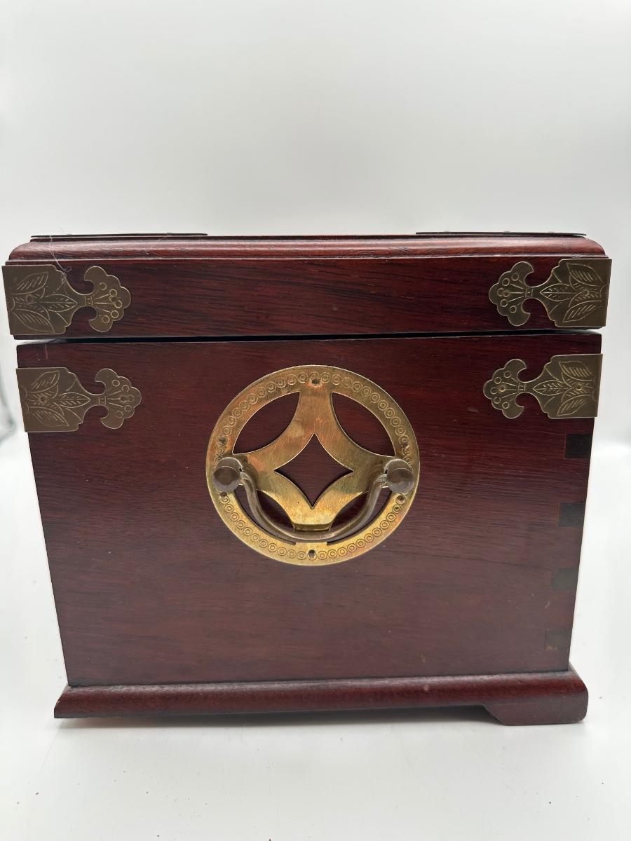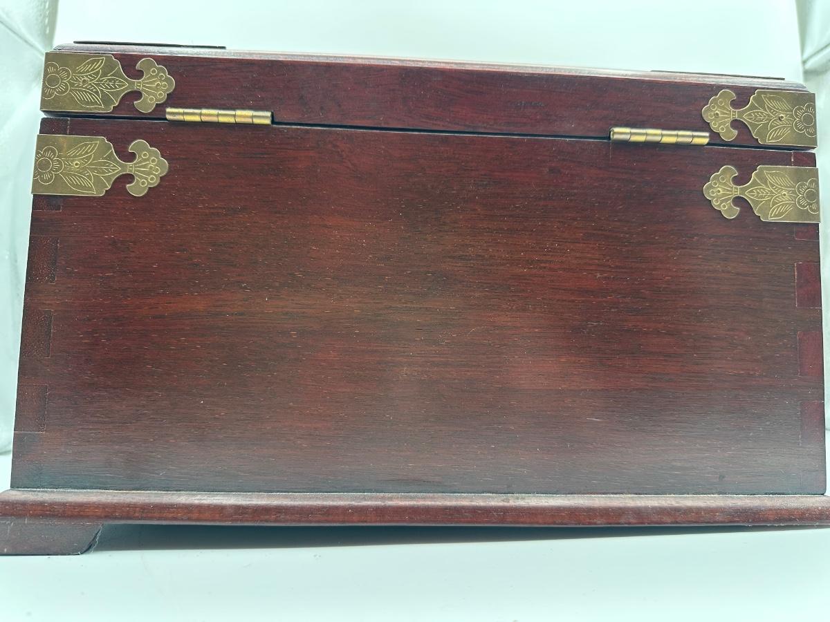 Large Chinese Brass & Wood Jewelry Box (See Details)